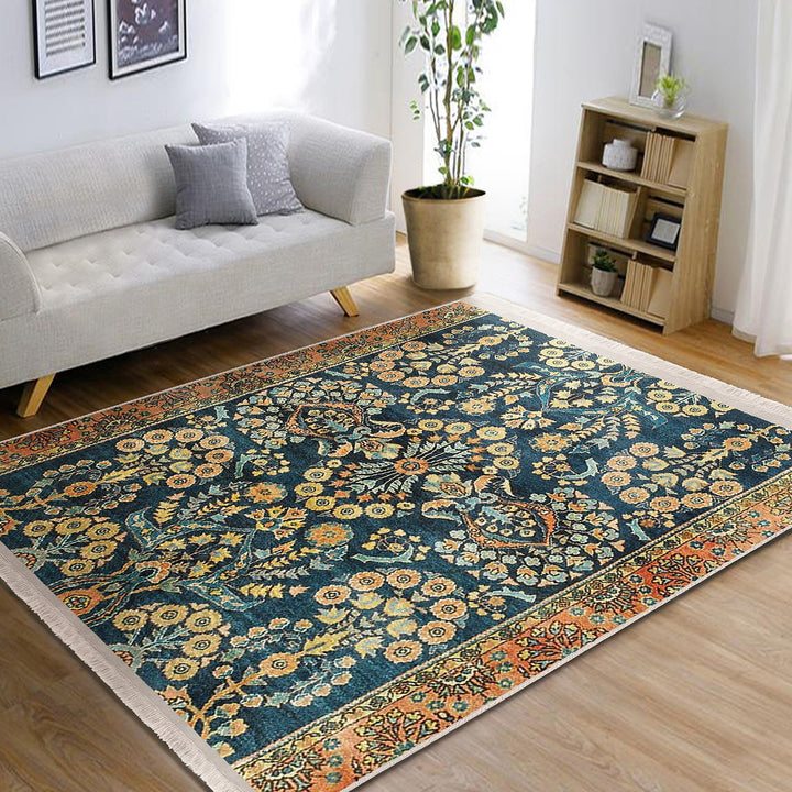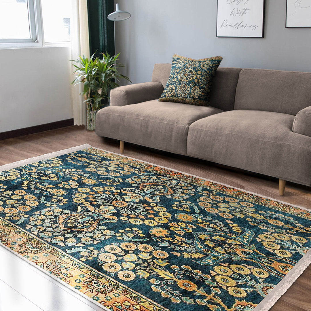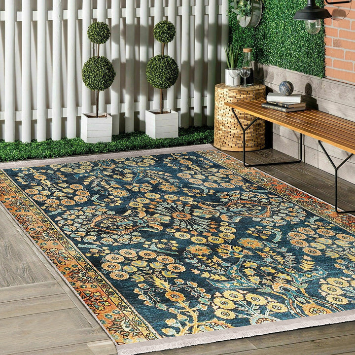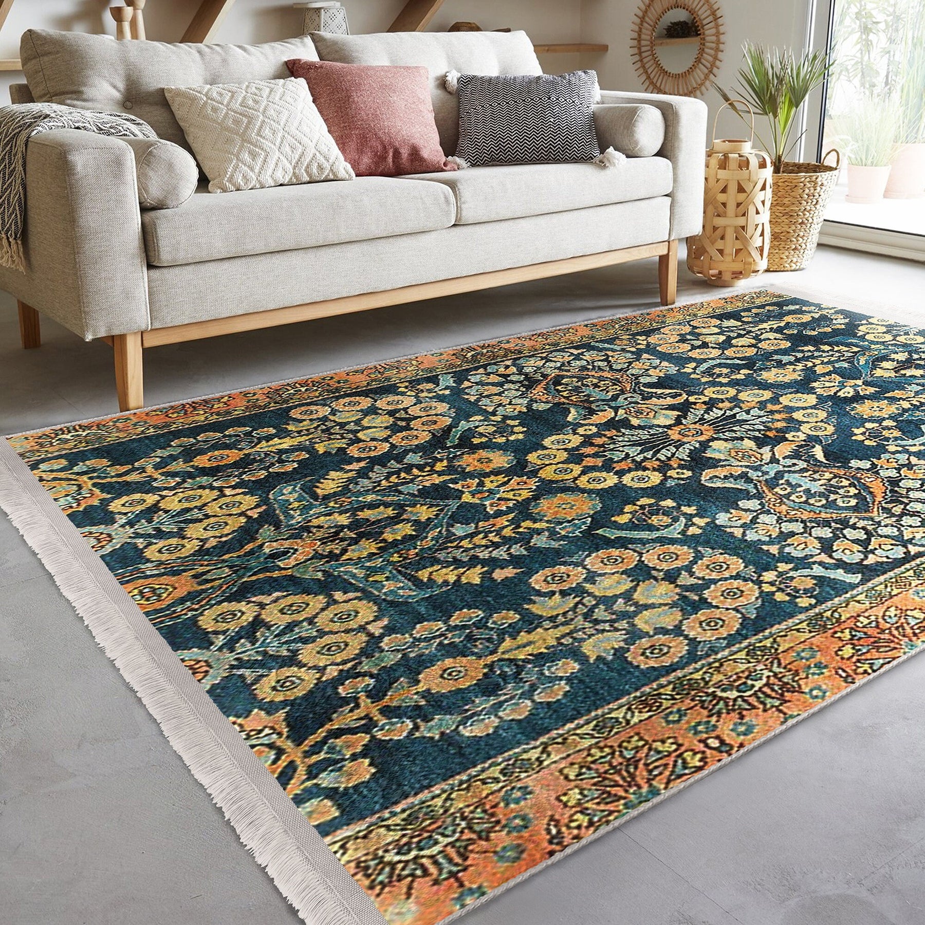 This elegant Machine-Washable floor rug with Ethnic Fringed, Oriental Accent, Rug Design, Kilim Pattern, Farmhouse print;