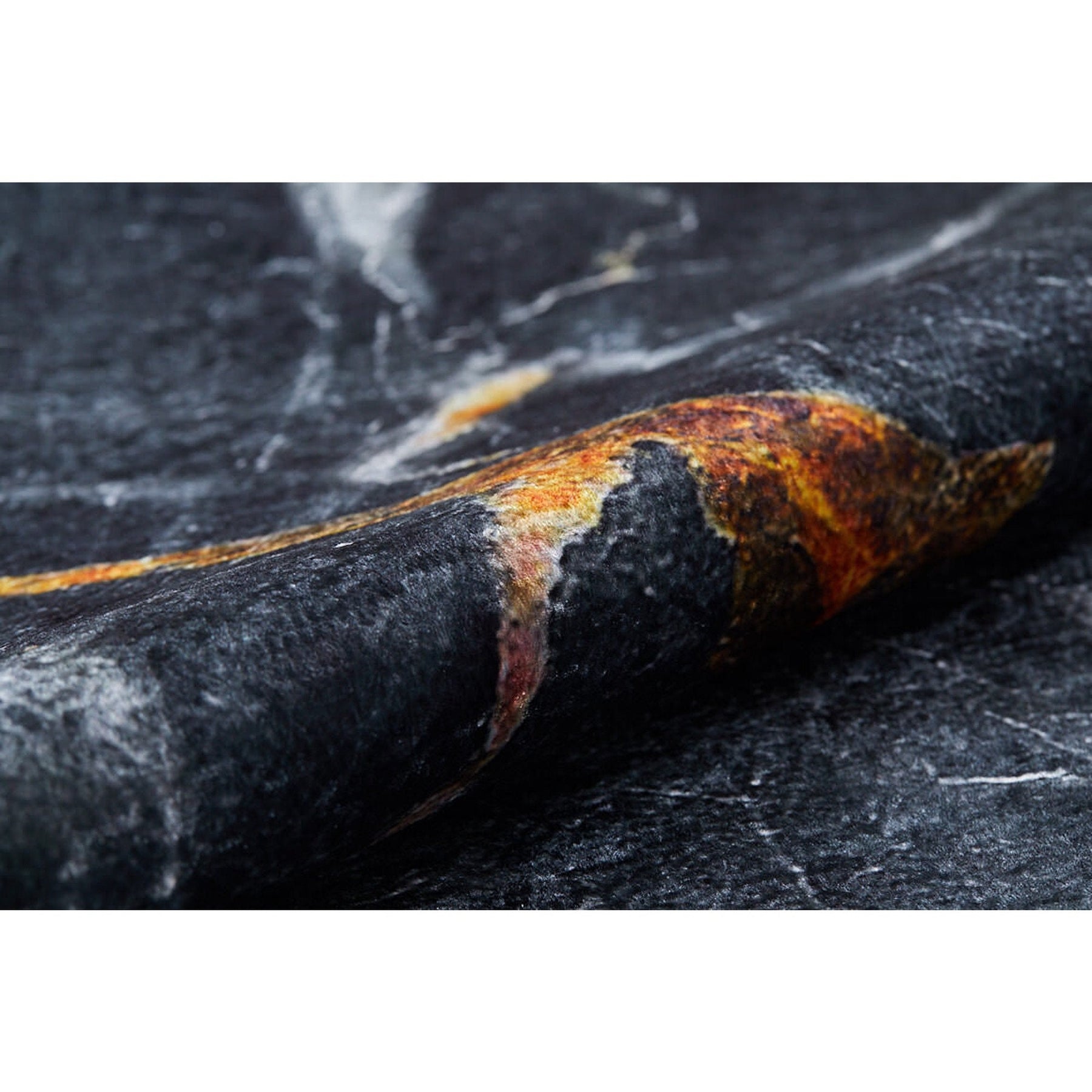 Black Orange Marble Pattern Machine-Washable Rug