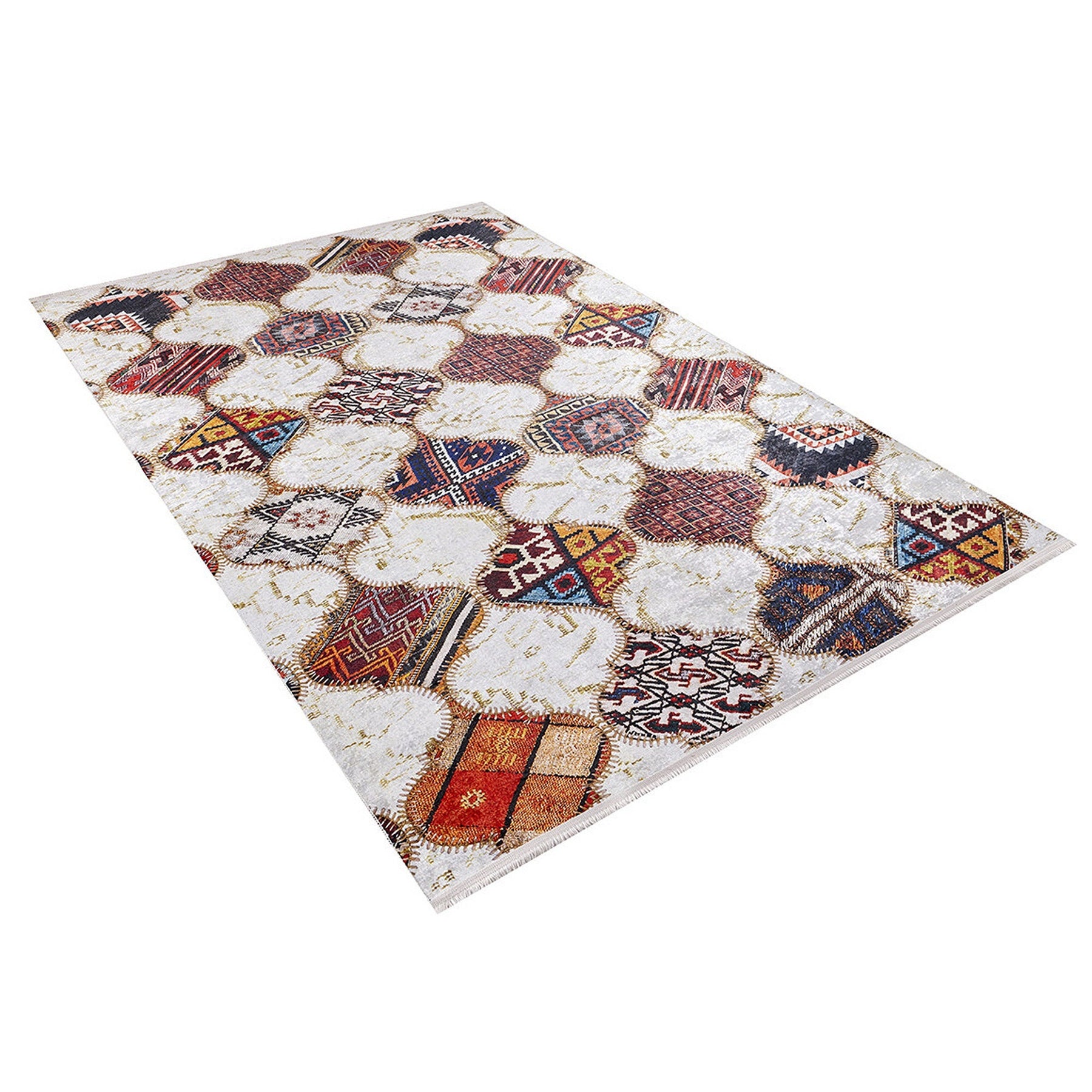This elegant Machine-Washable floor rug with Ethnic Patchwork design;