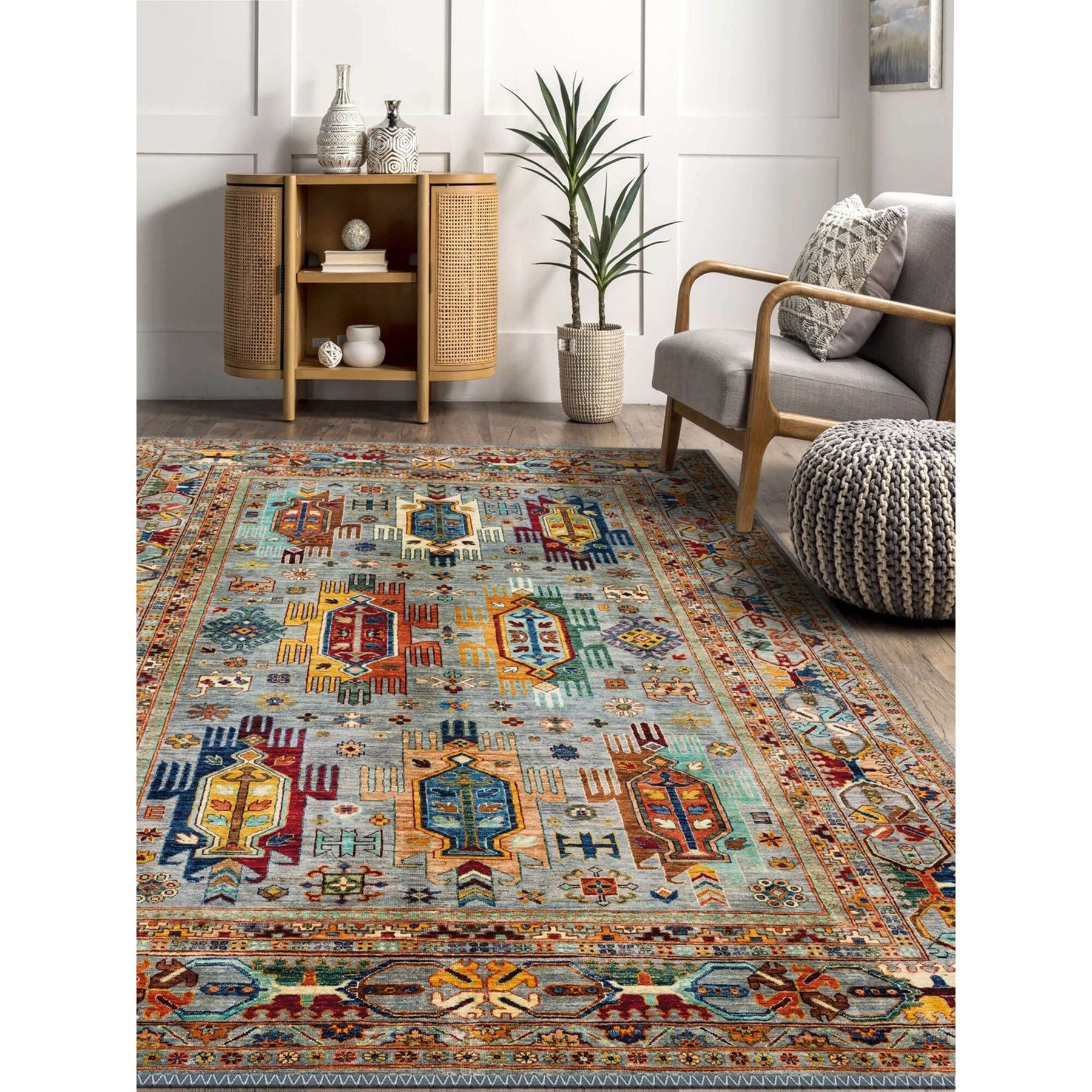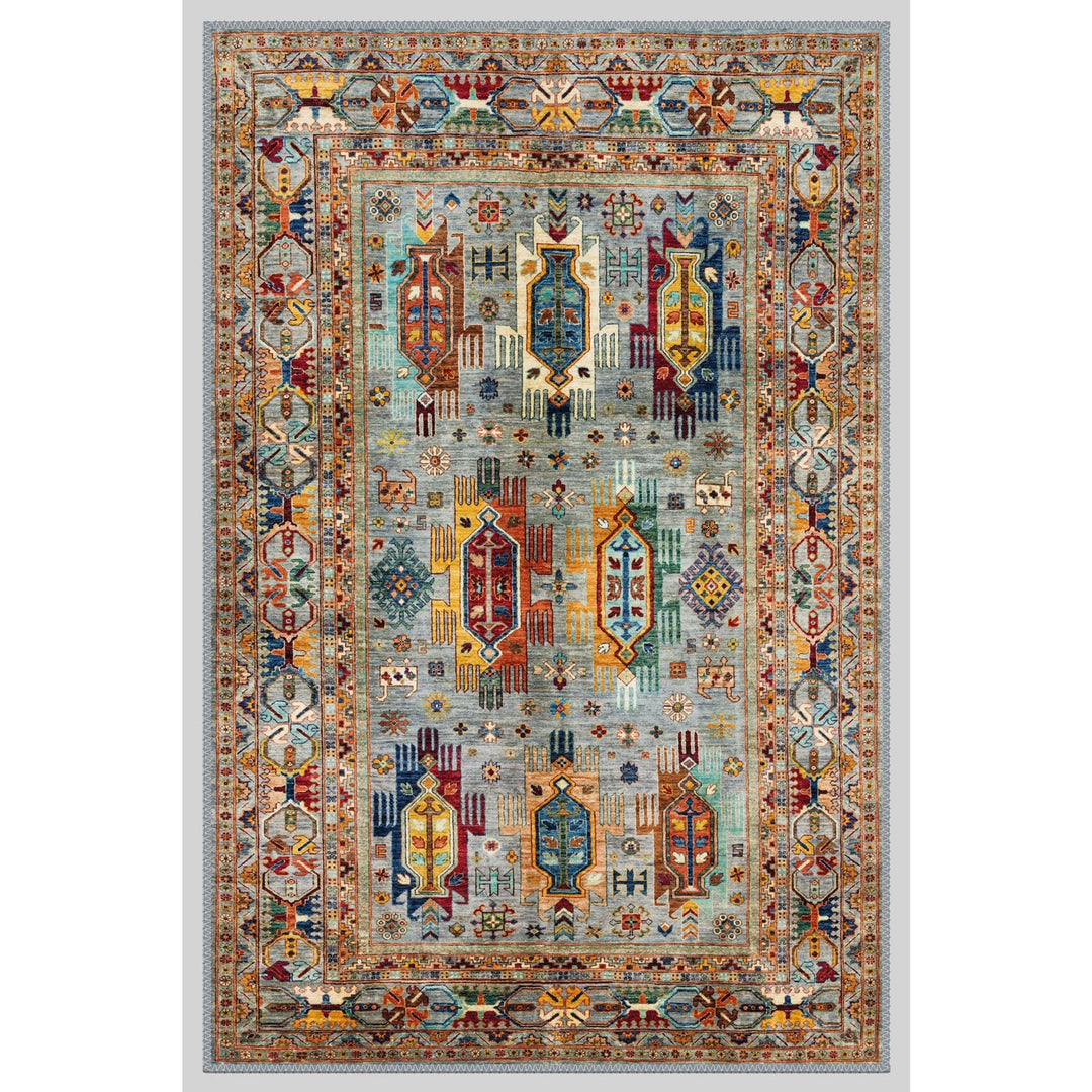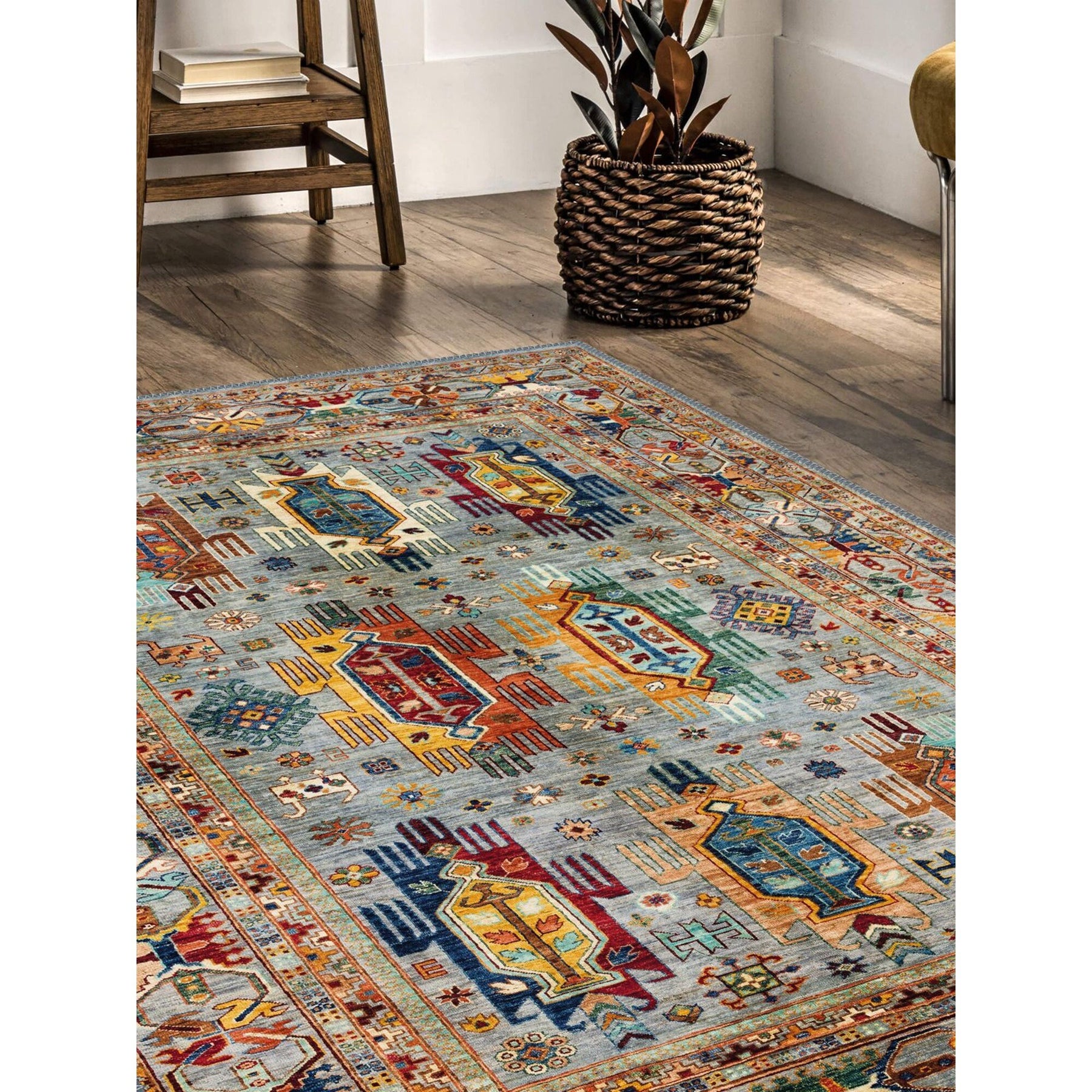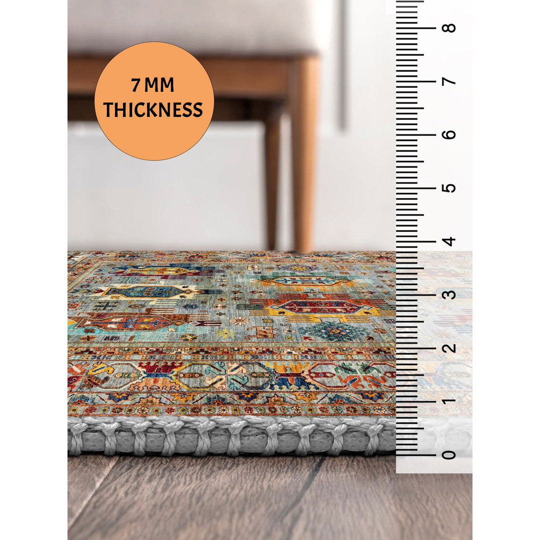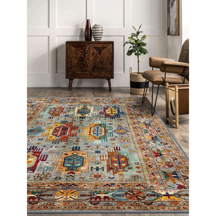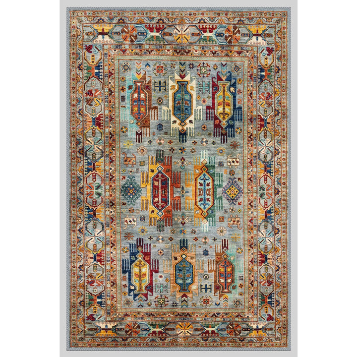 This elegant Machine-Washable floor rug with Ethnic Turkish Kilim design;