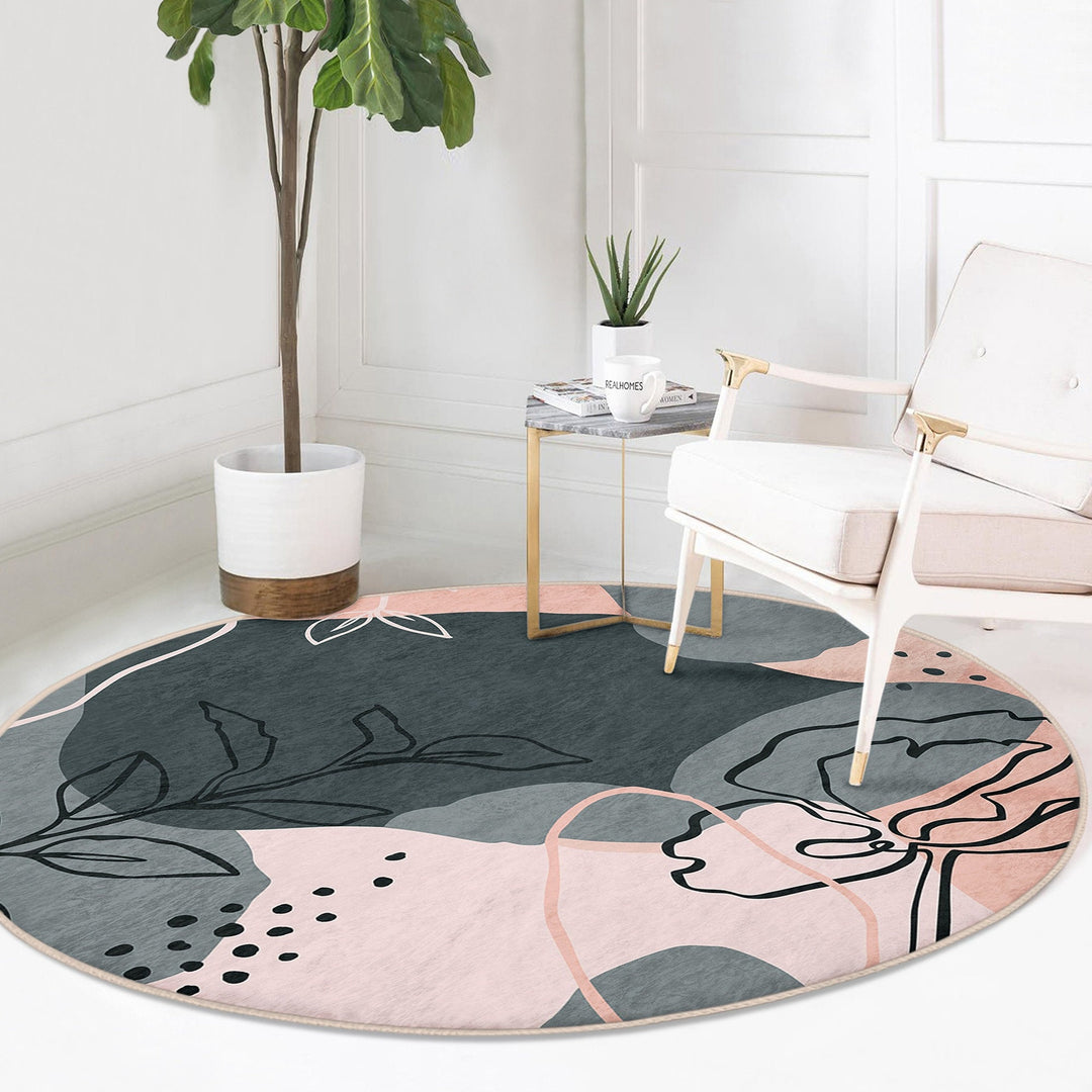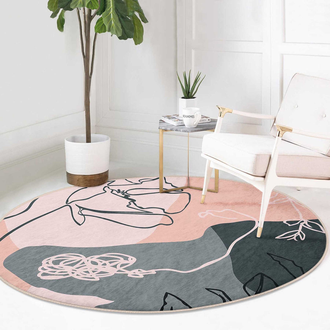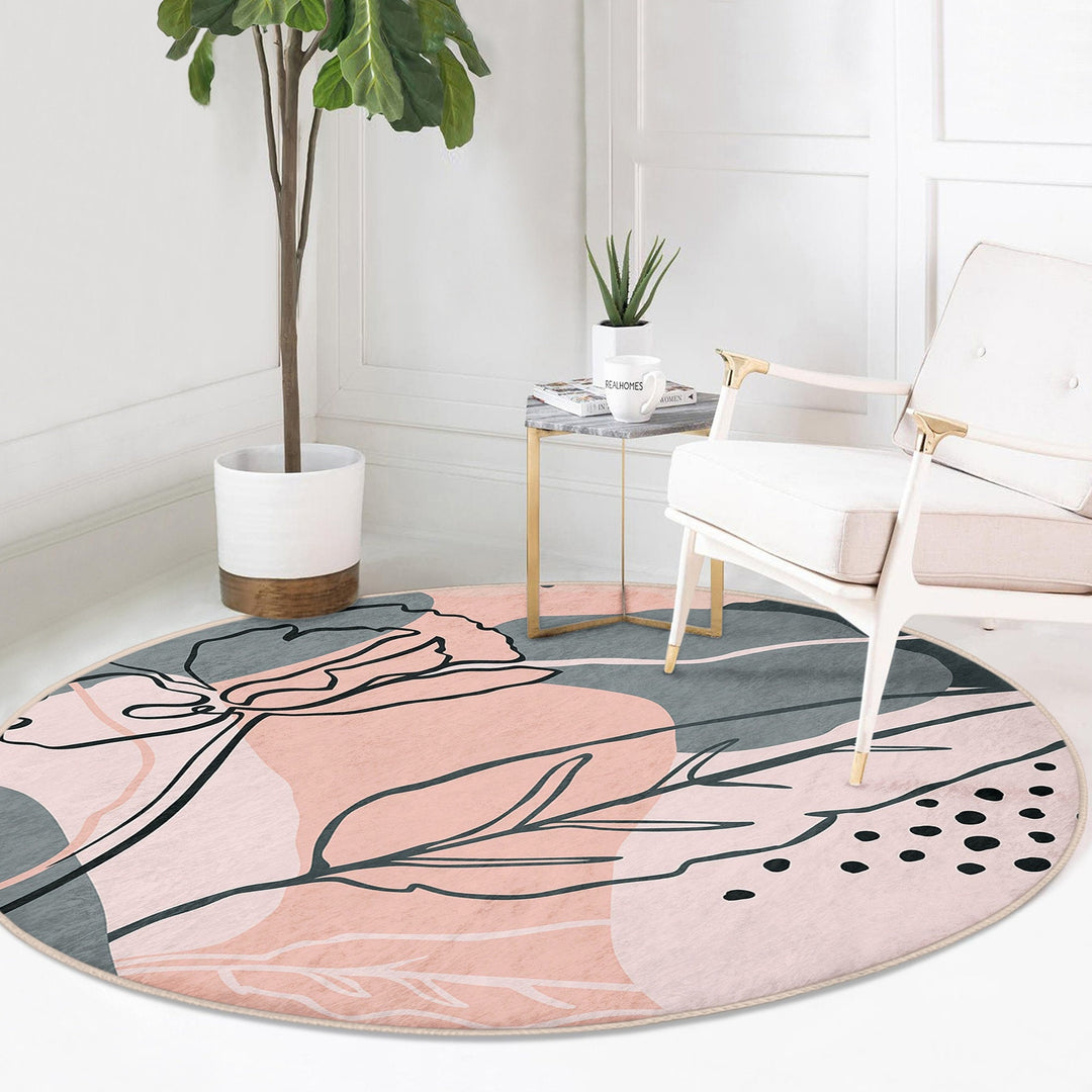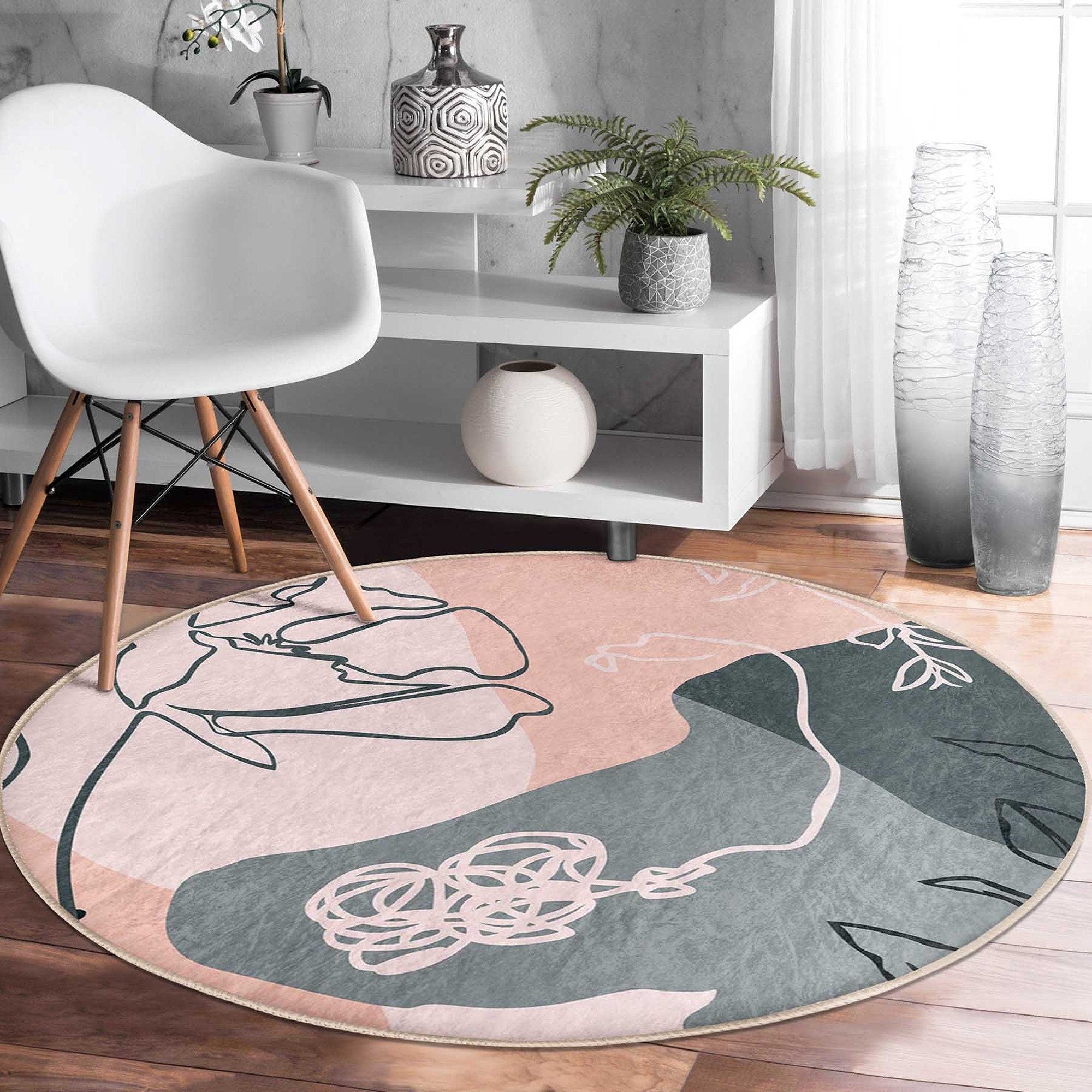 These elegant round floor rugs with abstract onedraw floral design;