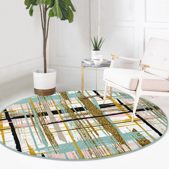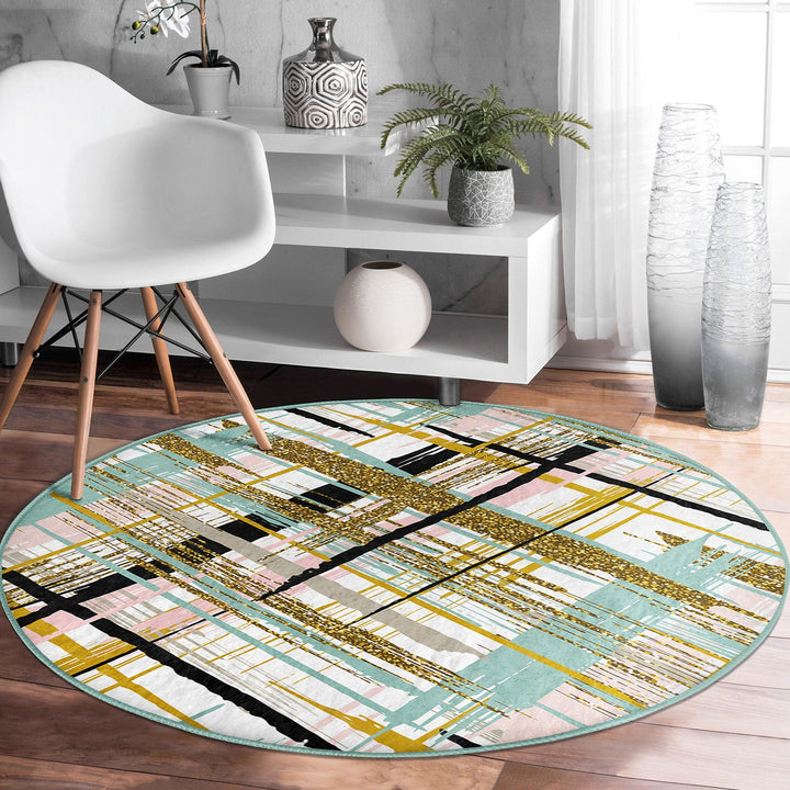 These elegant round floor rugs with abstract design;