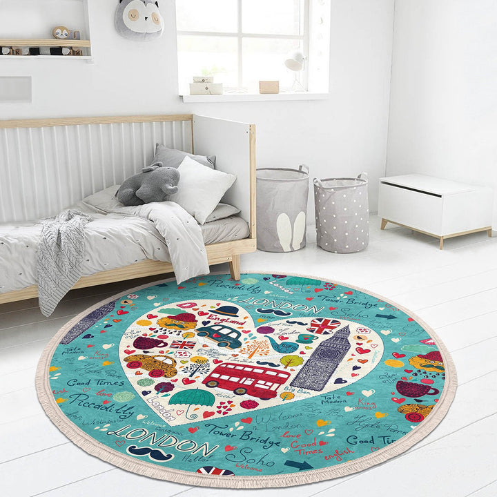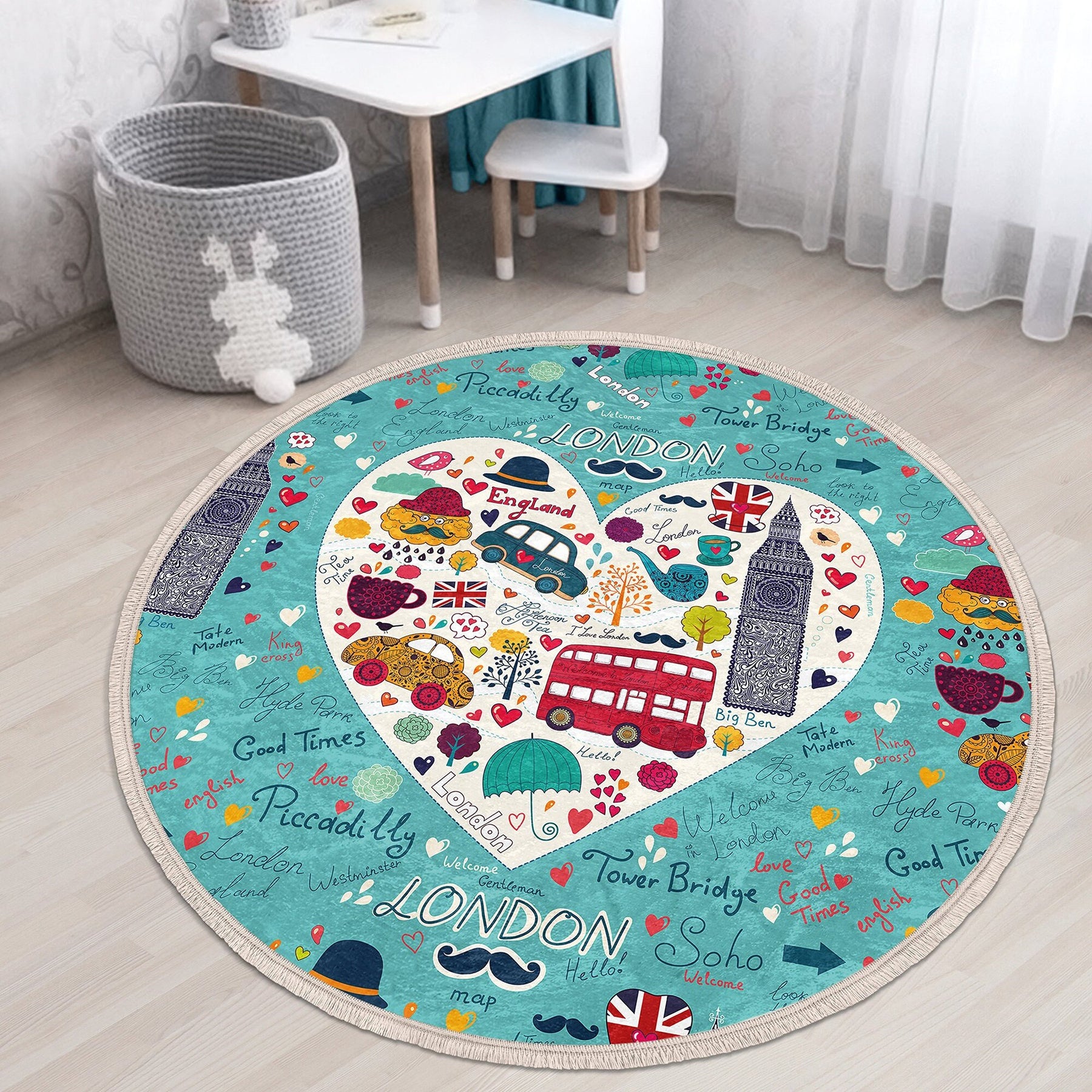 These elegant round floor rugs with Cars, London print and Animals in Cars;