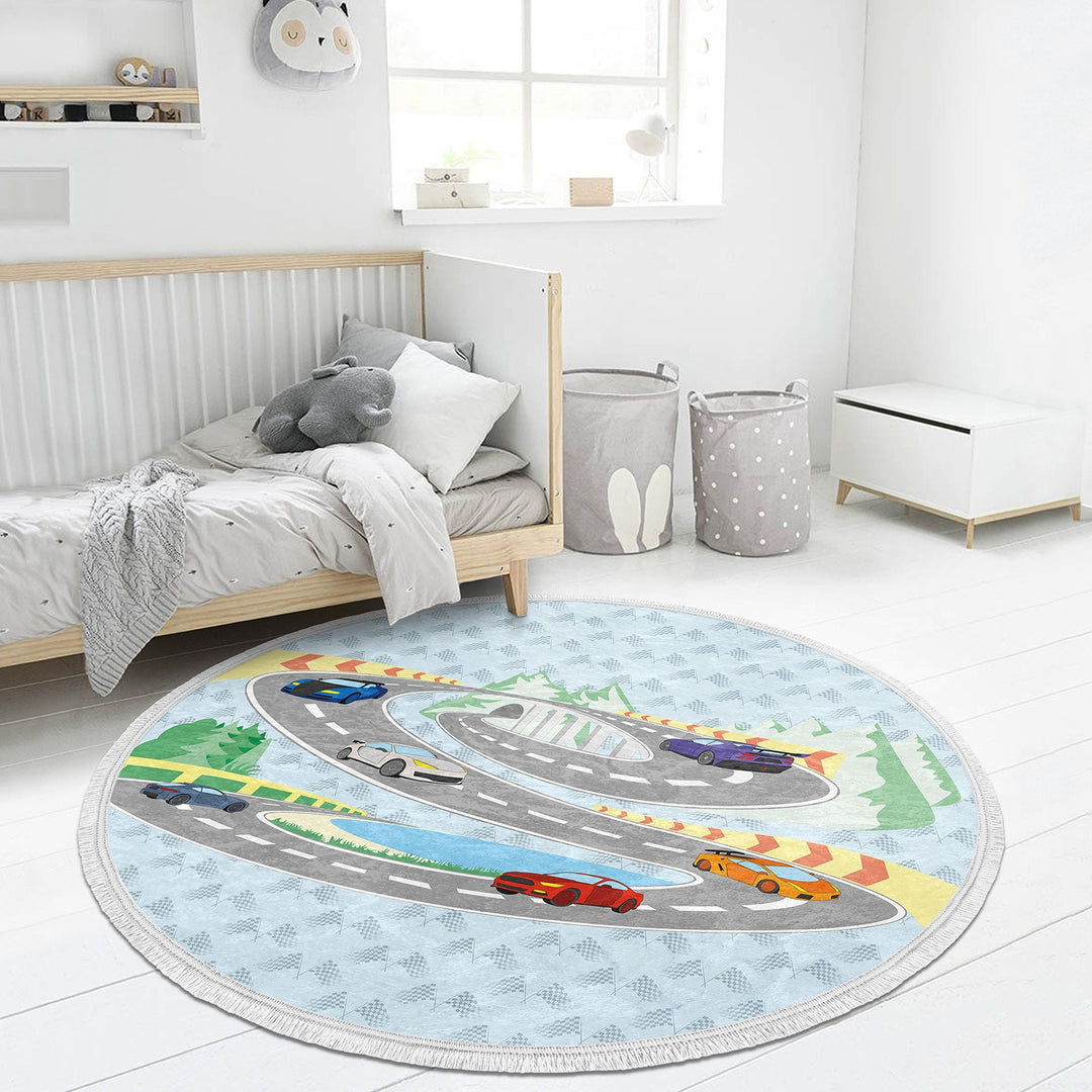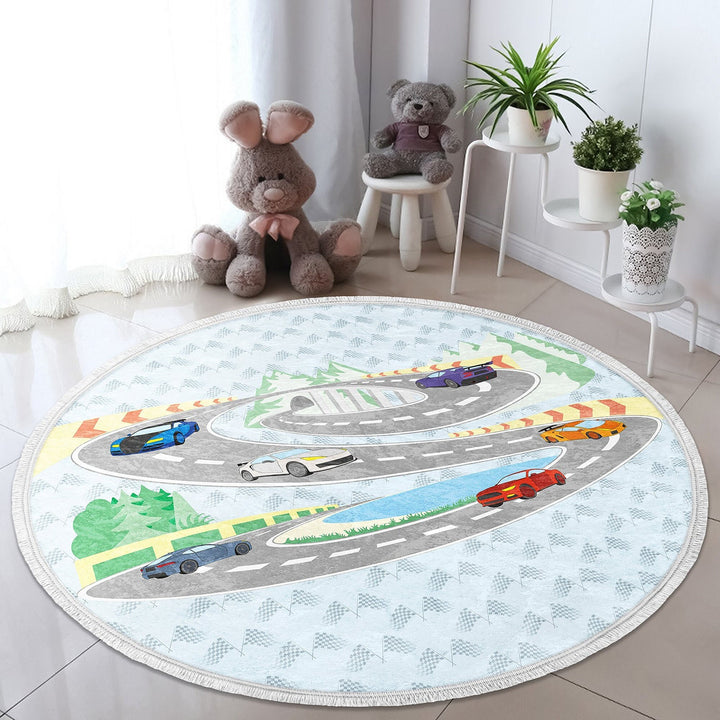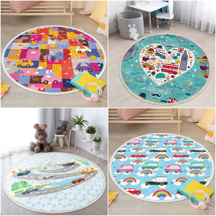 Imagine these "Car Print Round Rugs" that will add a different atmosphere to your kid's room !