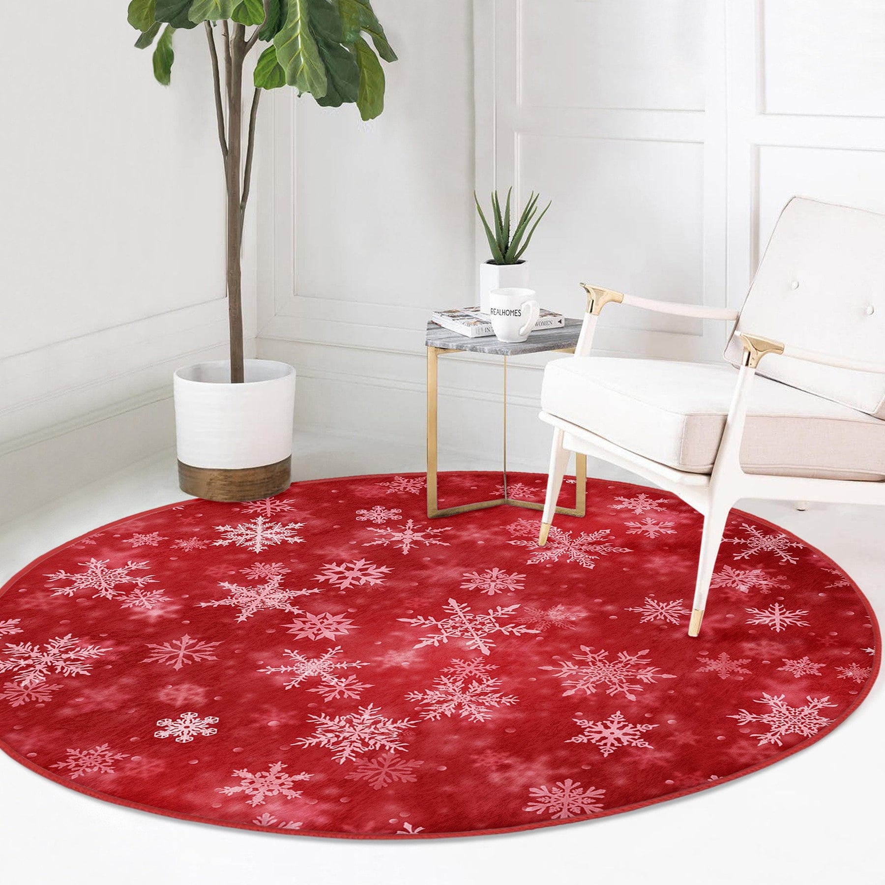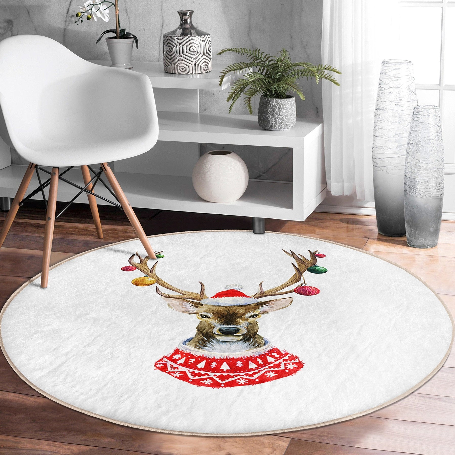 These elegant round floor rugs with Deer, Snowflake, Merry Xmas, Happy New Year and Buckhorn prints;