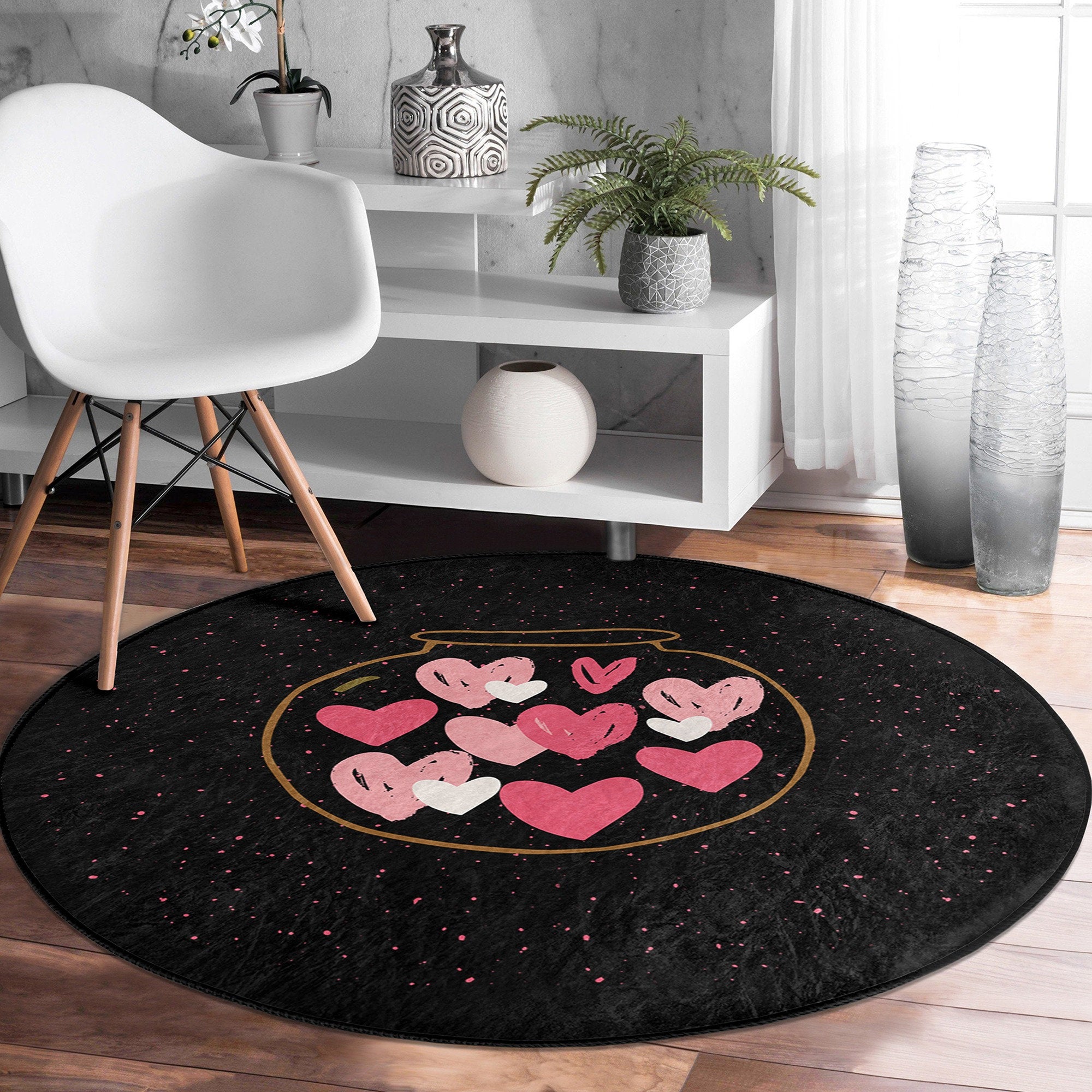 Circular Love Rug, Love Themed Carpet, V-Day Carpet, Round Floor Mat, Circular Area Mat, Heart Floor Decor, Circle Non-Slip Rug, Circle Cat Decor, Valentine's Day Gift, Love Floor Covering, Valentine Circle Rug, Romantic Home Decor, Valentine Decor