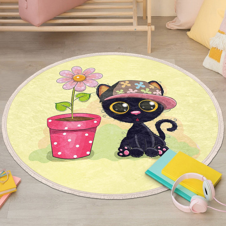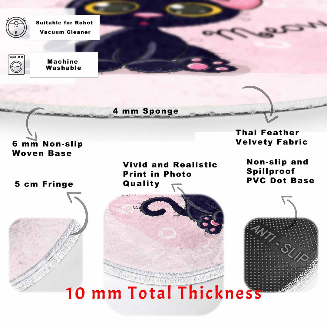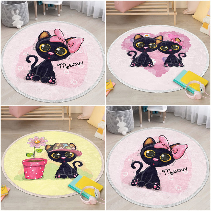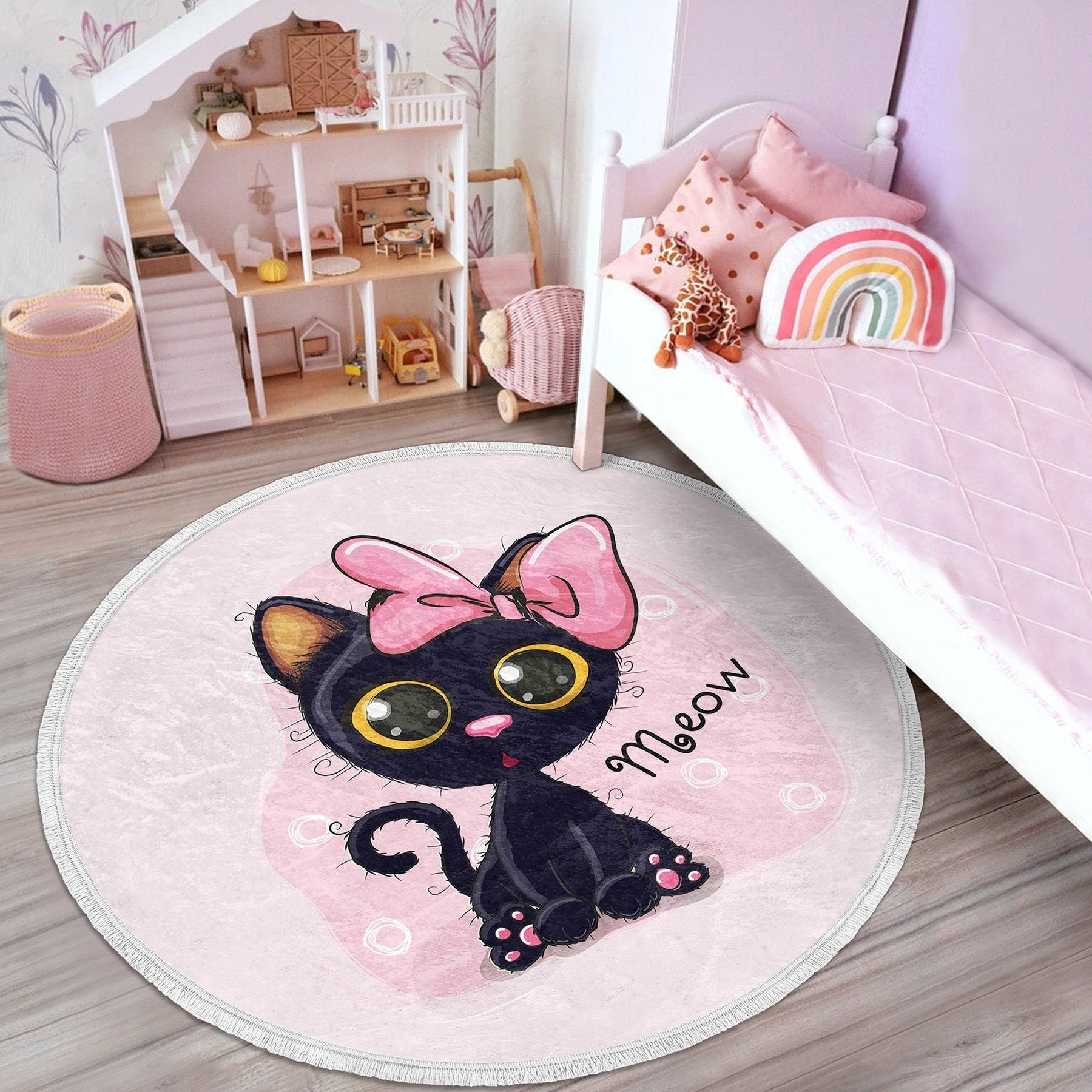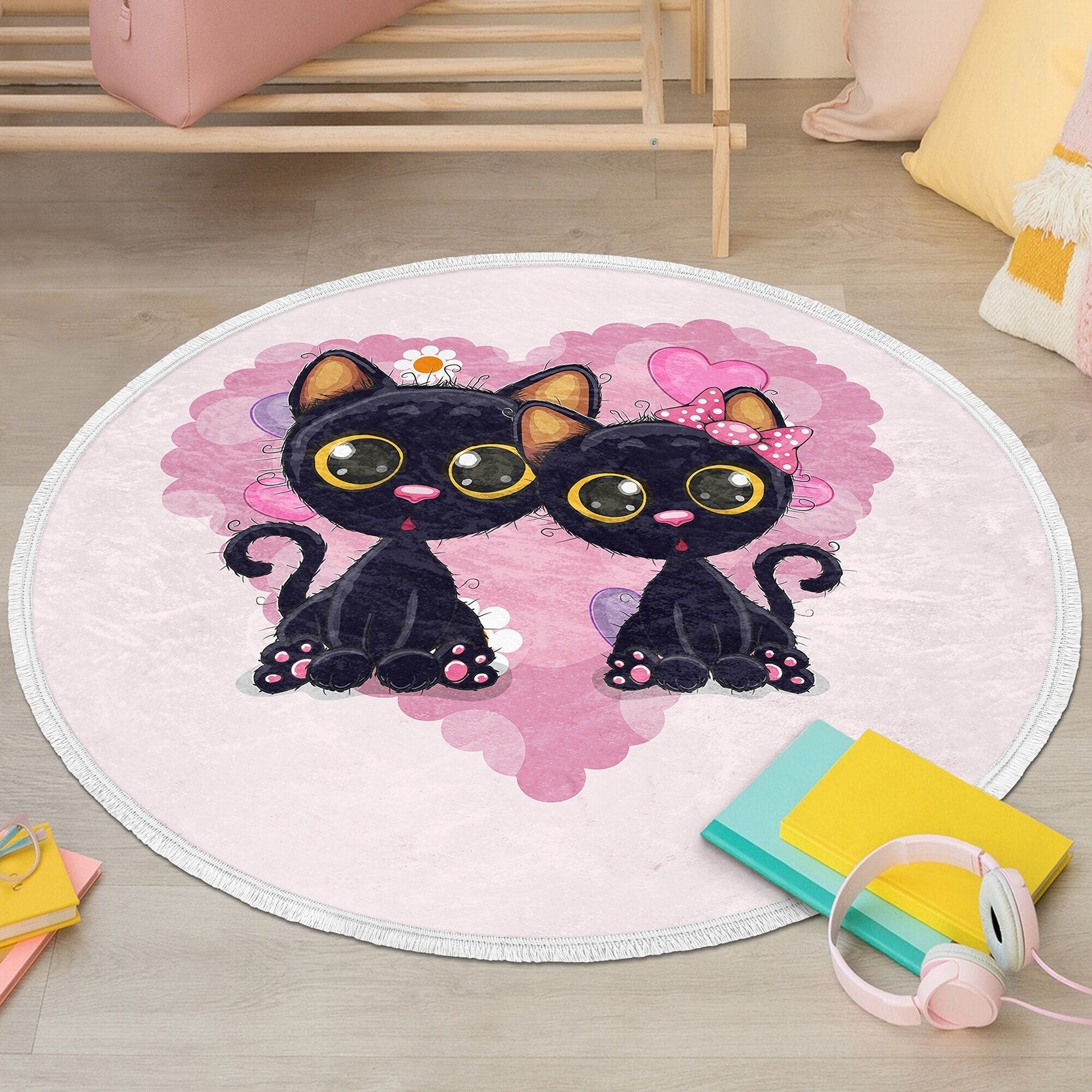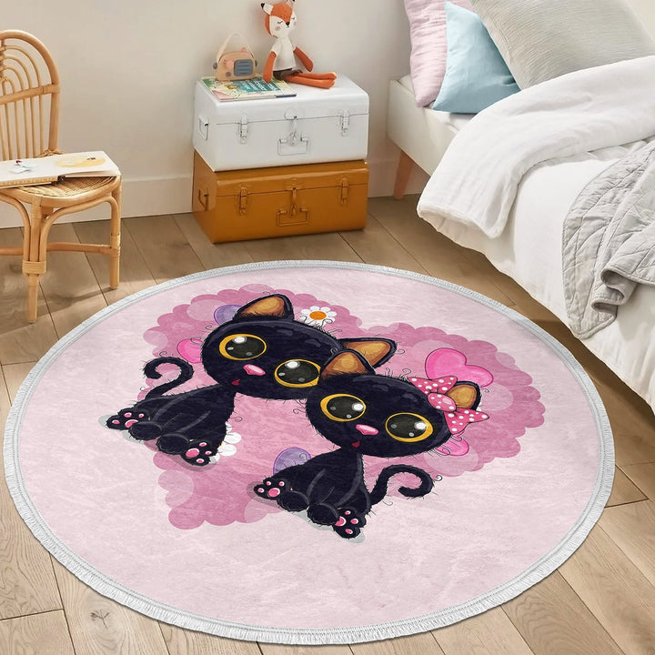 These elegant round floor rugs with Cute Cats/Black Kittens print;