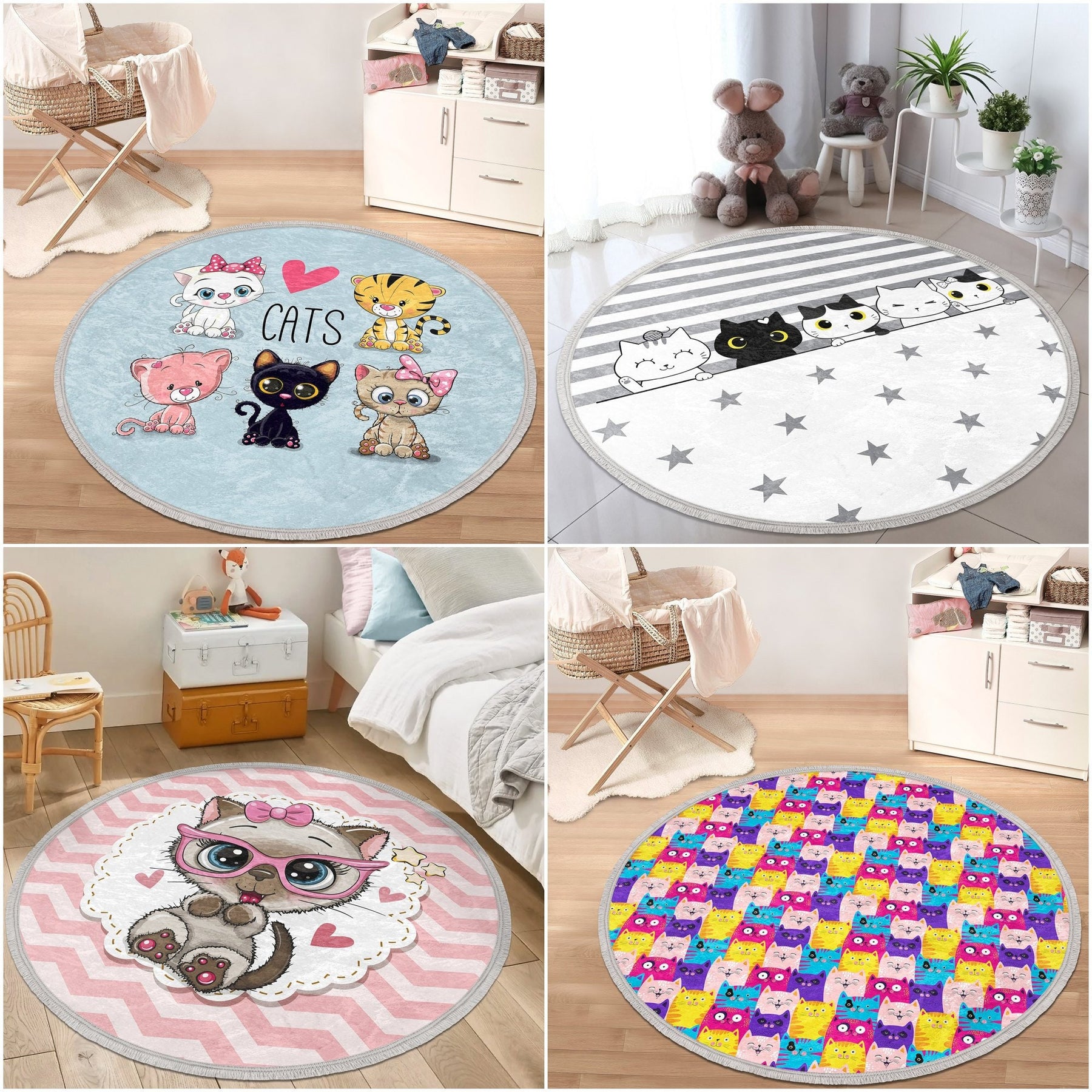 Imagine these "Cute Cats Circle Rugs" that will add a different atmosphere to your kid's room !