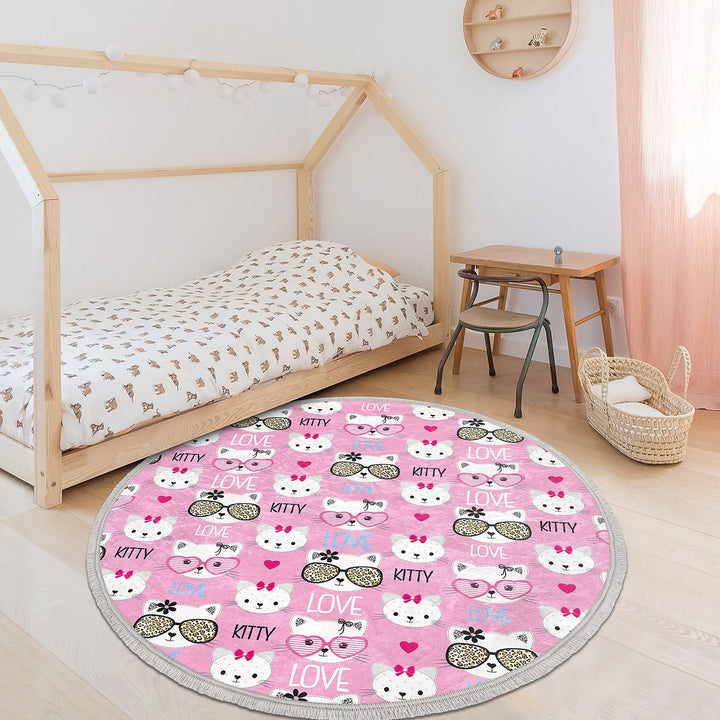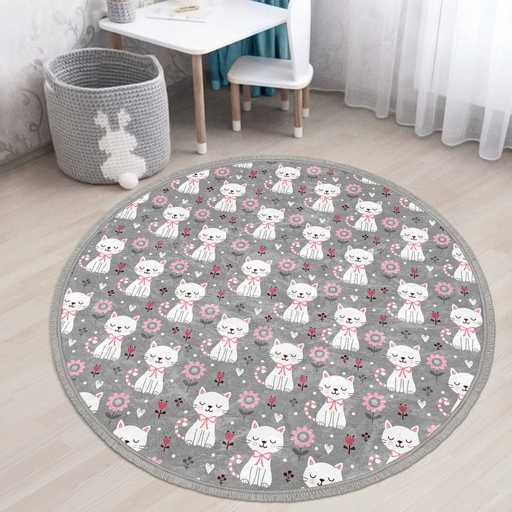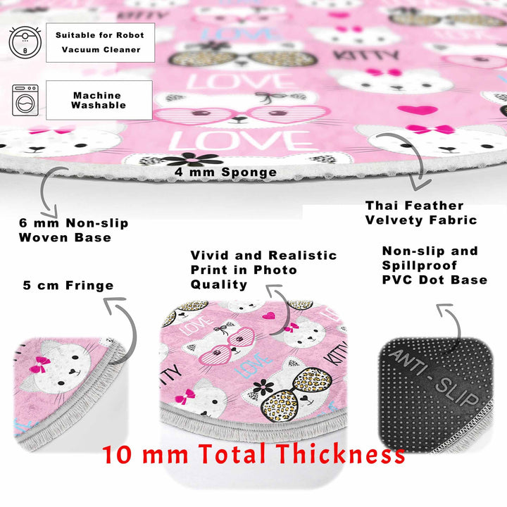 These elegant round floor rugs with Cute Cats, Love Kitty print;
