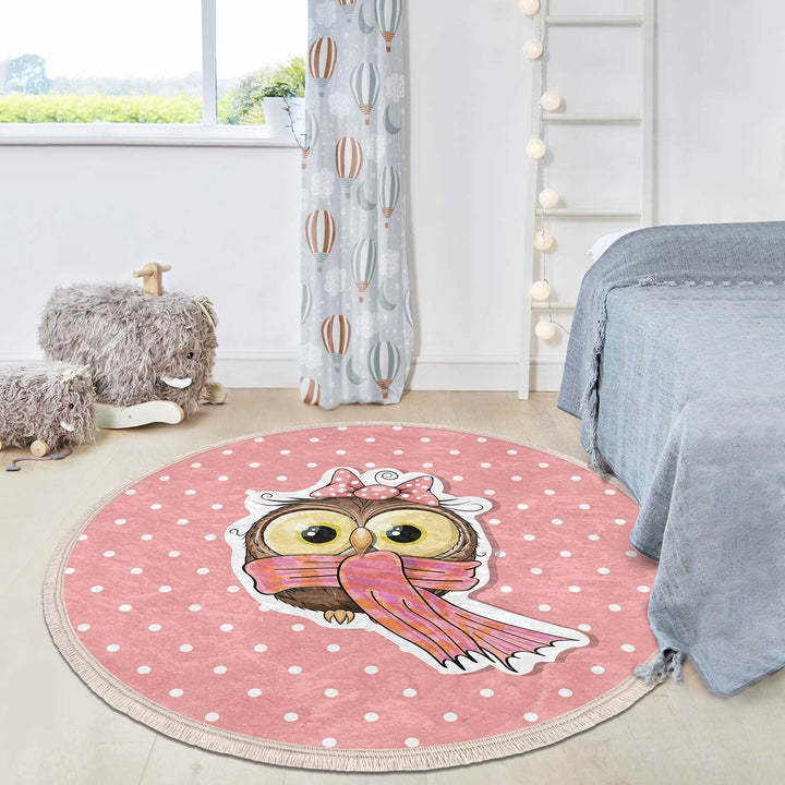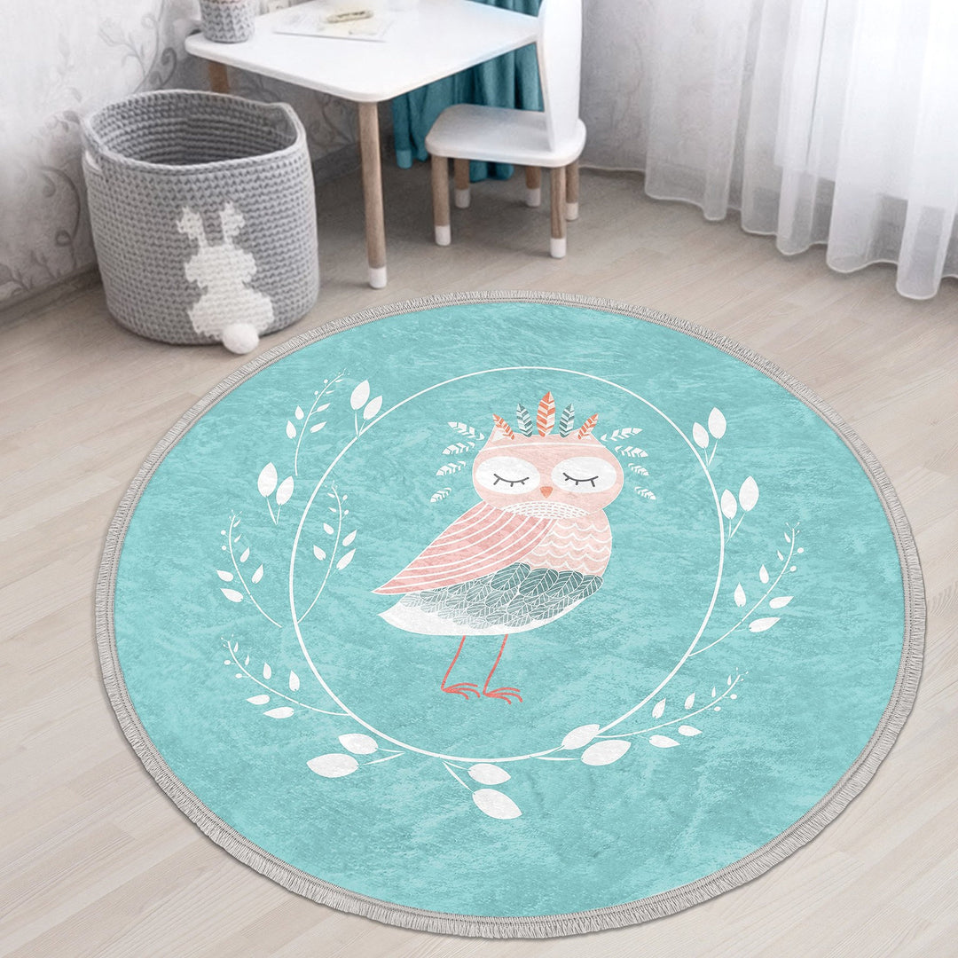 These elegant round floor rugs with Cute Owl print with pastel colors;