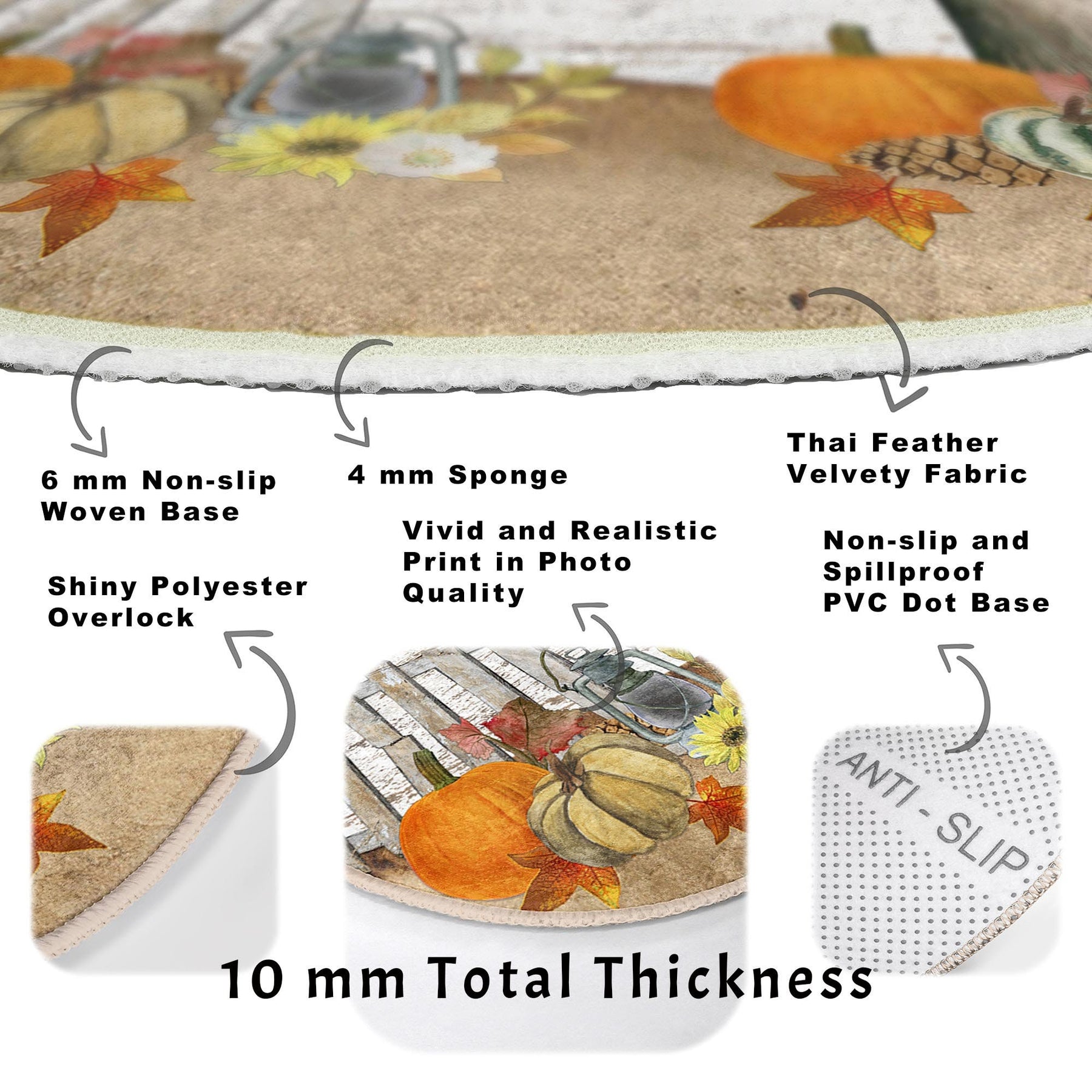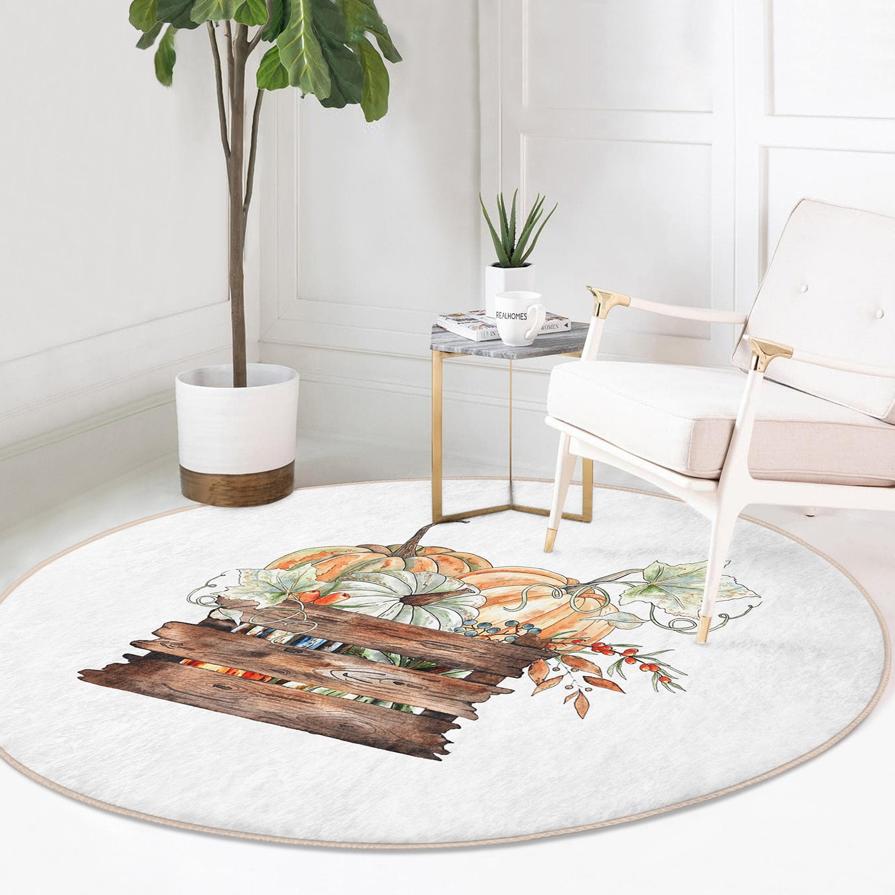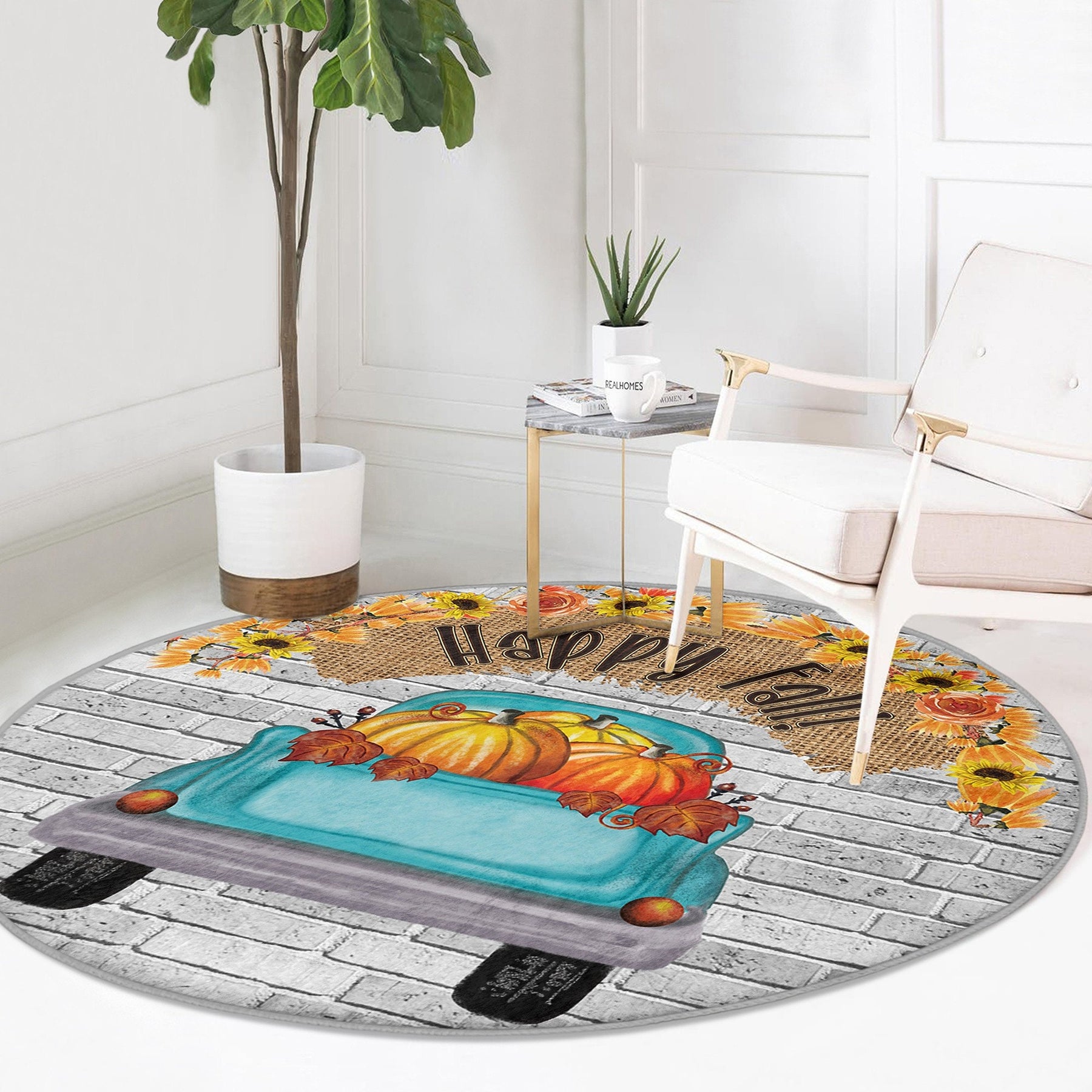 These elegant round floor rugs with Happy Fall, Floral Pumpkin, Sunflower and Truck prints;