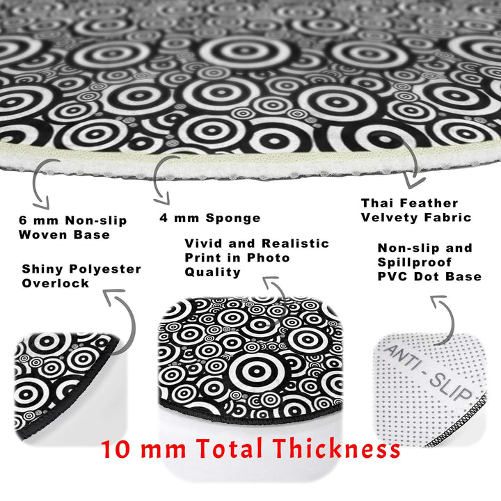 • 10mm thickness. (6 mm non-slip woven base and 4 mm sponge)