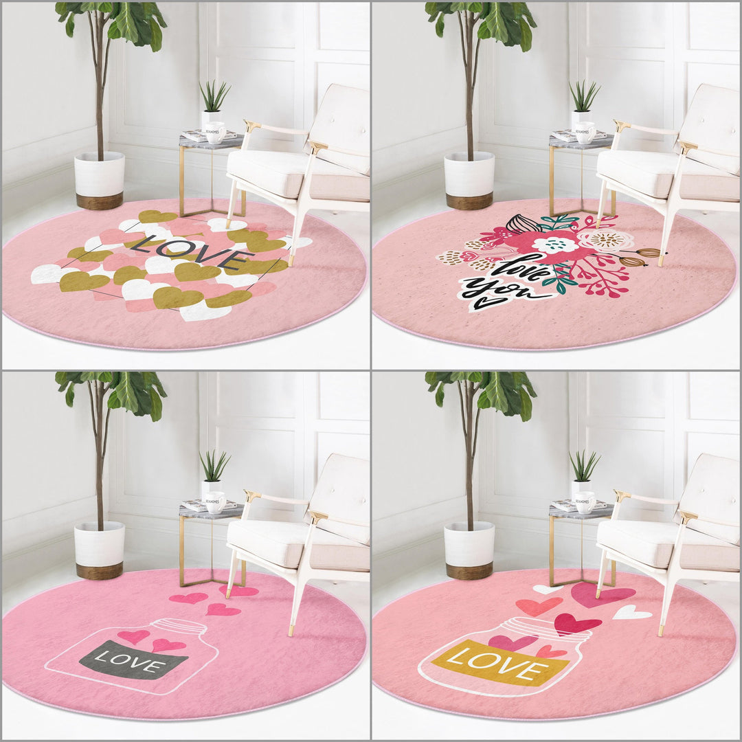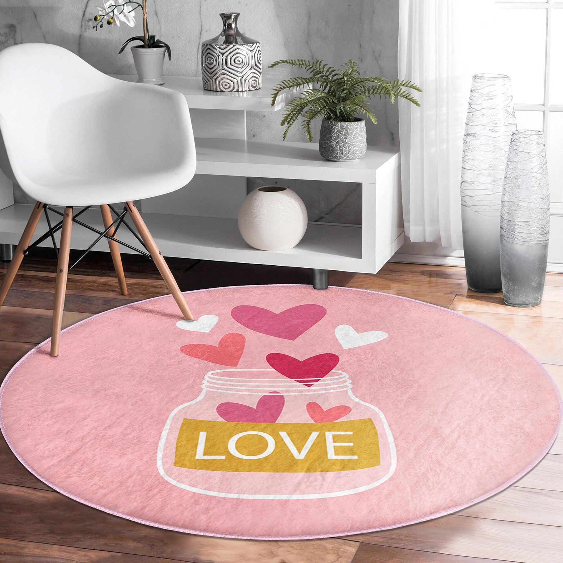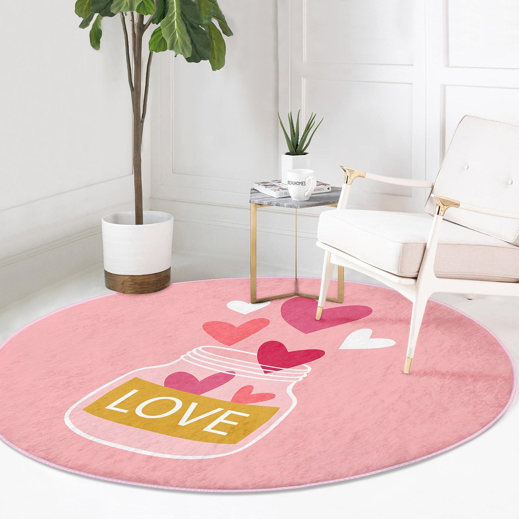 Love Floor Covering, Circular Pink Rug, Heart Floor Mat, Valentine's Day Gift, Round Love Mat, February 14 Gift, V-Day Carpet, Love You Area Rug, Circle Love Carpet, Love Themed Carpet, Valentine Decor, Circle Non-Slip Rug, Love Round Carpet