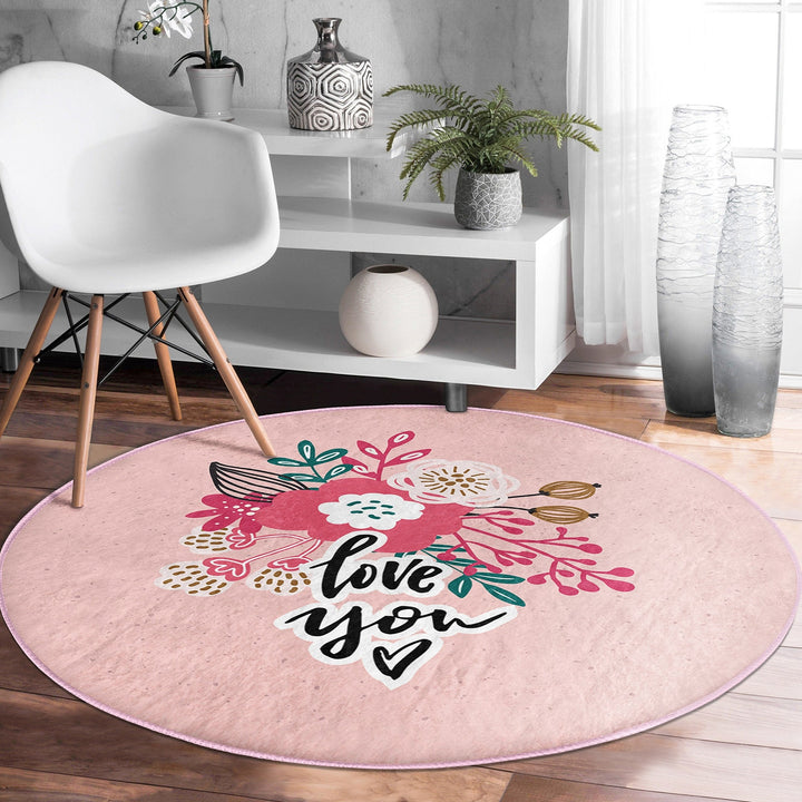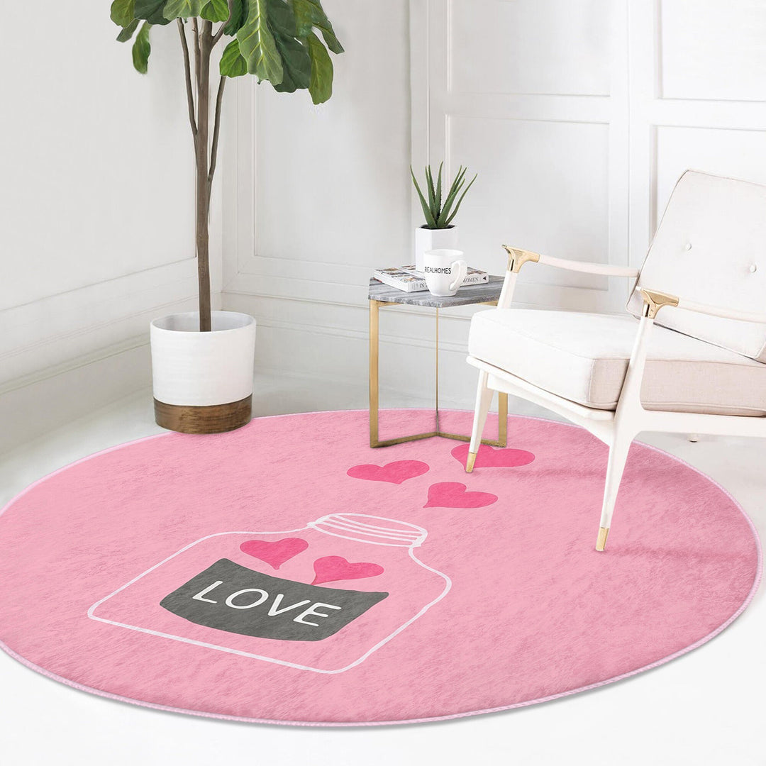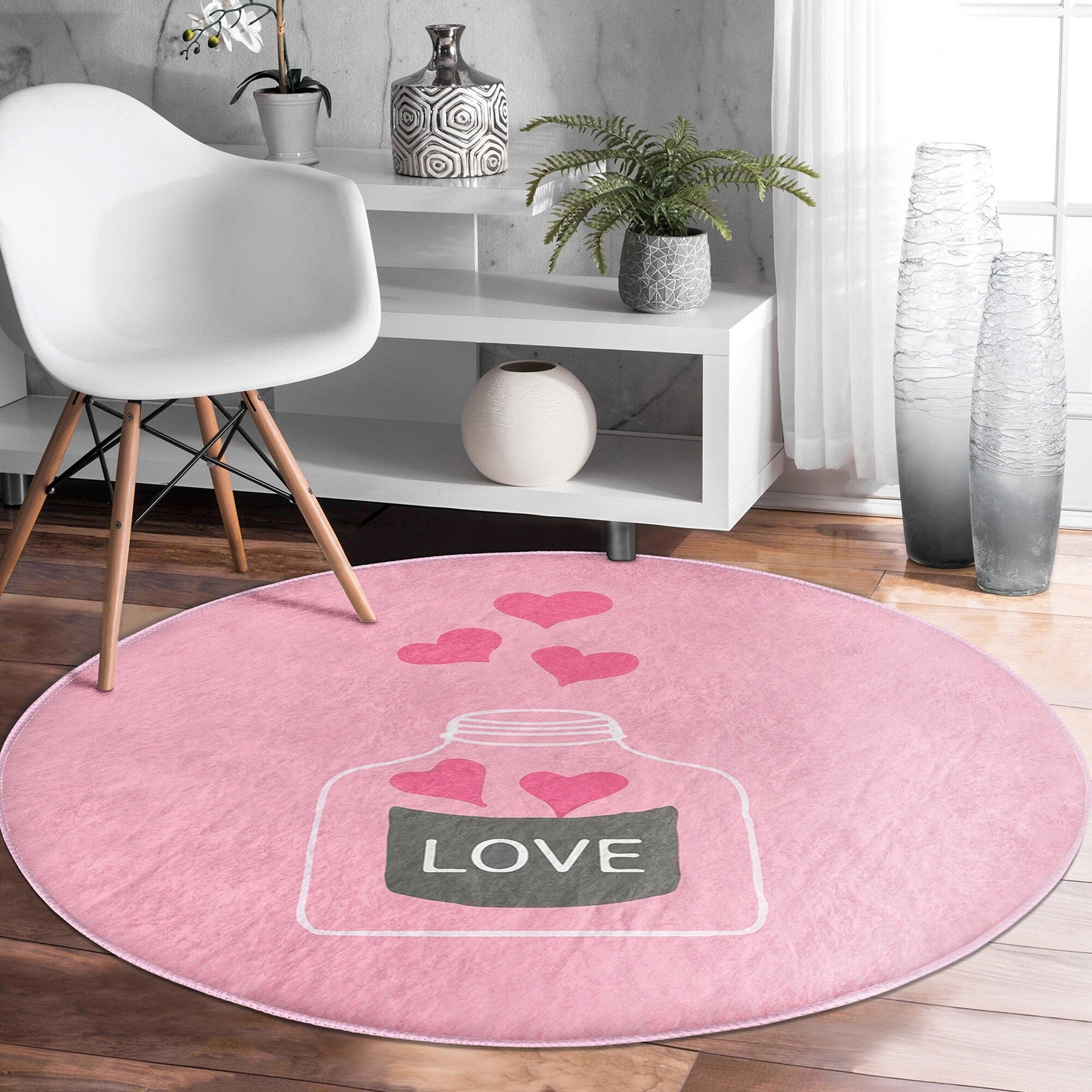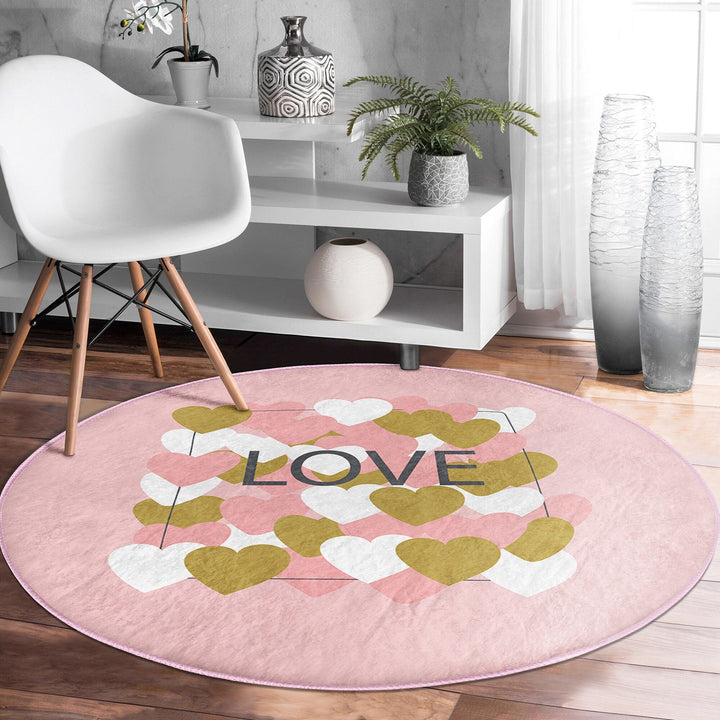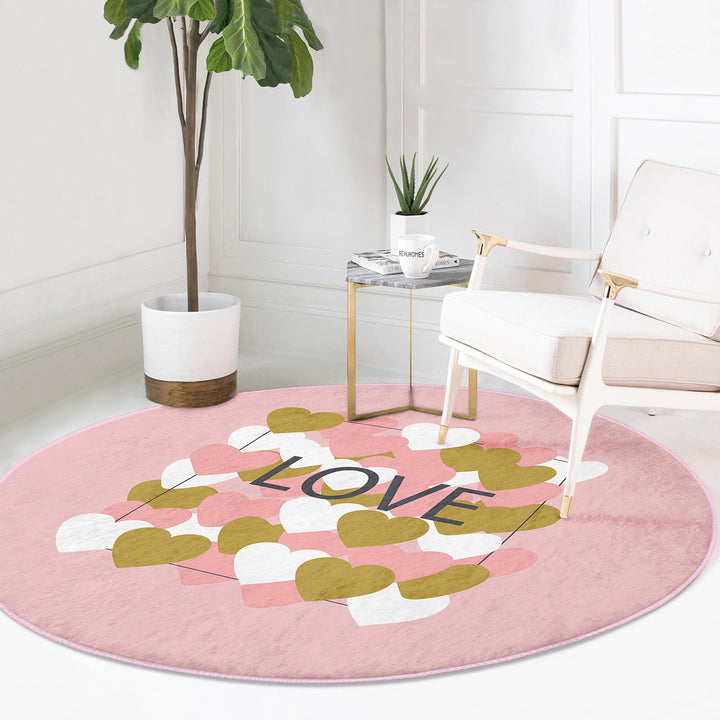 Love Floor Covering, Circular Pink Rug, Heart Floor Mat, Valentine's Day Gift, Round Love Mat, February 14 Gift, V-Day Carpet, Love You Area Rug, Circle Love Carpet, Love Themed Carpet, Valentine Decor, Circle Non-Slip Rug, Love Round Carpet