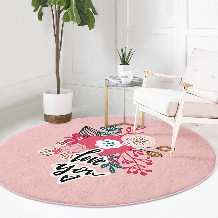 These elegant round floor rugs with Love, Heart and Love You prints;