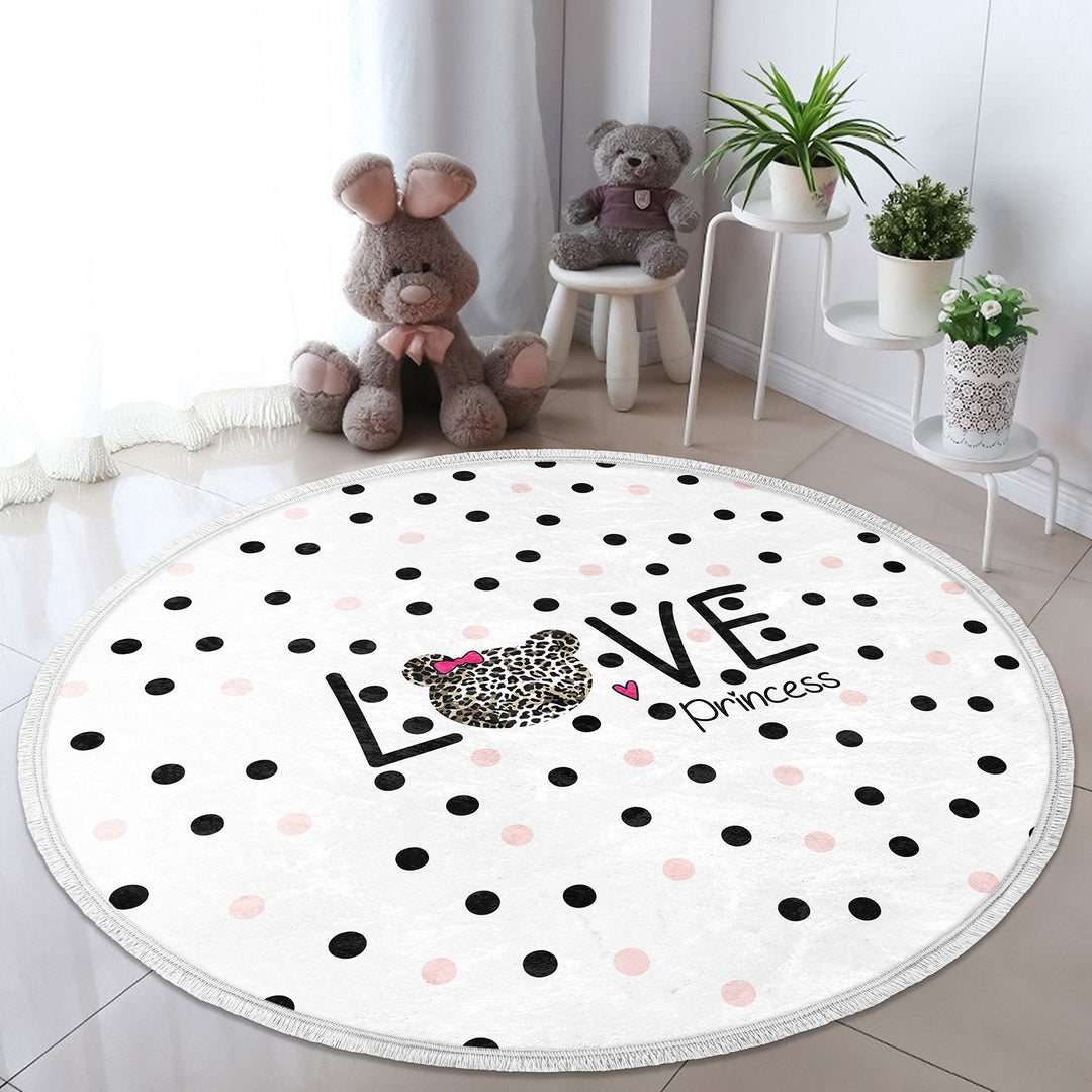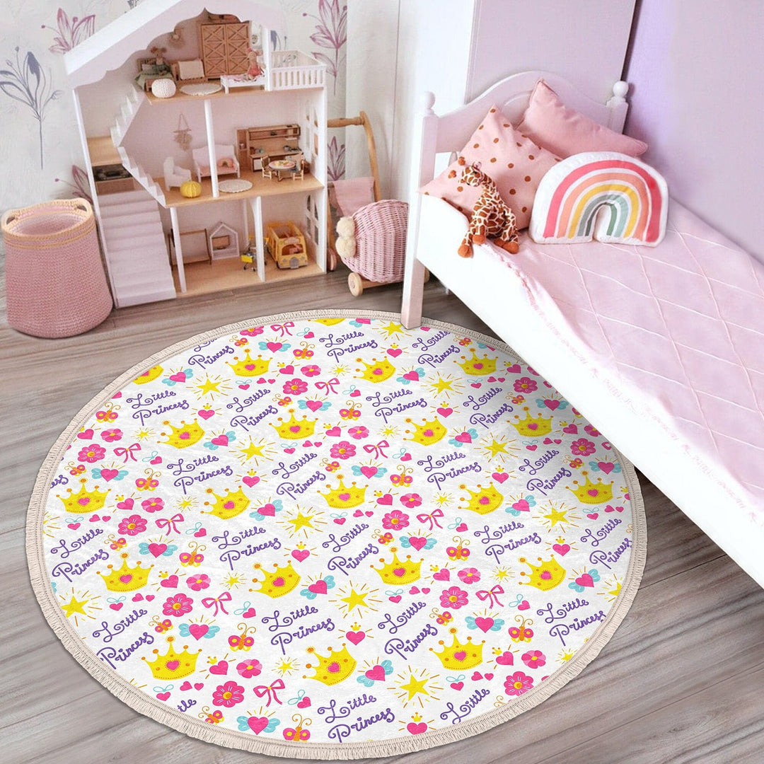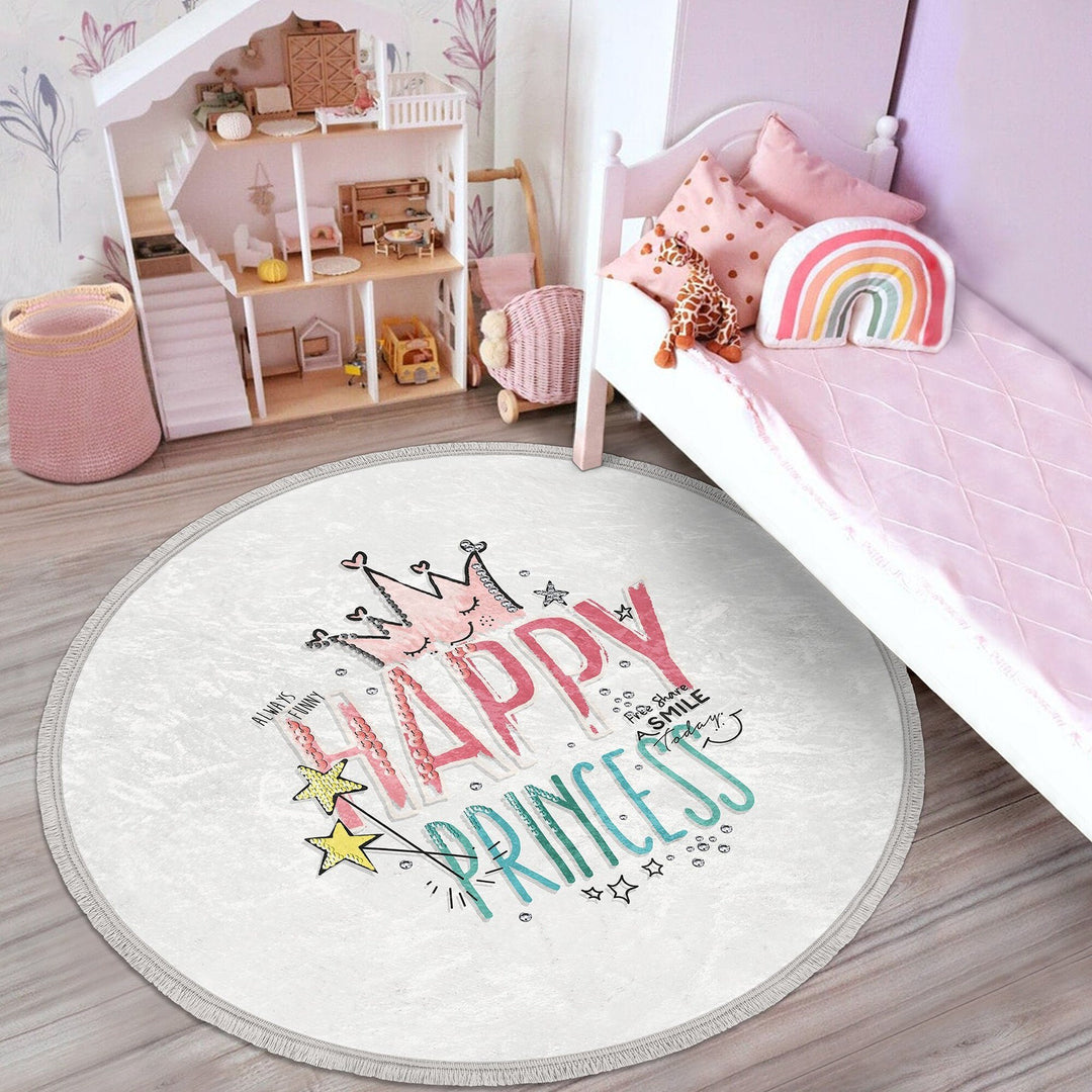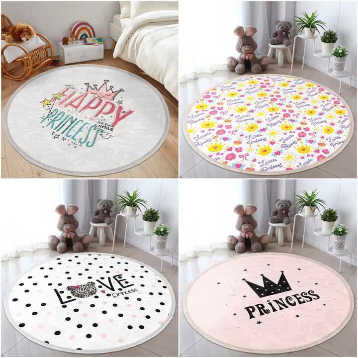 These elegant round floor rugs with Happy Princess, Little Princess, Love Princess and Crown print;