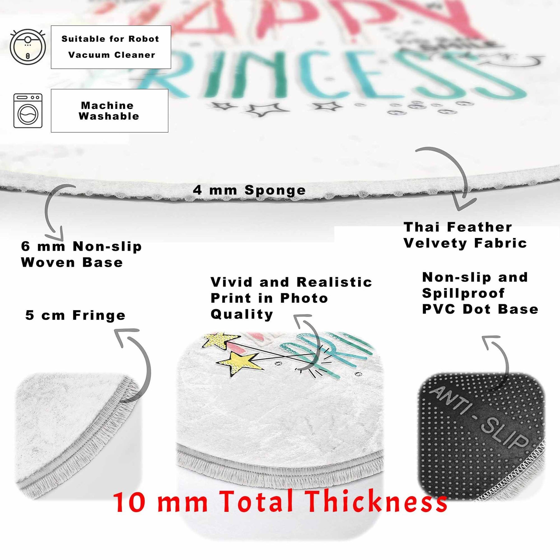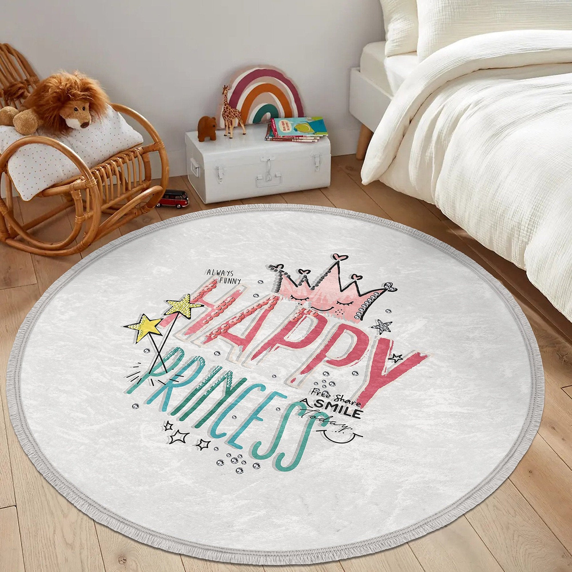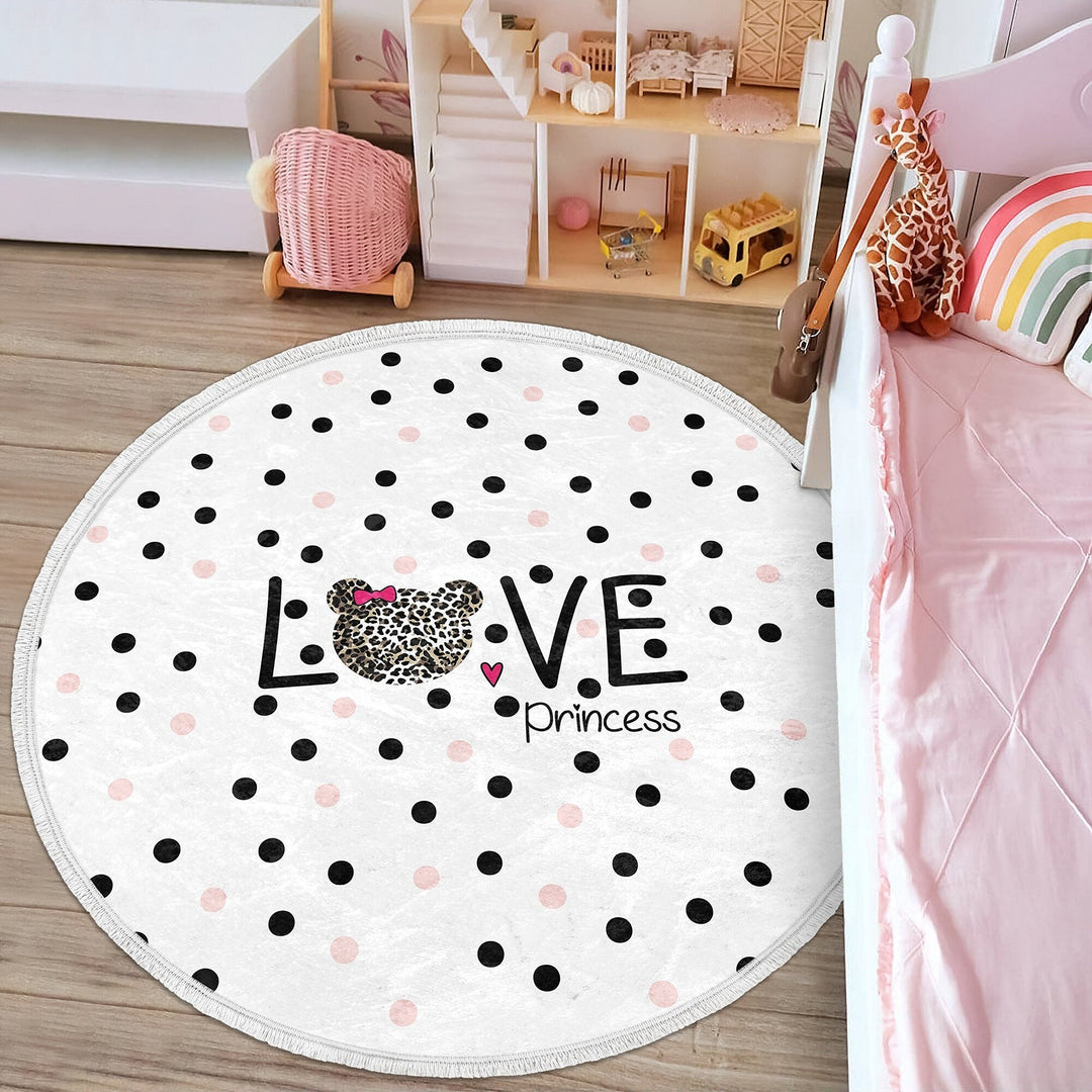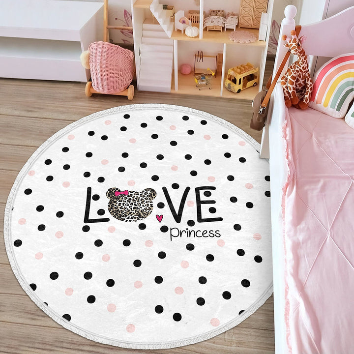 These elegant round floor rugs with Happy Princess, Little Princess, Love Princess and Crown print;