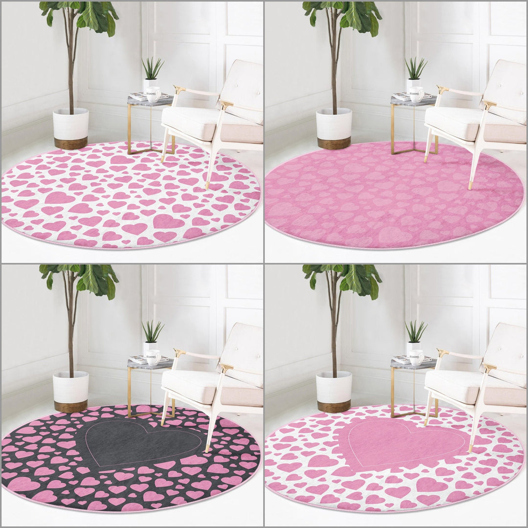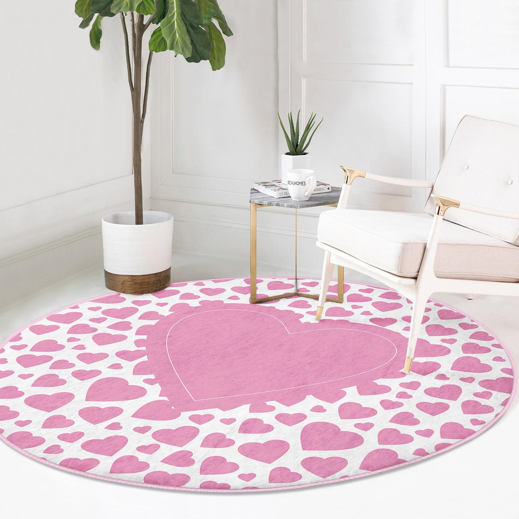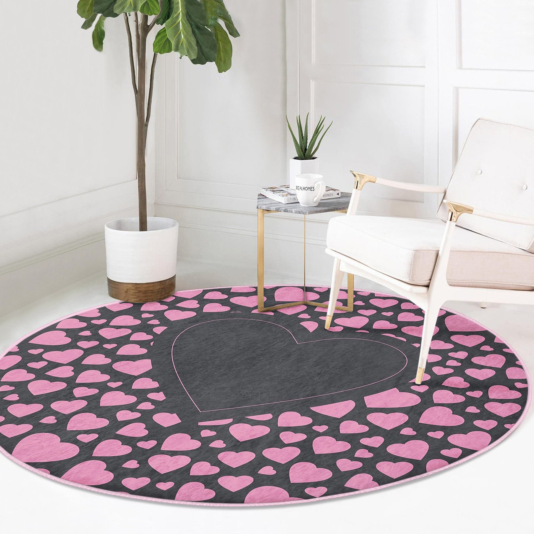 V-Day Carpet, Valentine Decor, Heart Floor Mat, Love Themed Carpet, February 14 Gift, Love Floor Covering, Circle Non-Slip Rug, Circular Love Rug, Love Round Carpet, Valentine's Day Gift, Romantic Home Decor, Round Love Mat, Circle Love Carpet