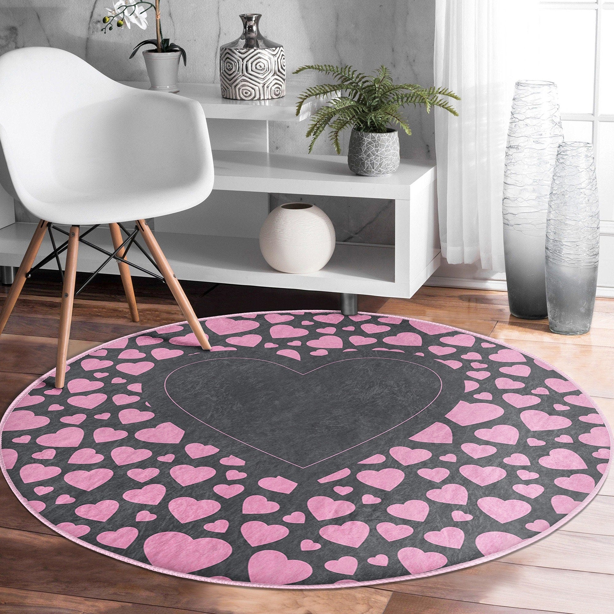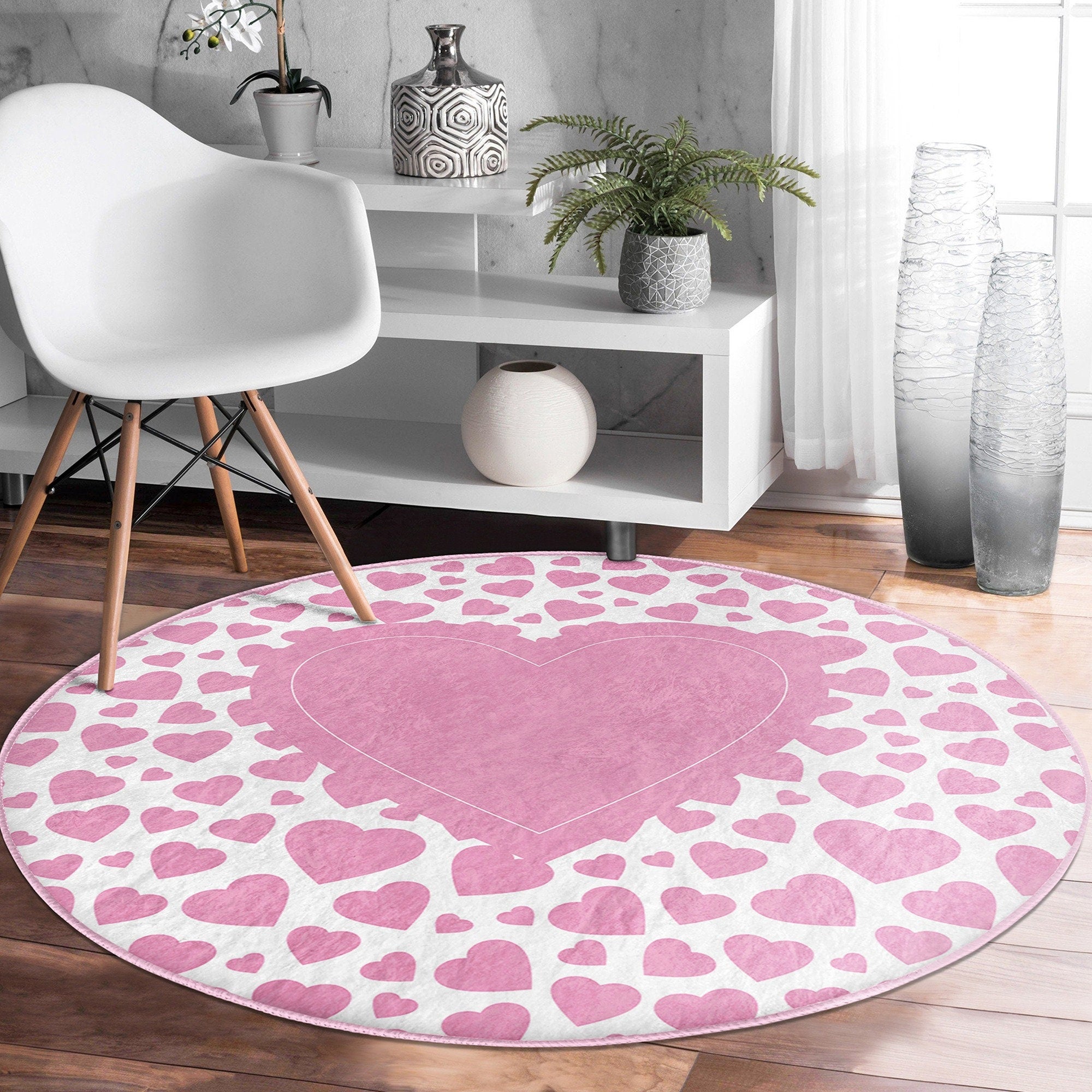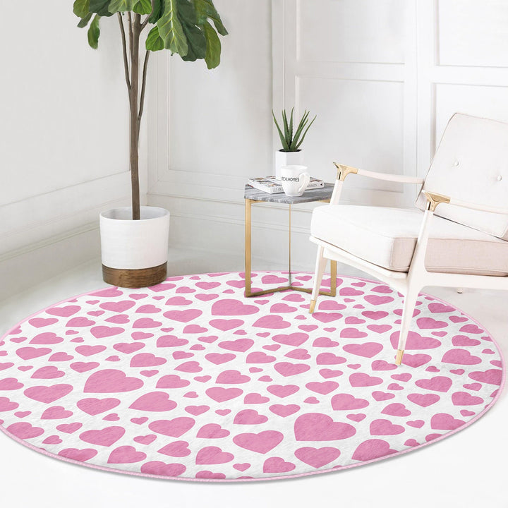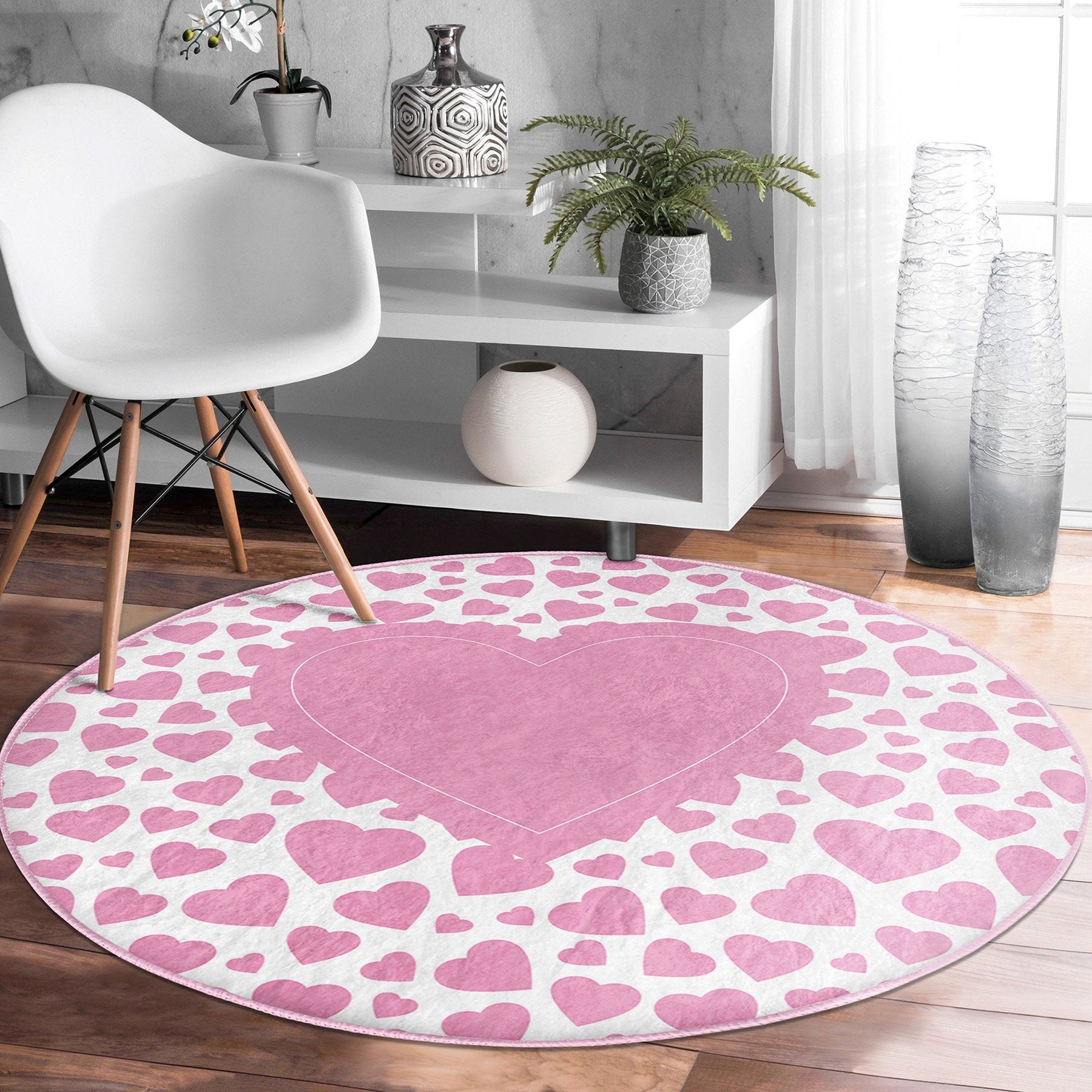 V-Day Carpet, Valentine Decor, Heart Floor Mat, Love Themed Carpet, February 14 Gift, Love Floor Covering, Circle Non-Slip Rug, Circular Love Rug, Love Round Carpet, Valentine's Day Gift, Romantic Home Decor, Round Love Mat, Circle Love Carpet