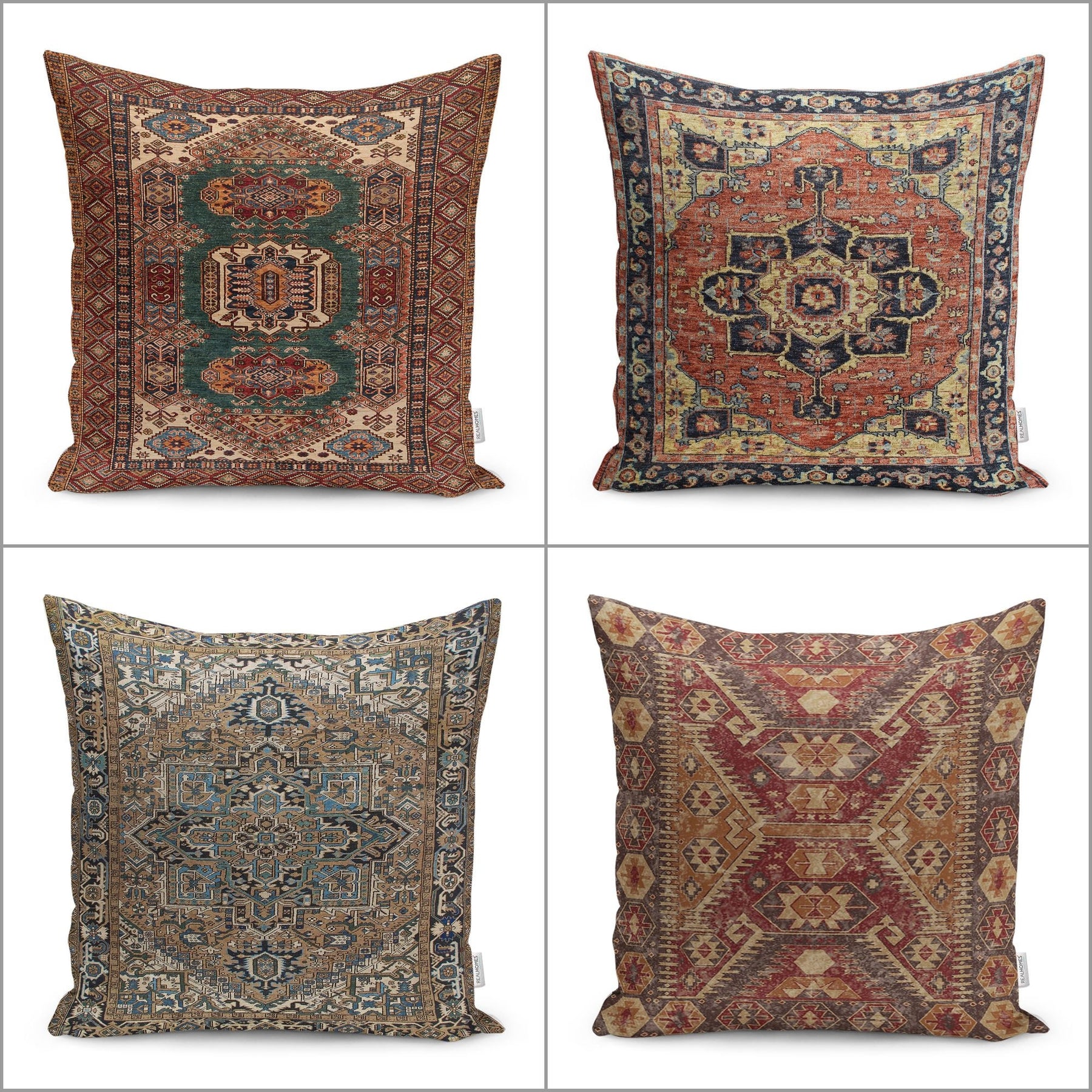 These elegant square decorative farmhouse throw pillow covers with Turkish Kilim Pattern;