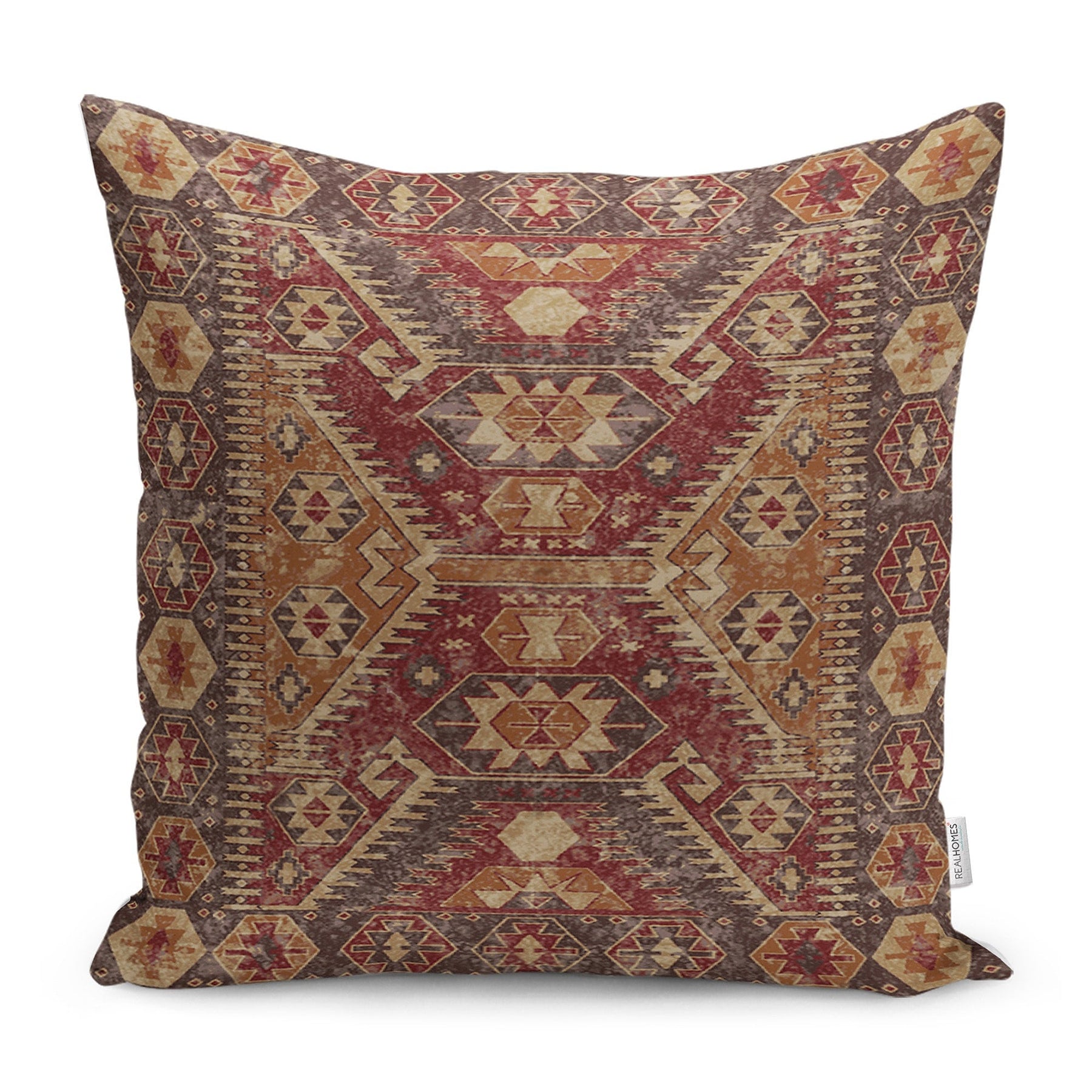Kilim Pattern Pillow Cover|Rug Design Cushion Case|Worn Looking Pillow Case|Ethnic Home Decor|Farmhouse Style Geometric Throw Pillowtop