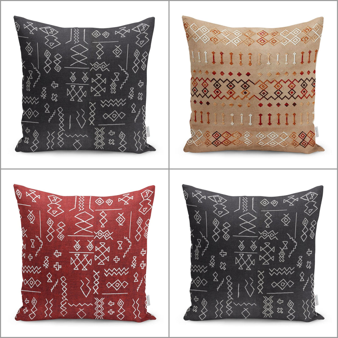 These elegant square decorative farmhouse throw pillow covers with Ethnic/Tribal/Geometric Pattern;