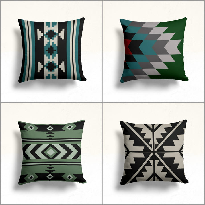 These elegant square decorative farmhouse throw pillow covers with geometric Aztec print;