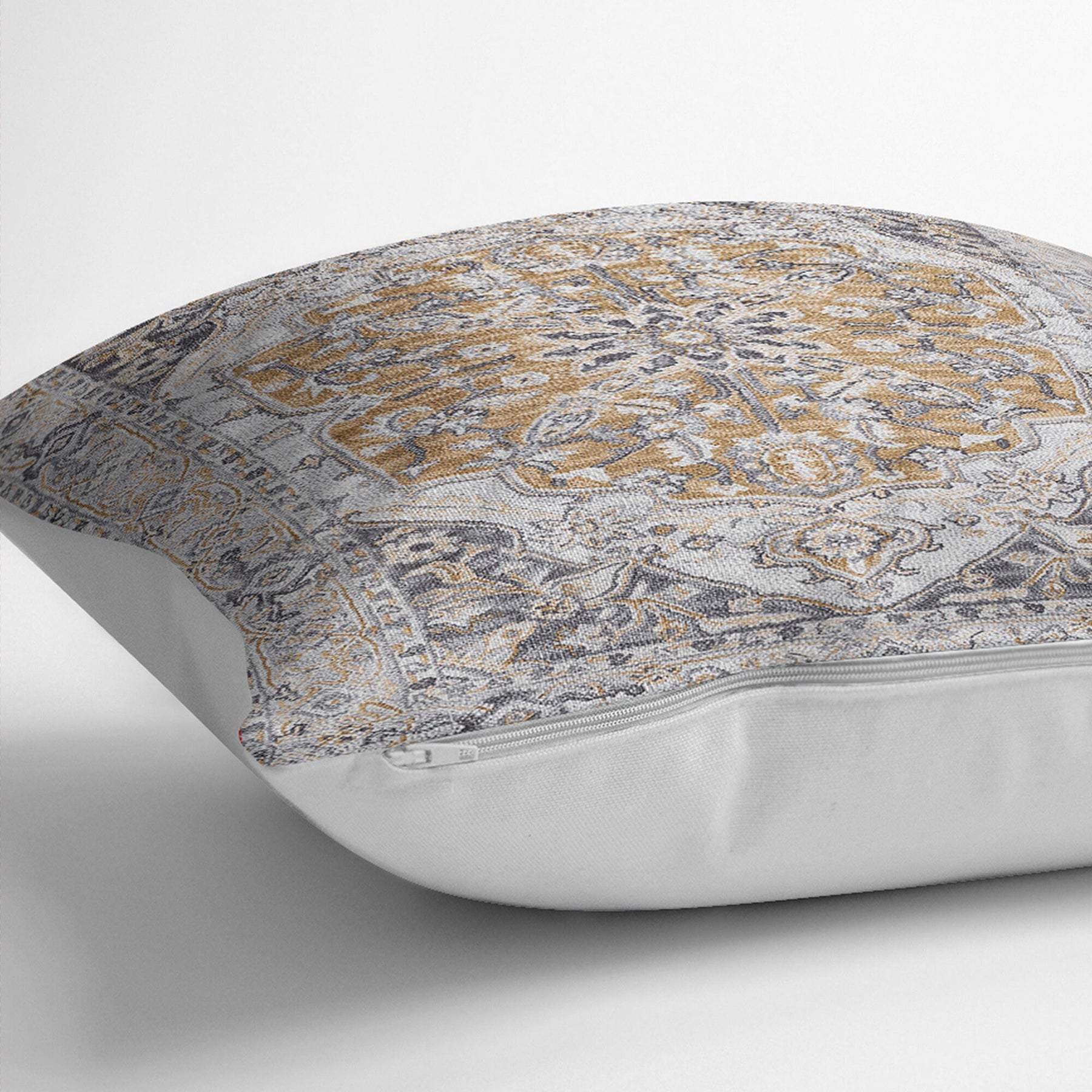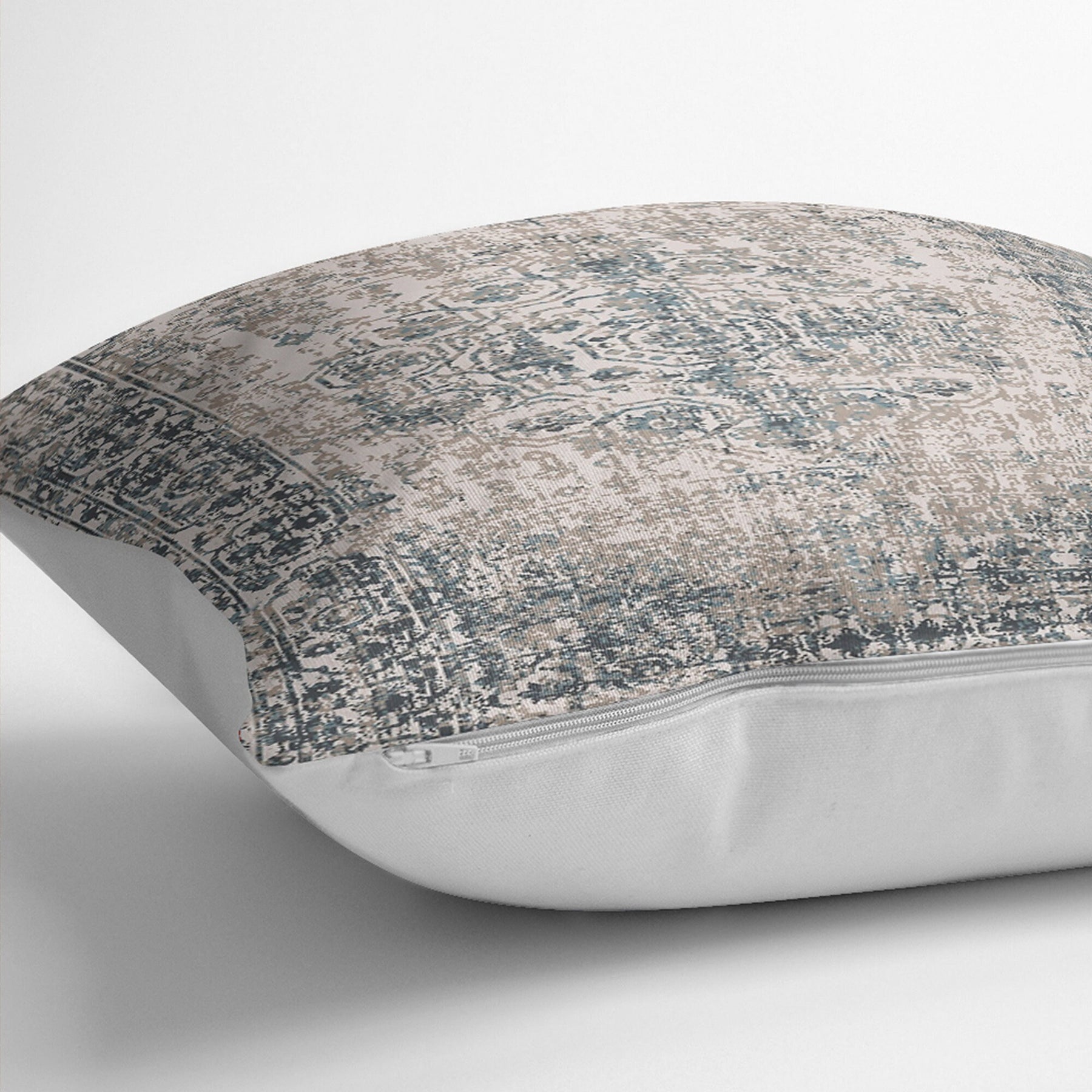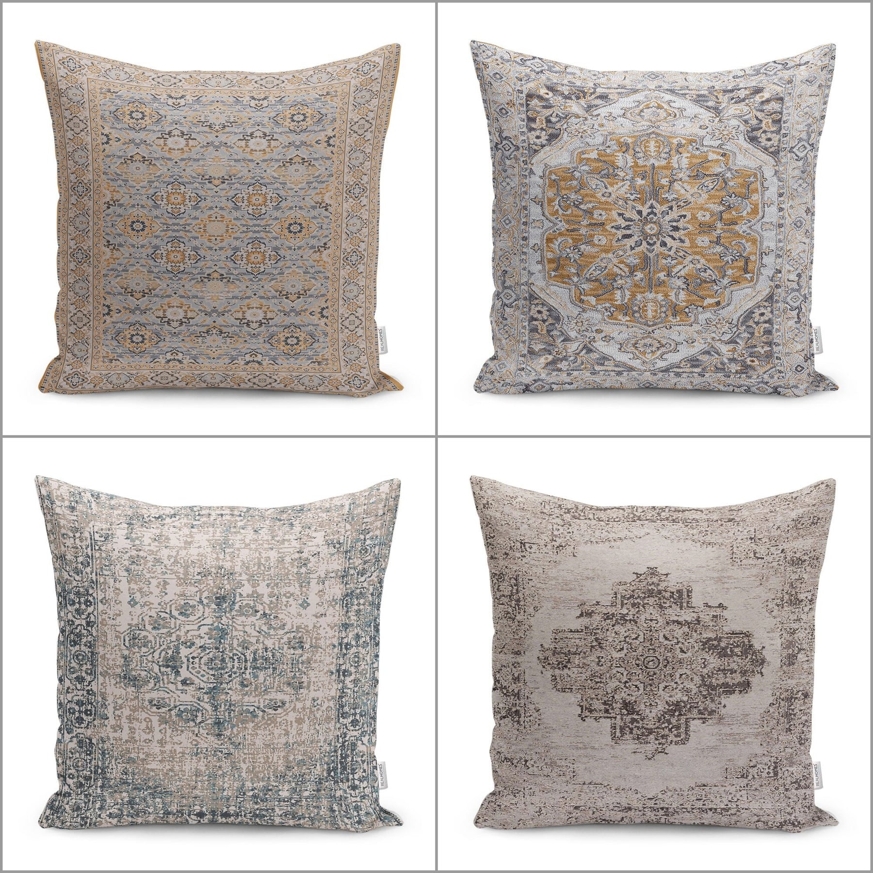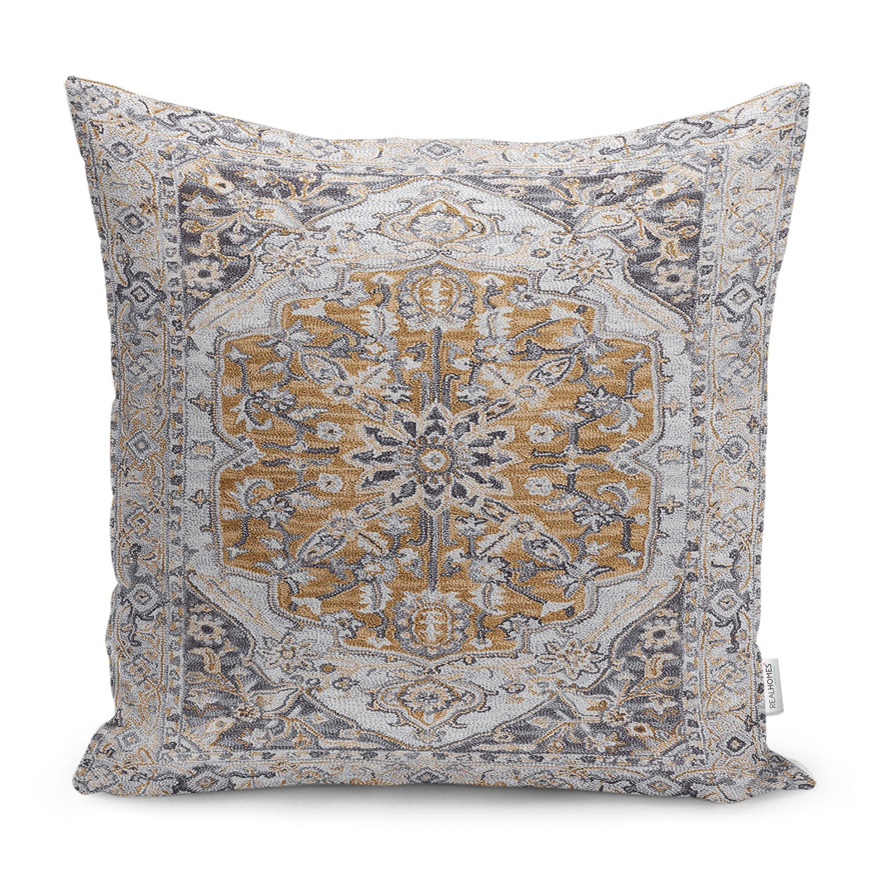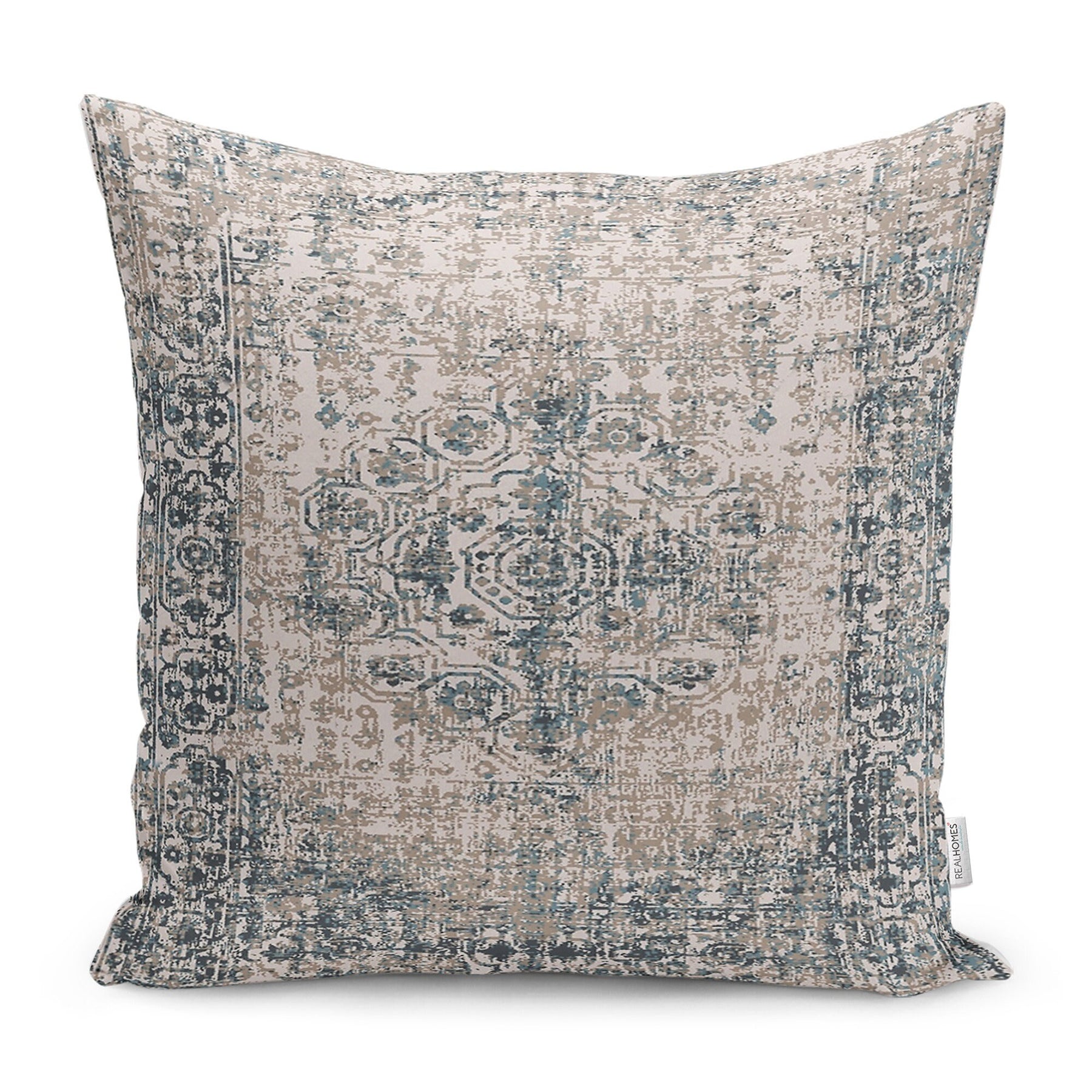 These elegant square decorative farmhouse throw pillow covers with Worn Looking Turkish Kilim Pattern;