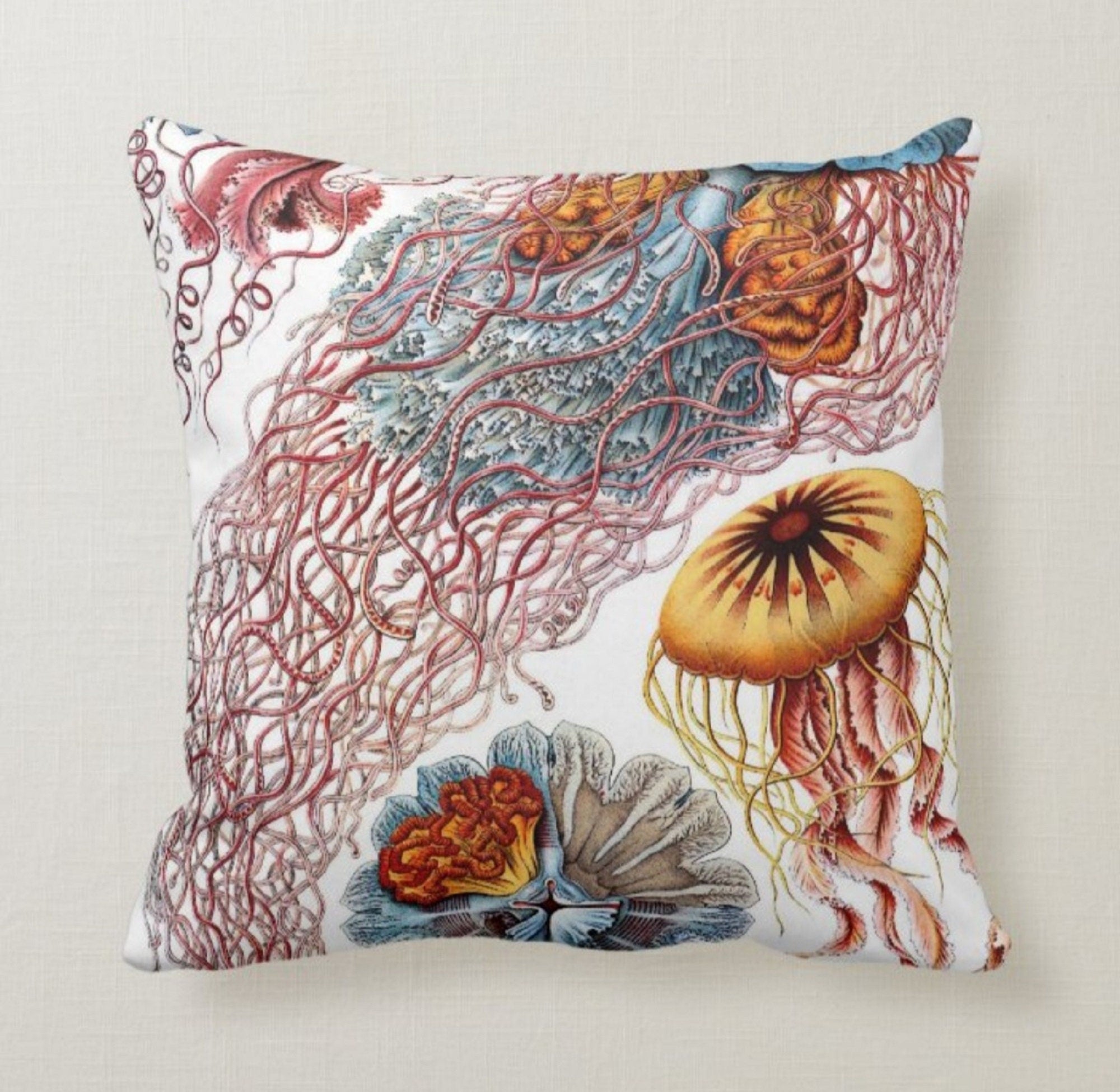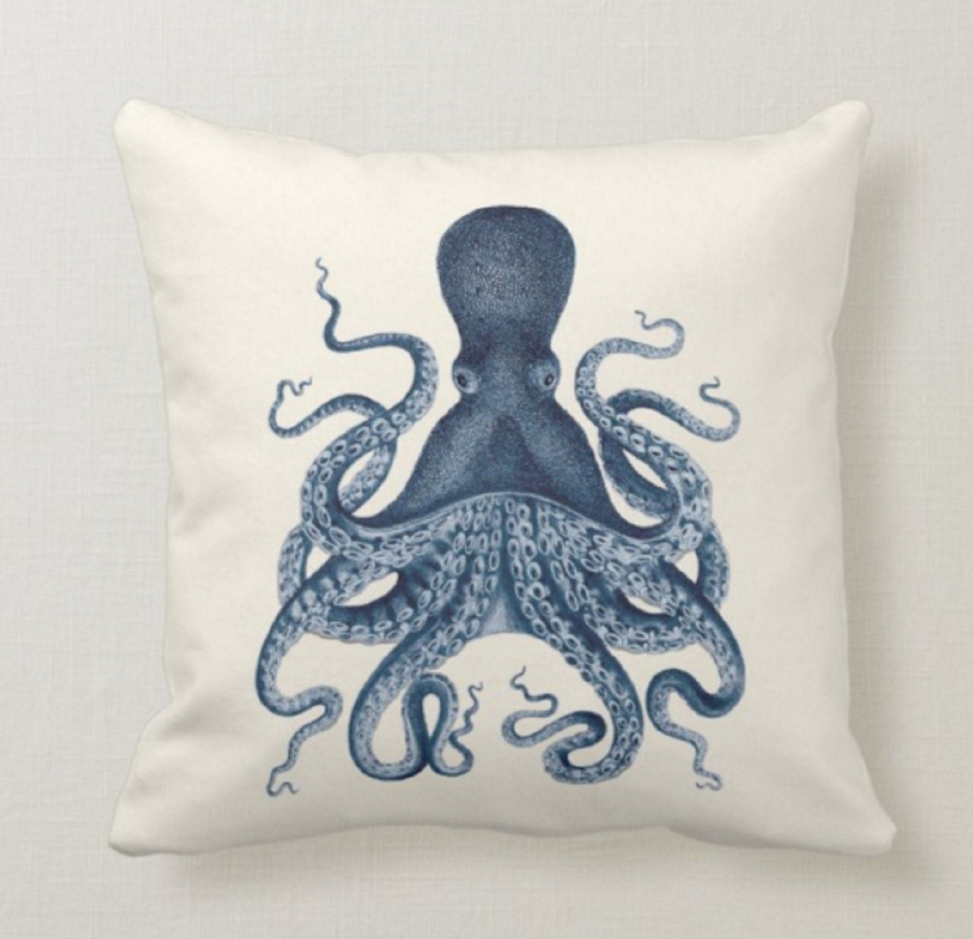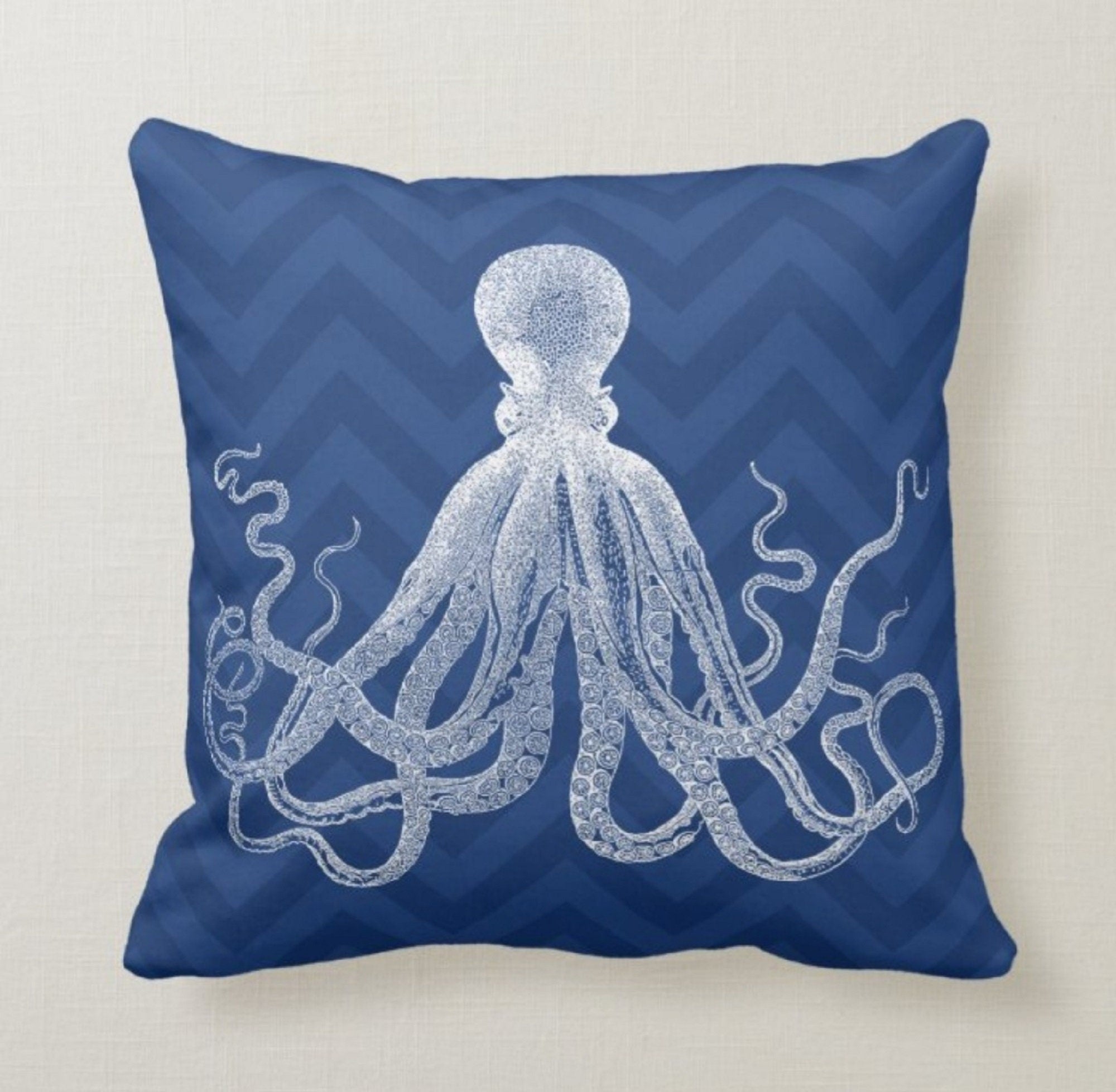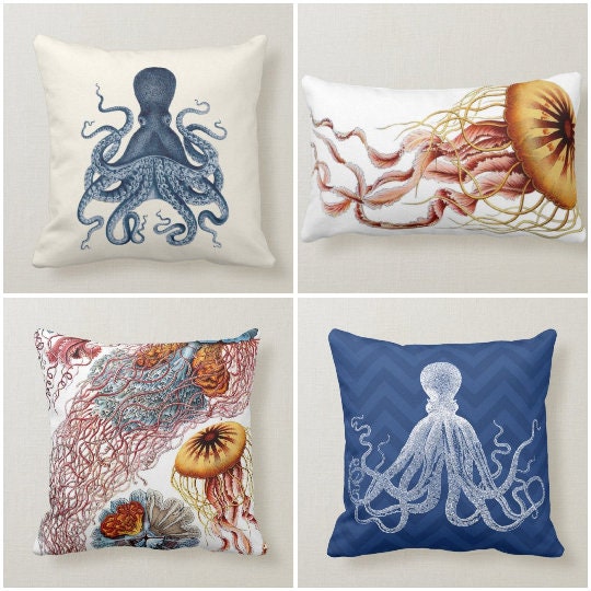These square and rectangle decorative beach house throw/lumbar pillow covers with octopus and coral;