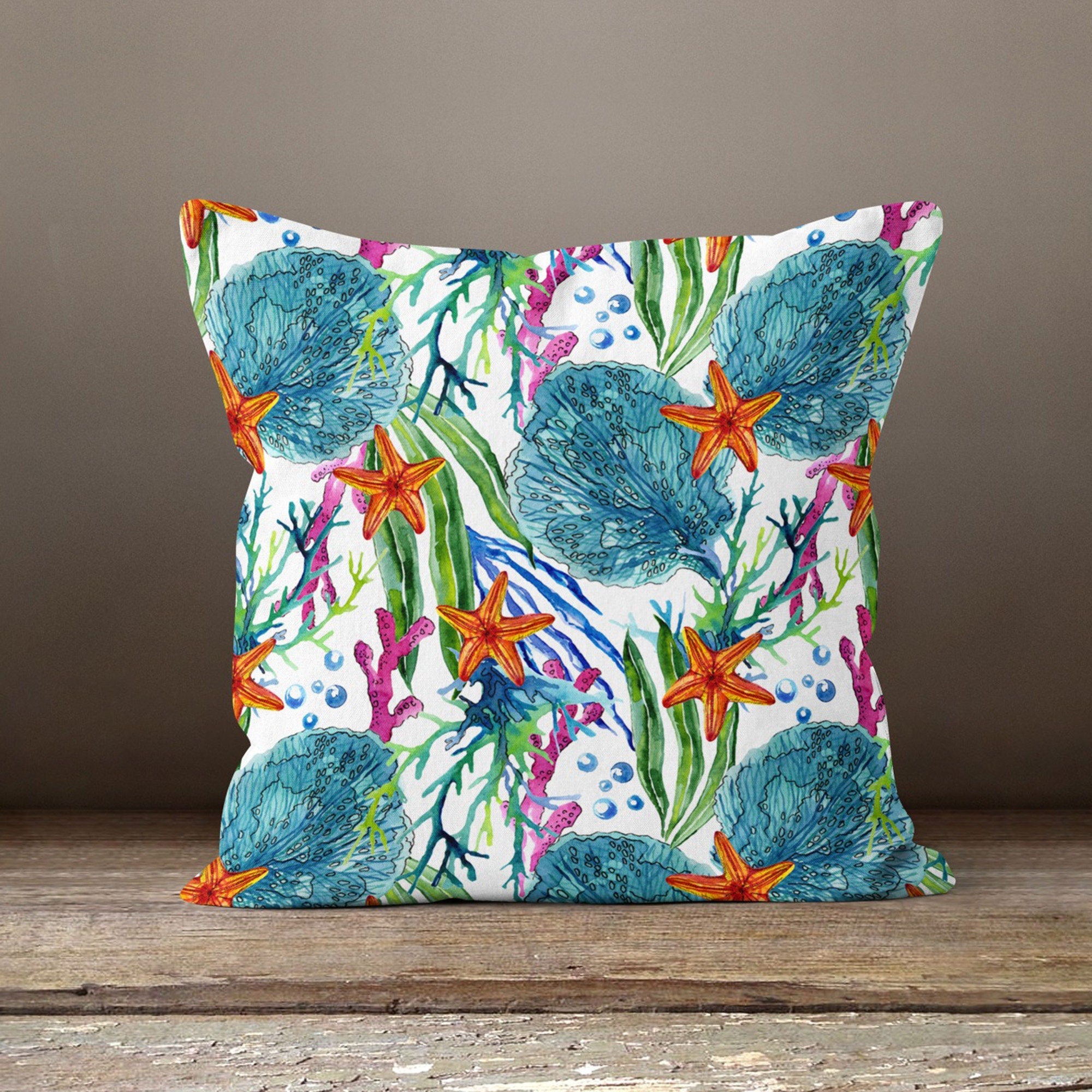 Sea Turtle, Starfish and Fish Print Cushion Cover
