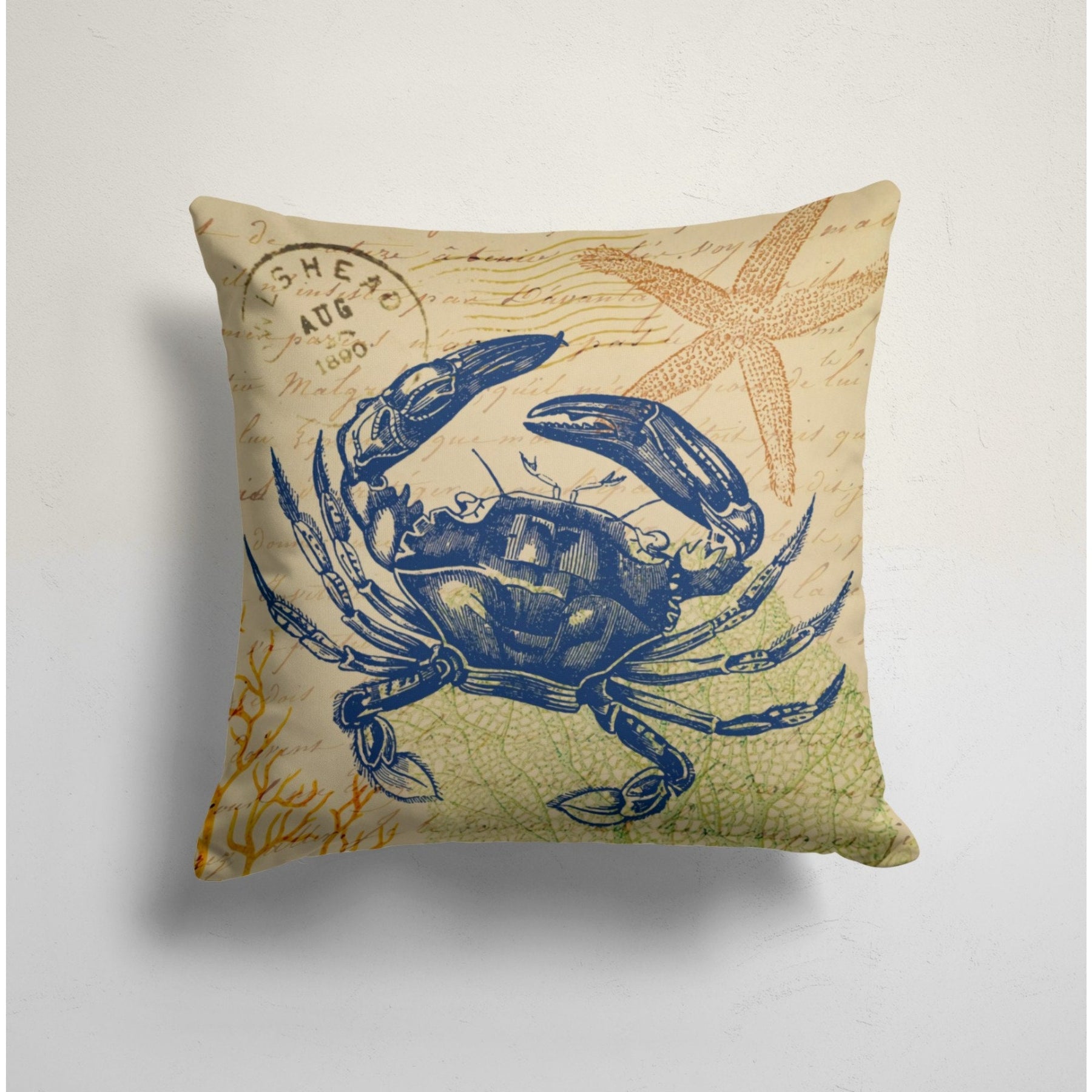Beach House Pillow Case with Octopus, Crab and Starfish