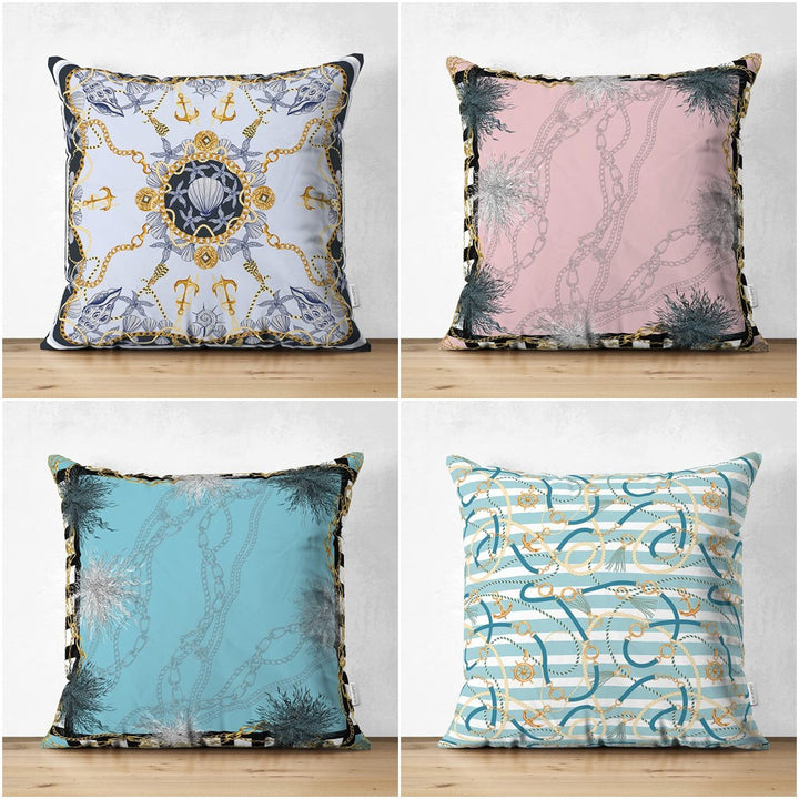 These elegant stylish and high quality suede square throw cushion covers with Anchor and Chain Print;