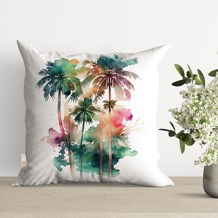 These elegant square decorative farmhouse throw pillow covers with Palm Trees , Tropical Plants print;