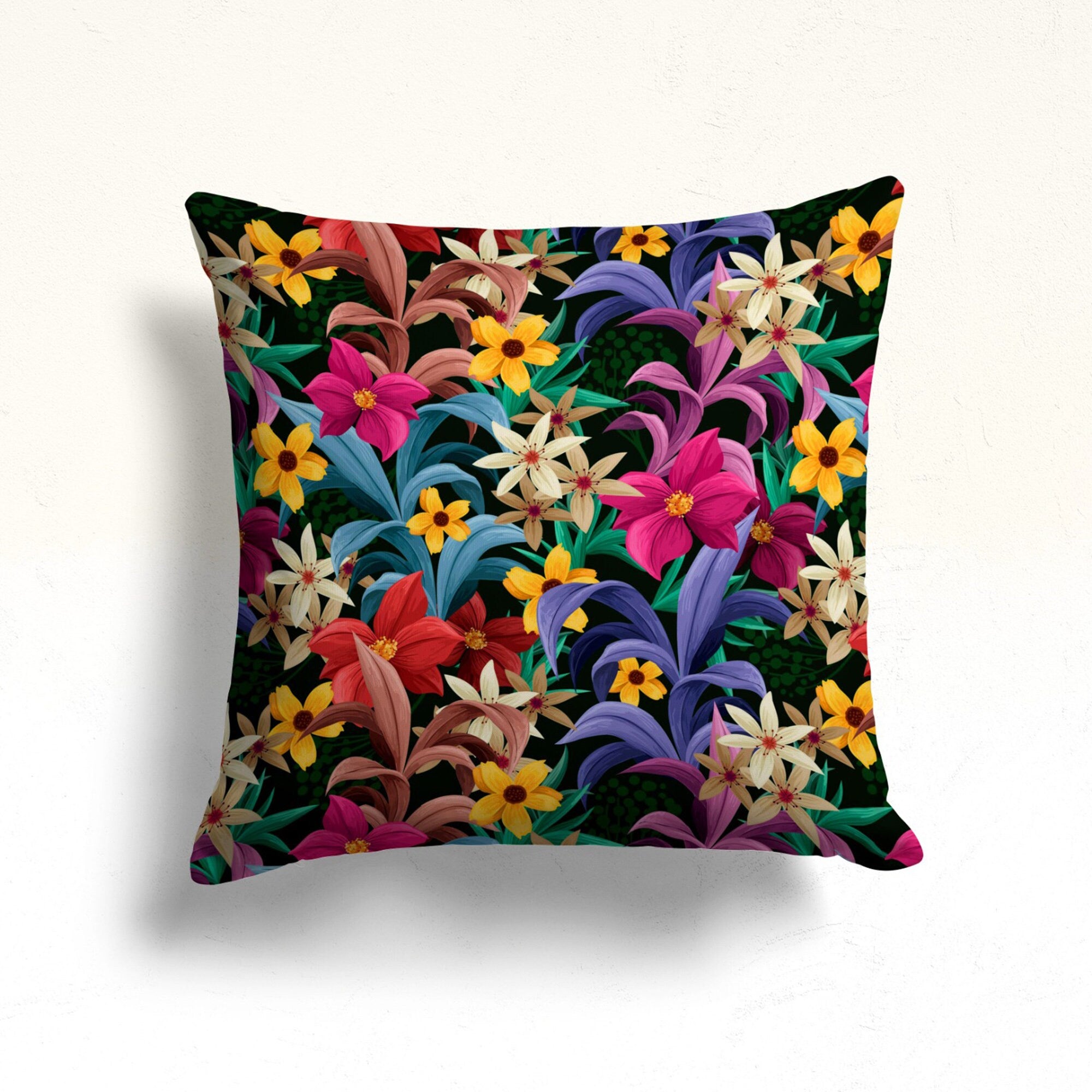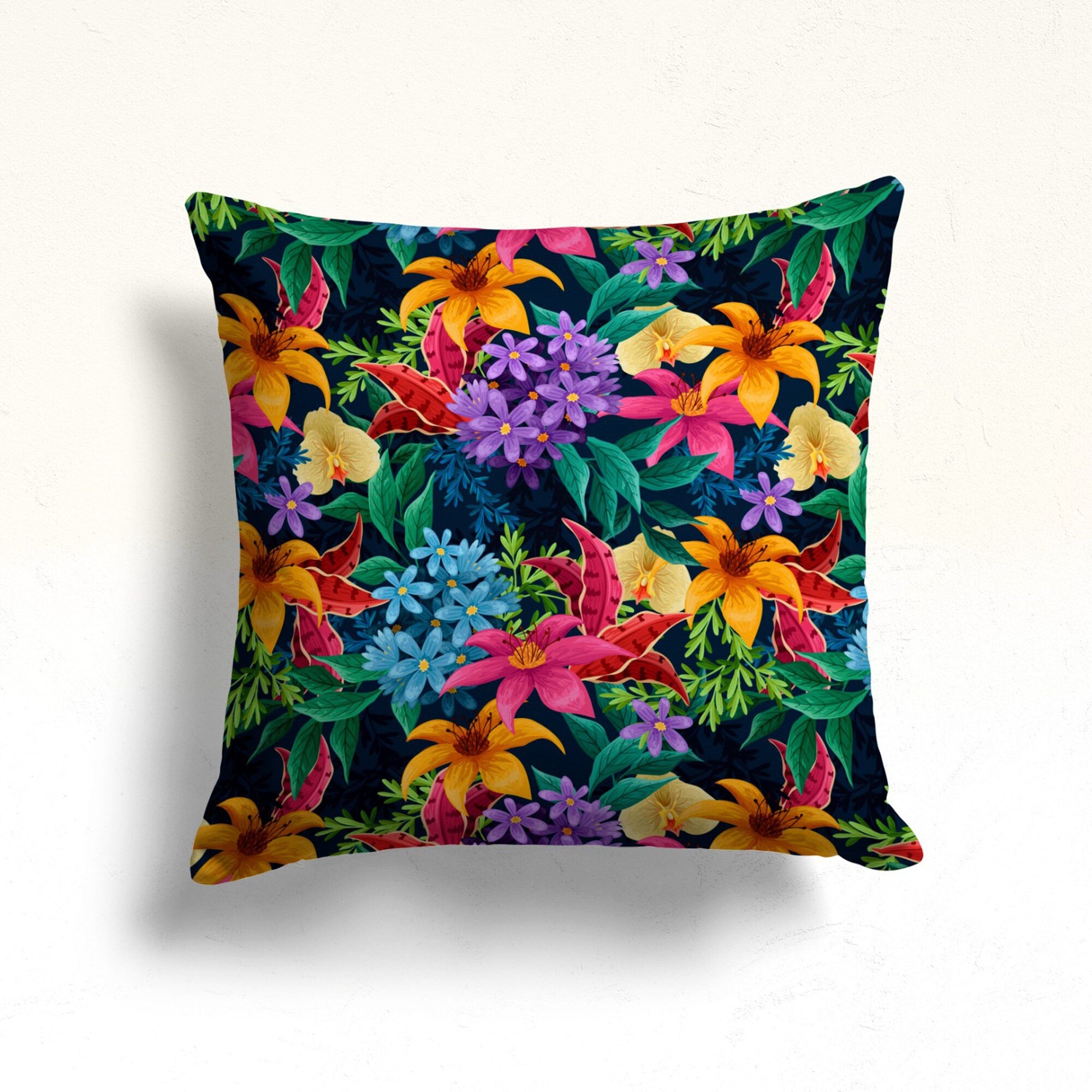 These elegant square decorative farmhouse throw pillow tops/covers Tropical flowers;