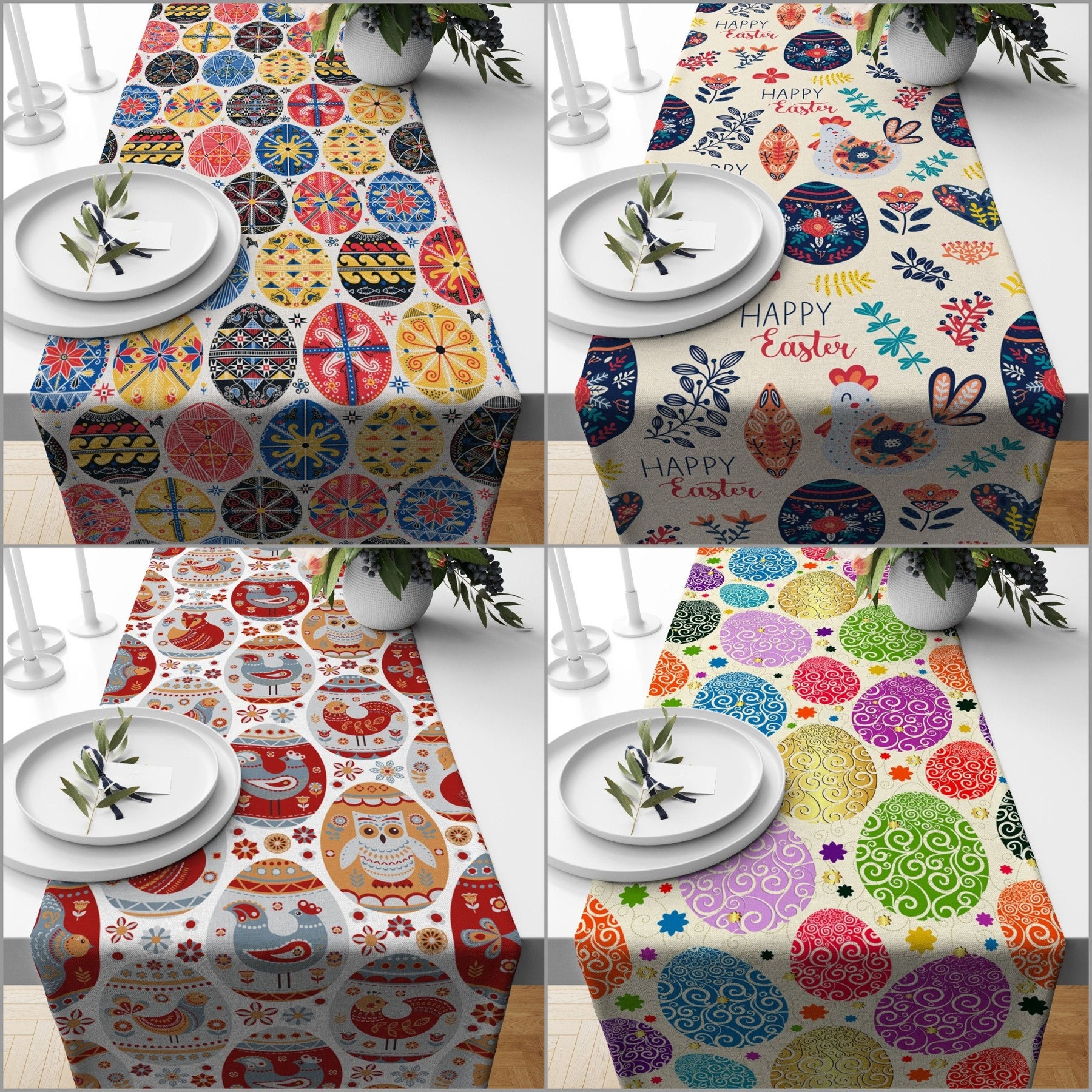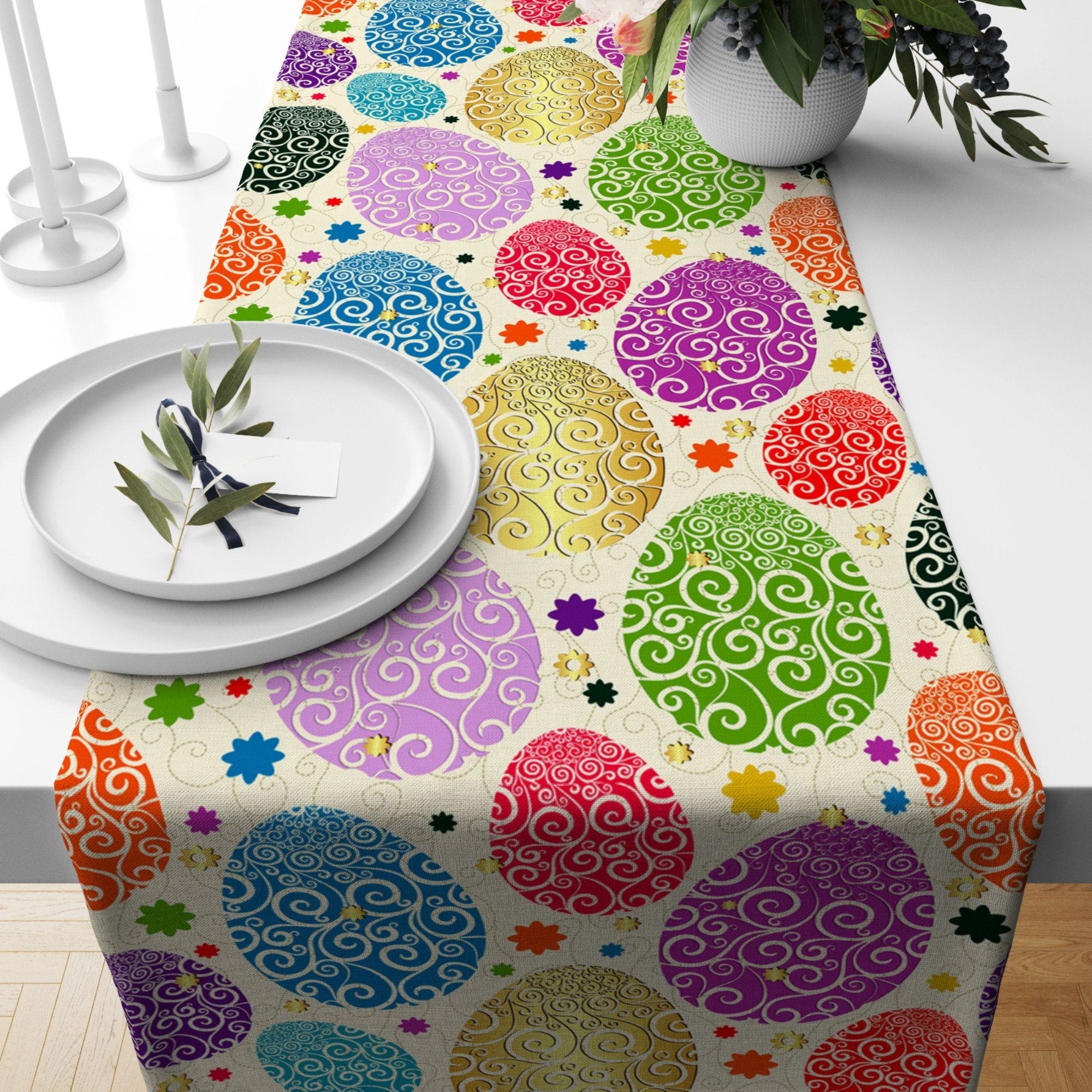 Happy Easter Table Runner with Colorful Egg Print