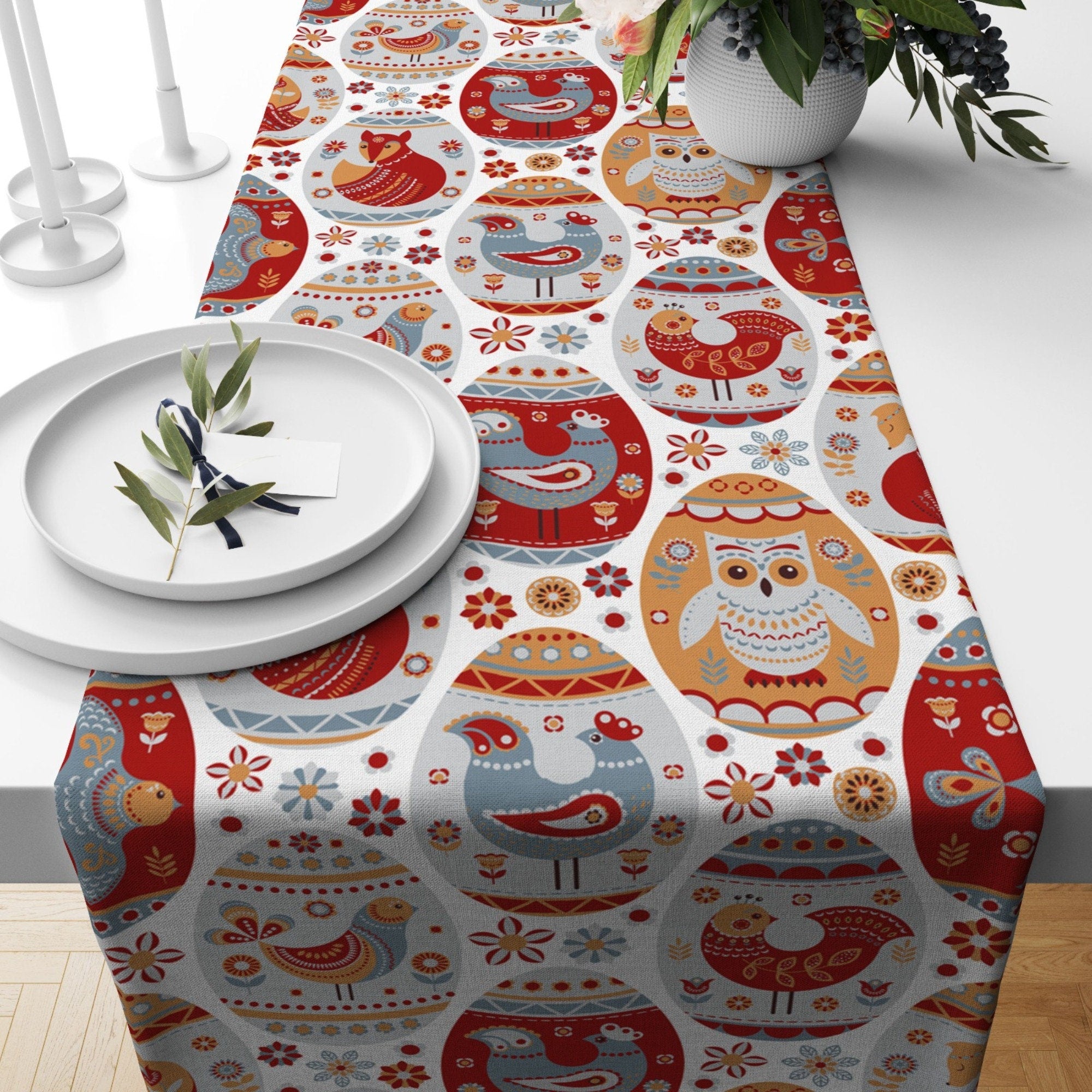 Easter Table Runner|Happy Easter Kitchen Decor|Decorative Colorful Egg Print Tablecloth|Animal Patterned Egg Holiday Decor|Spring Tablecloth