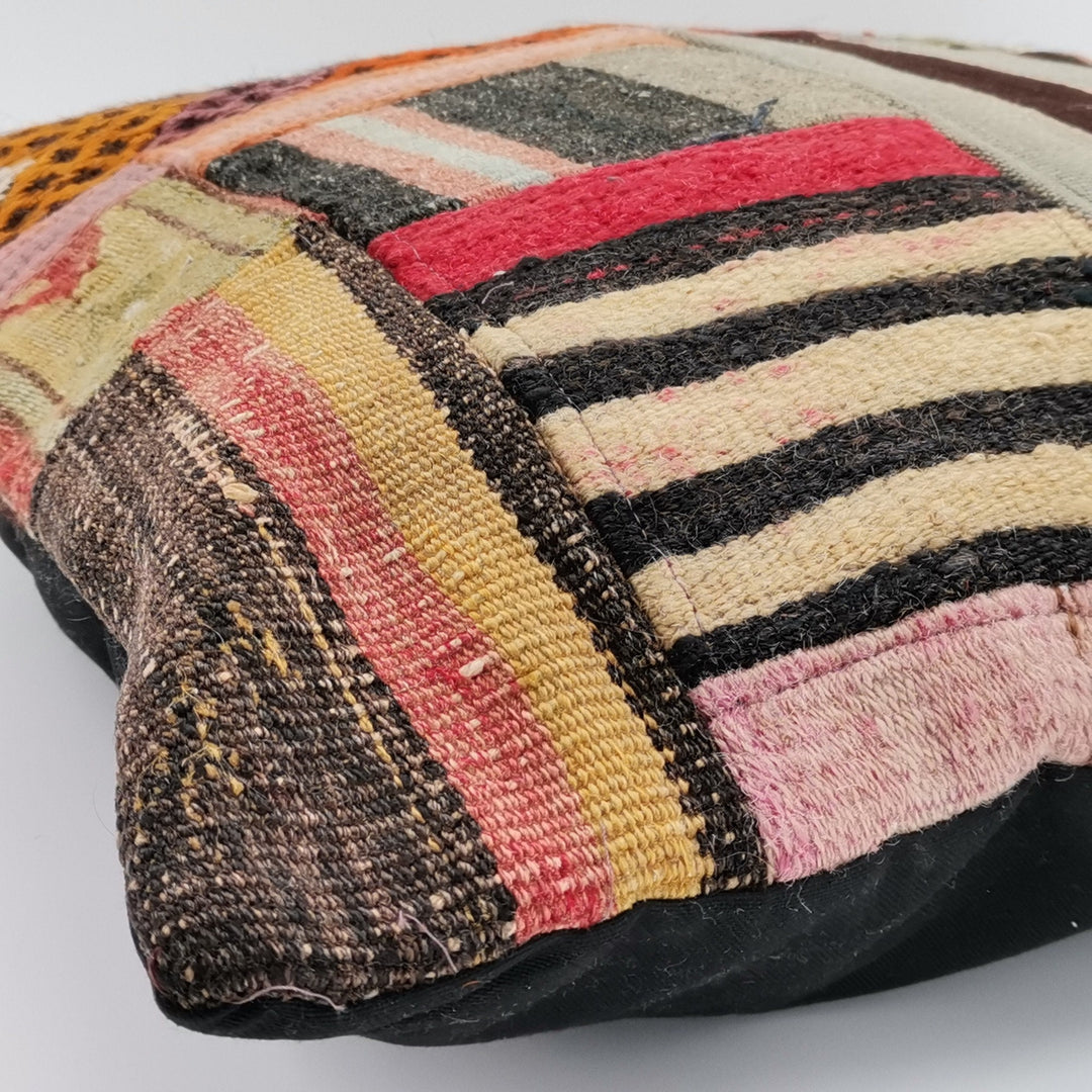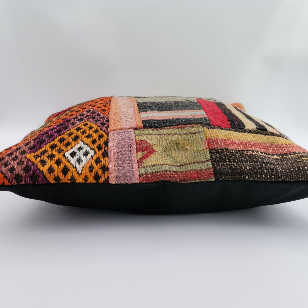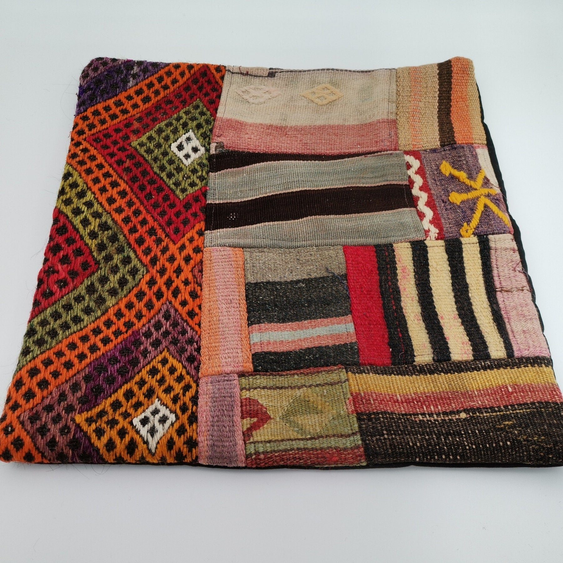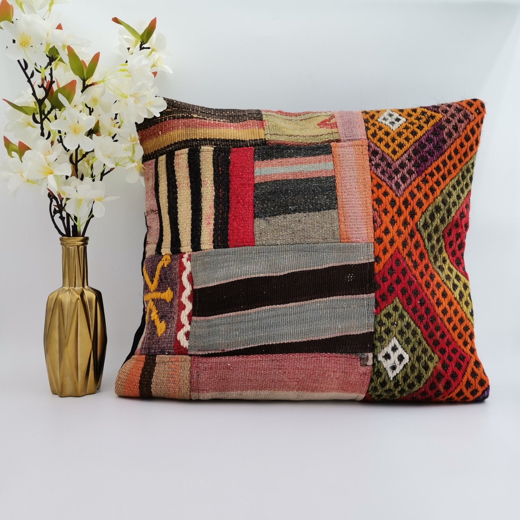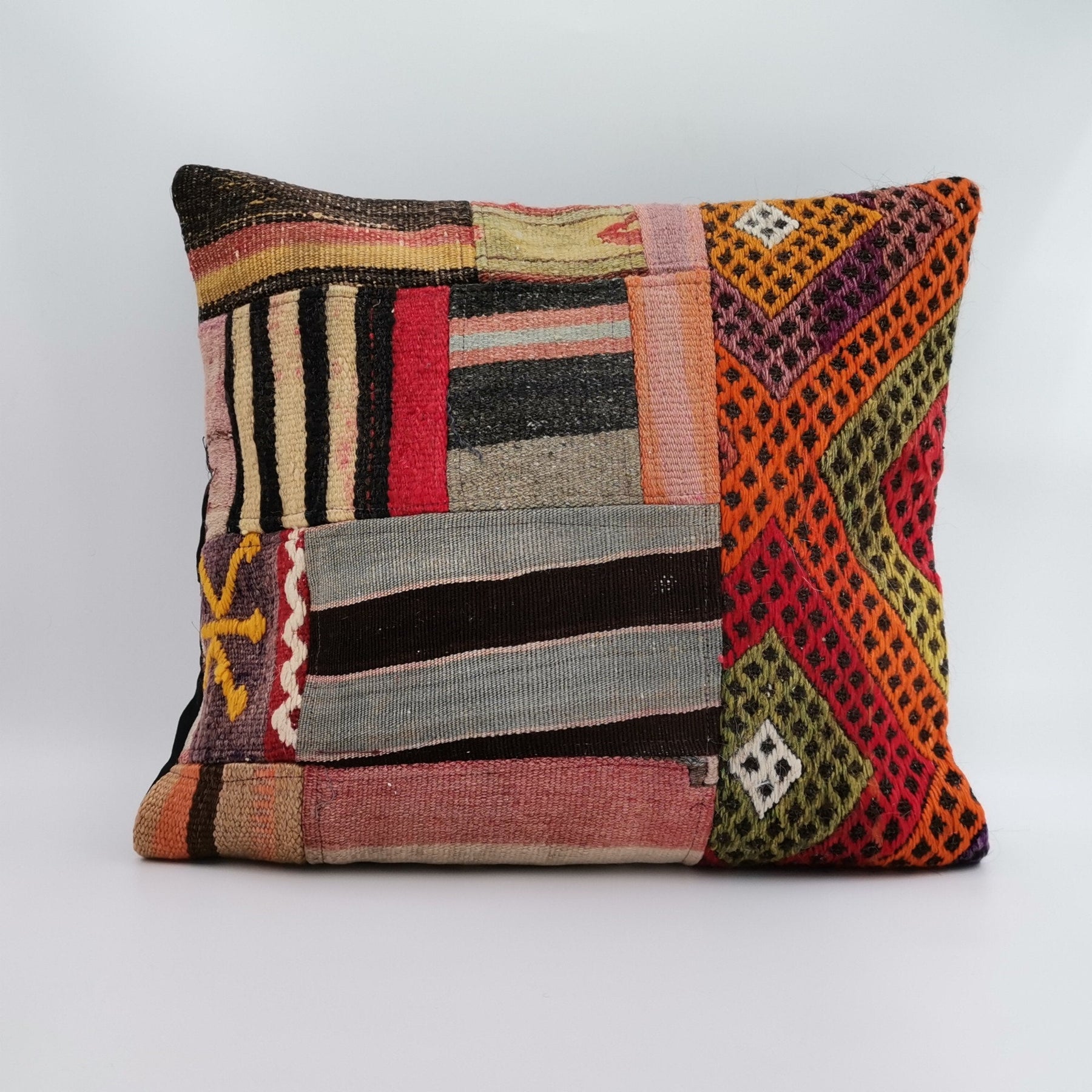 Vintage Kilim Pillow Cover|Anatolian Pillow with Diamond Pattern|Turkish Kelim Cushion|Patchwork Kilim Decor|Handwoven Rug Cushion 20x20