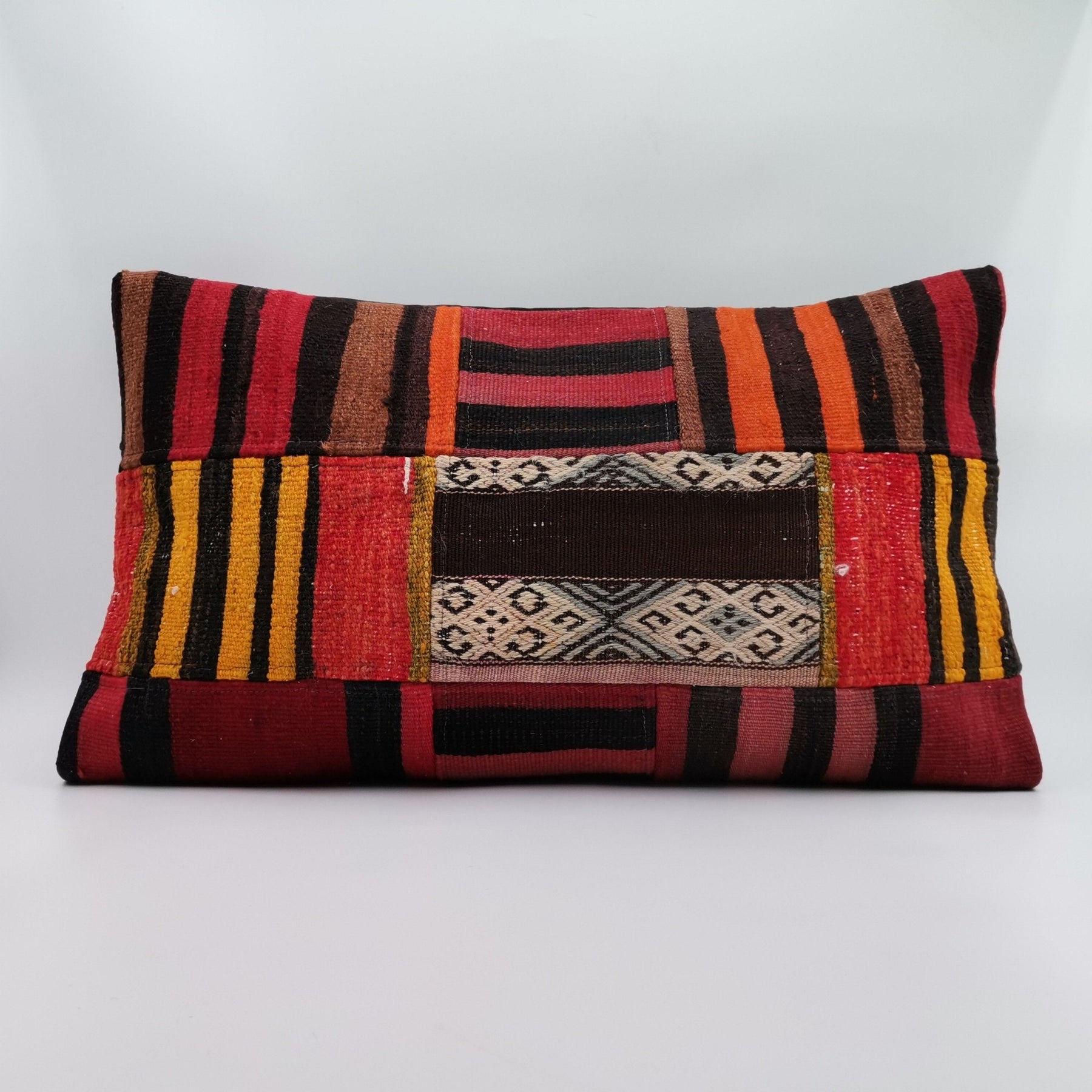 Handwoven Patchwork Style Vintage Kilim Cushion Cover 16x24