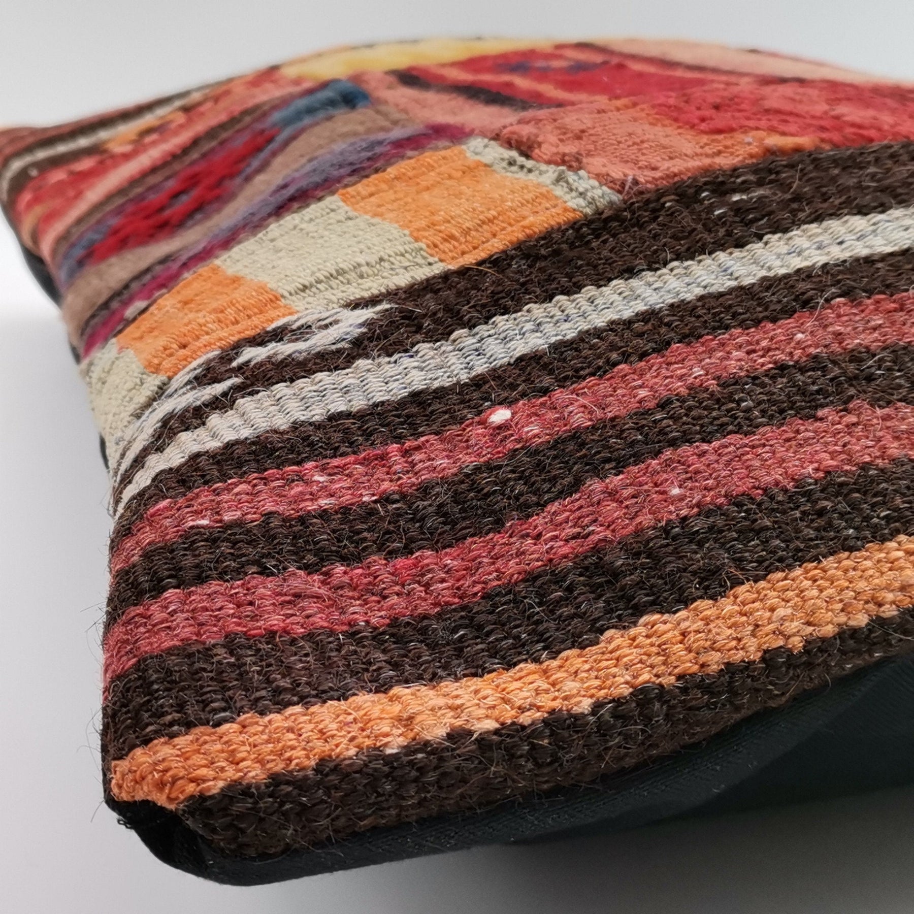 Vintage Kilim Pillow Cover|Ottoman Kilim Decor|Antique Farmhouse Lumbar Pillow Top|Handwoven Patchwork Rug Cushion|Cozy Home Decor 16x24