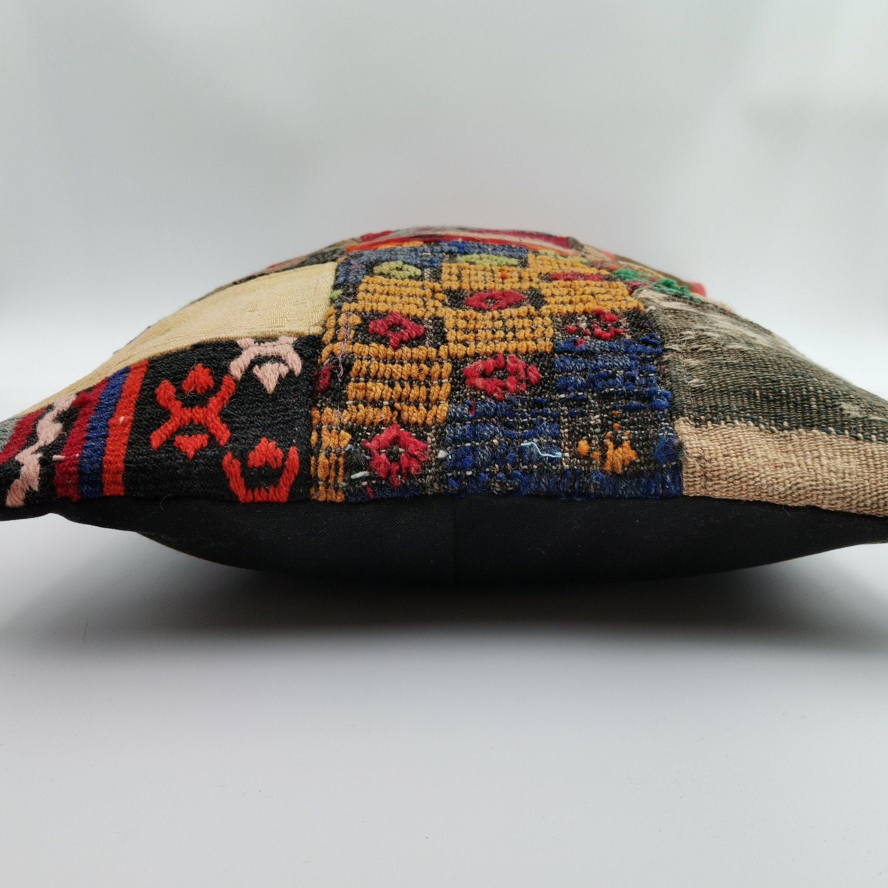 Vintage Kilim Pillow Cover|Ottoman Kilim Decor|Antique Farmhouse Lumbar Pillow Top|Boho Bedding Decor|Handwoven Patchwork Rug Cushion 16x24