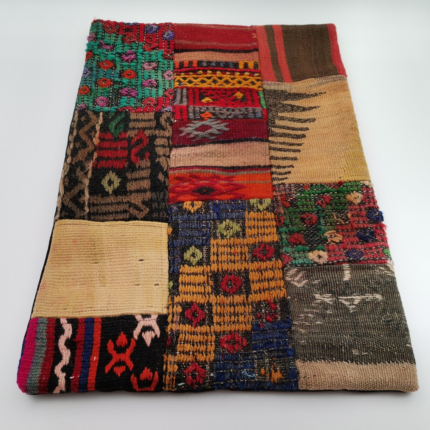 Handwoven Patchwork Rug Cushion Cover 16x24