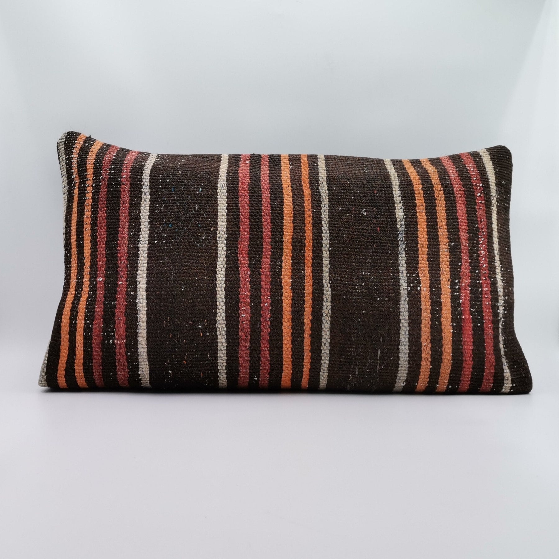 This handmade elegant rectangle Turkish kilim lumbar pillow cover;