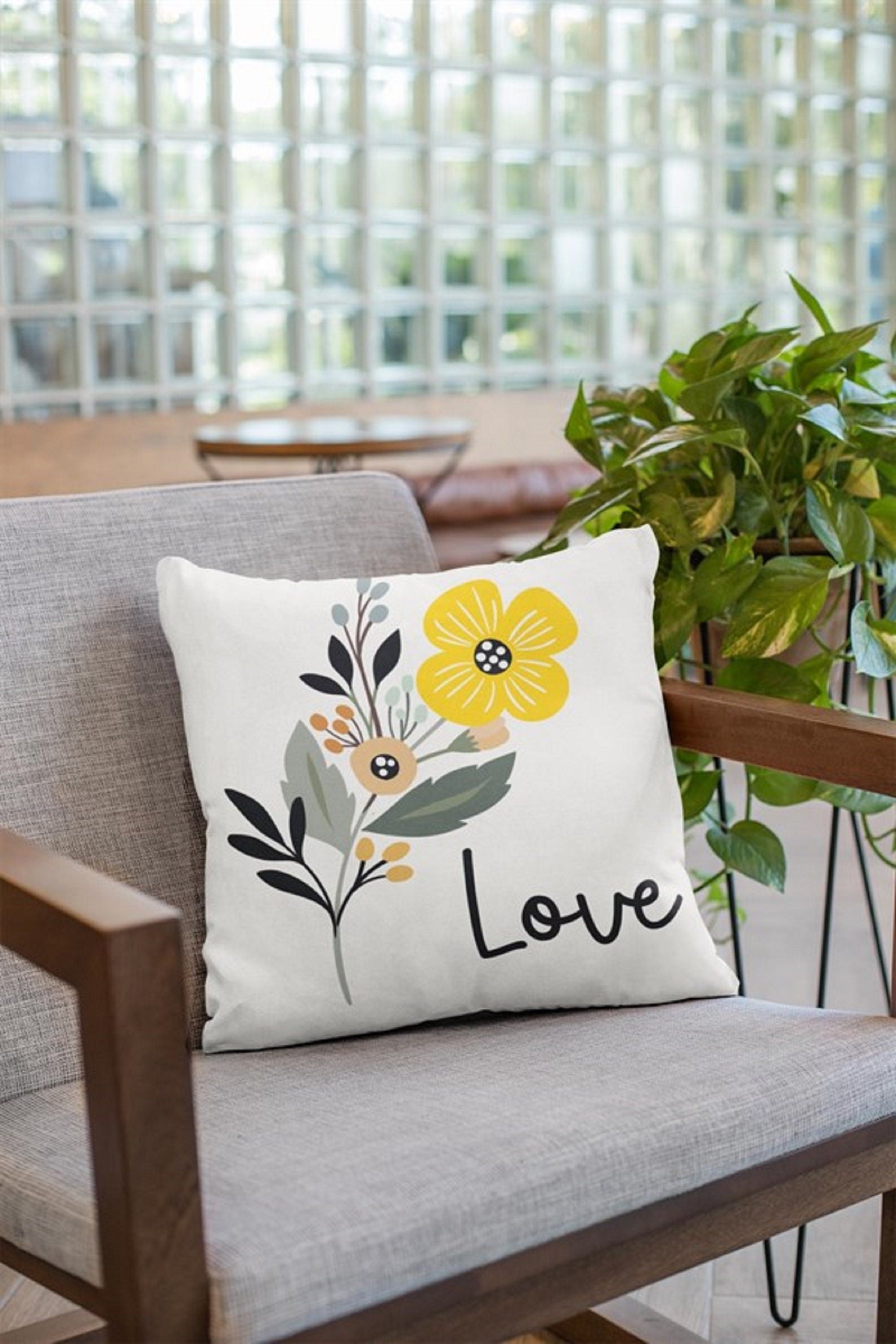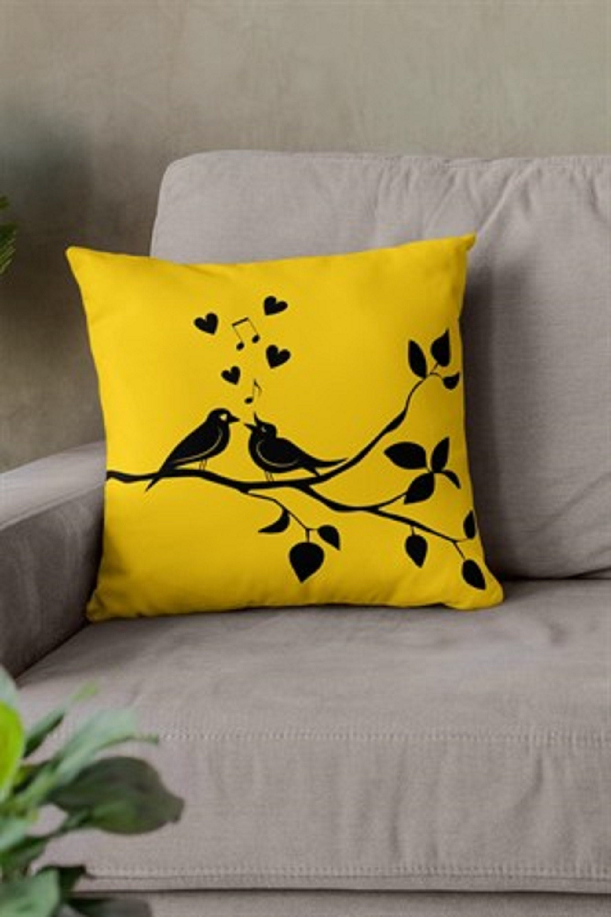 Love Collection Throw Pillow Covers|Yellow Singing Bird Cushion Case|Valentine's Day Pillow Sham|Romantic Gift for Wife|Yellow Flower Decor