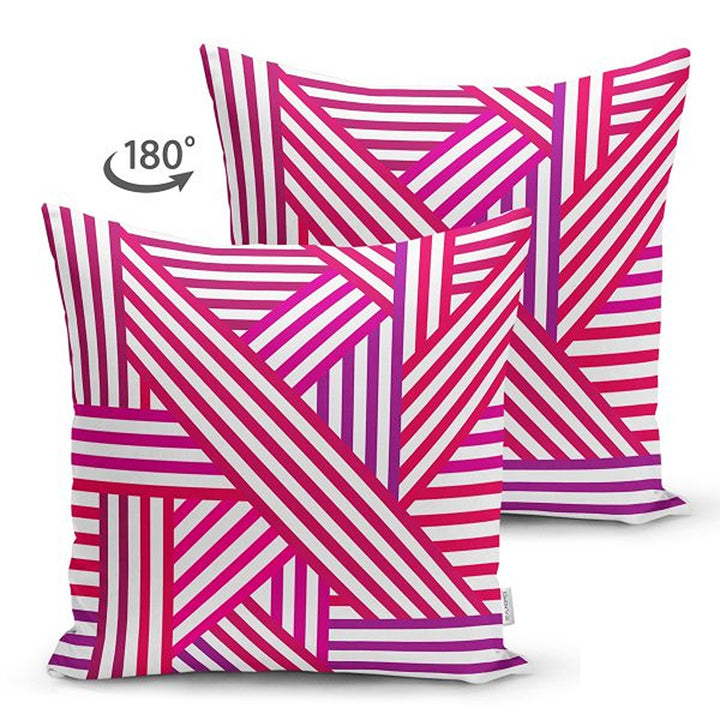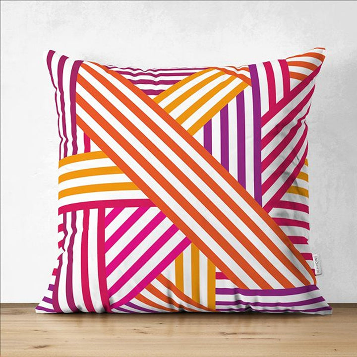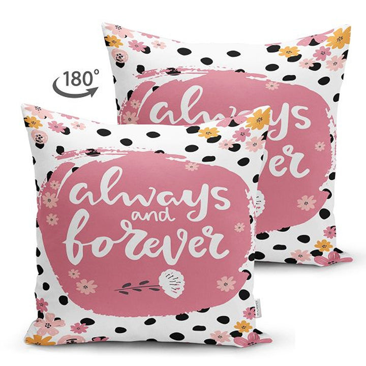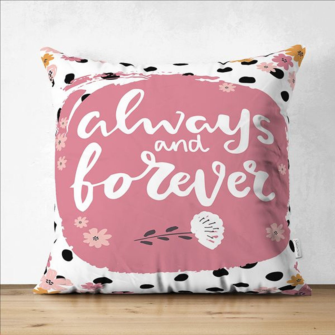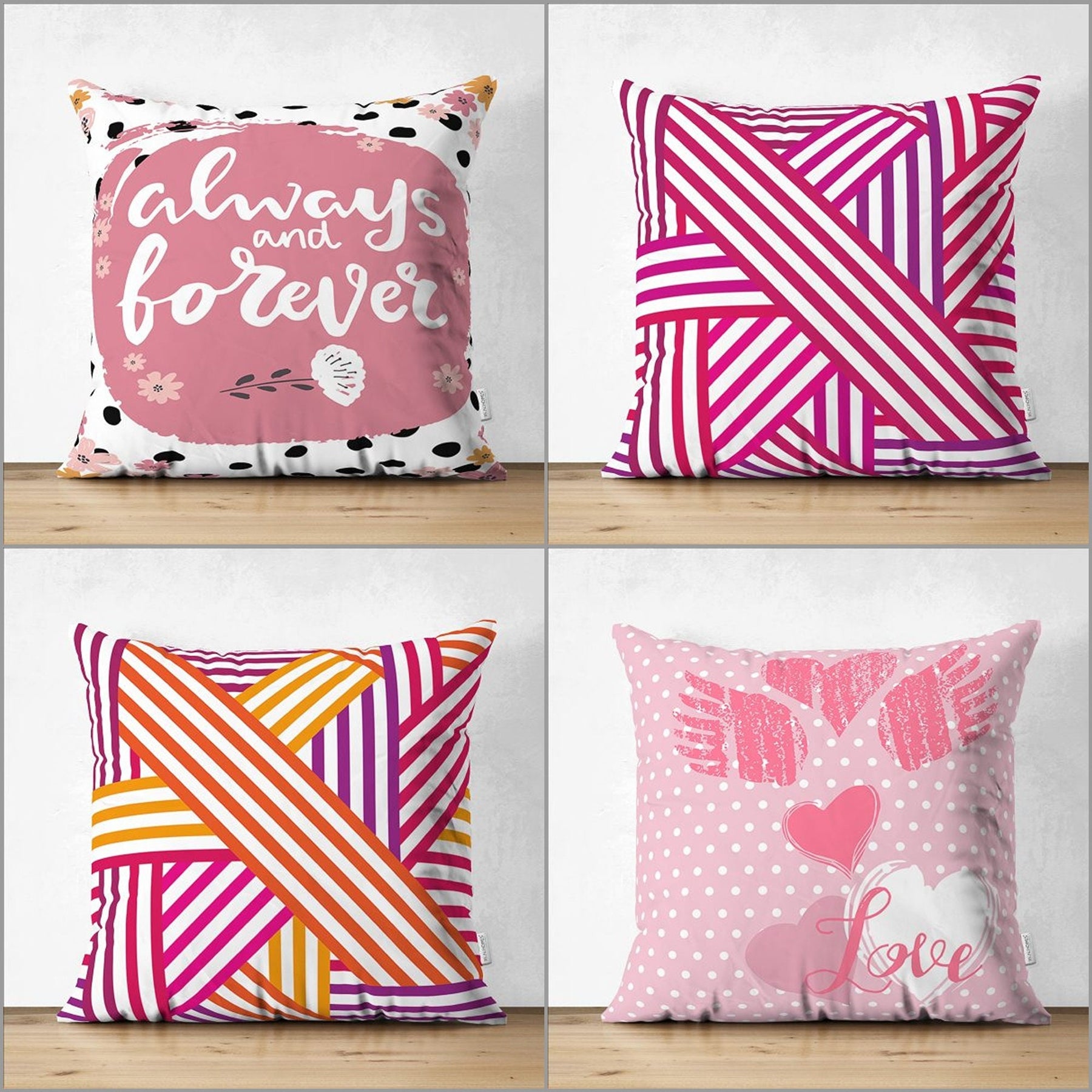 These elegant square decorative pillow covers with Always and Forever, Love prints and abstract striped design;