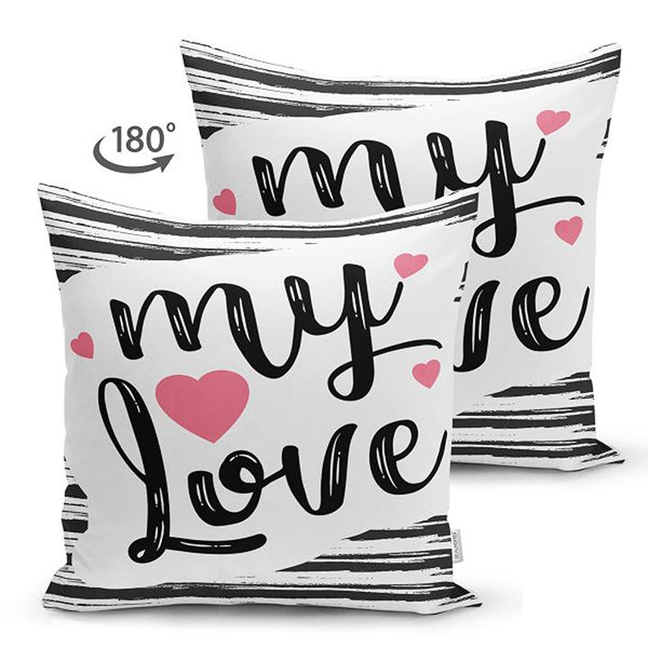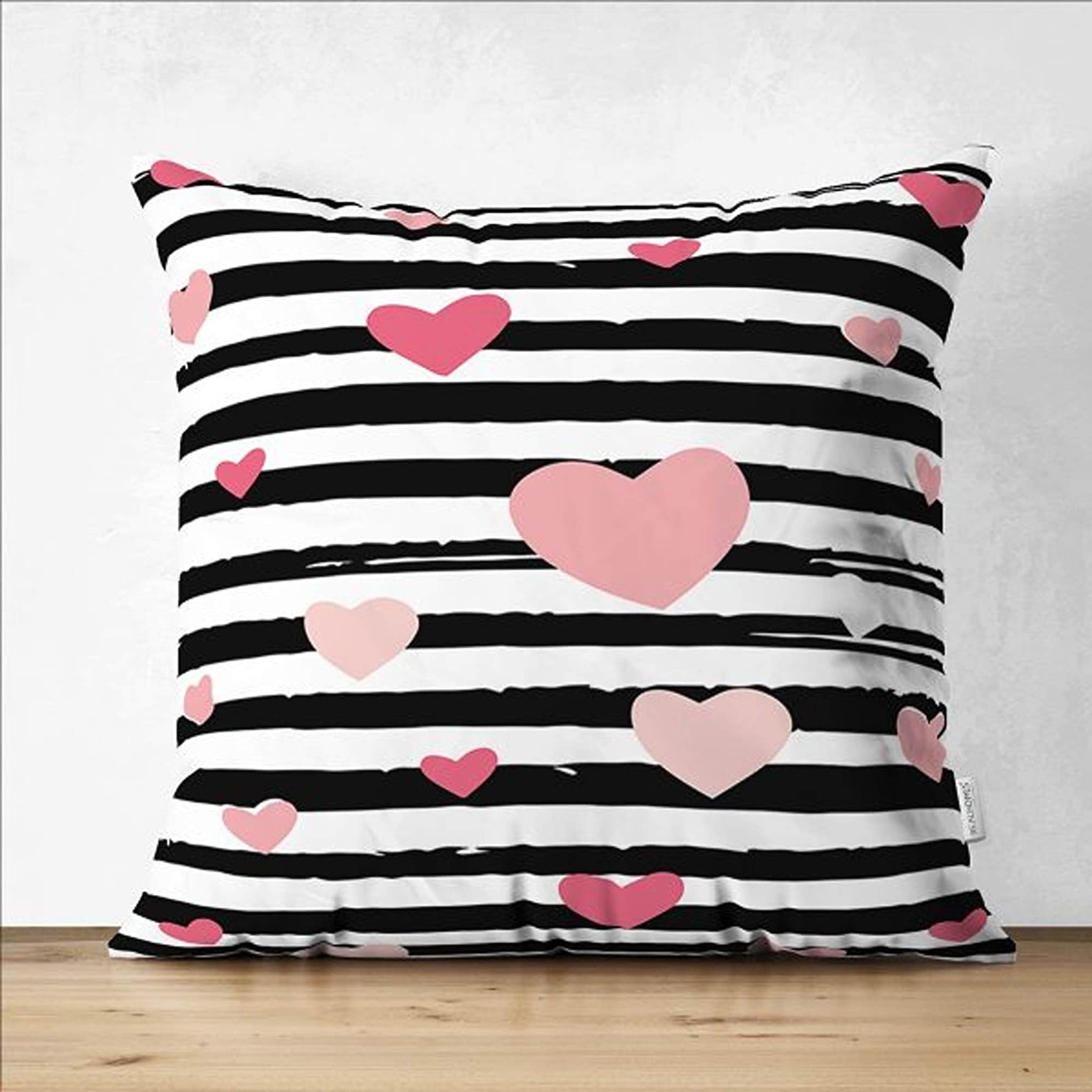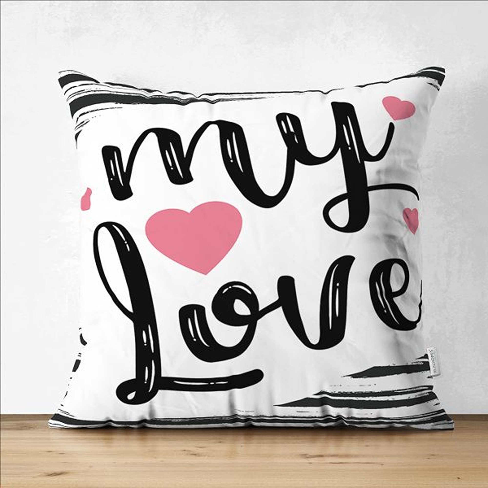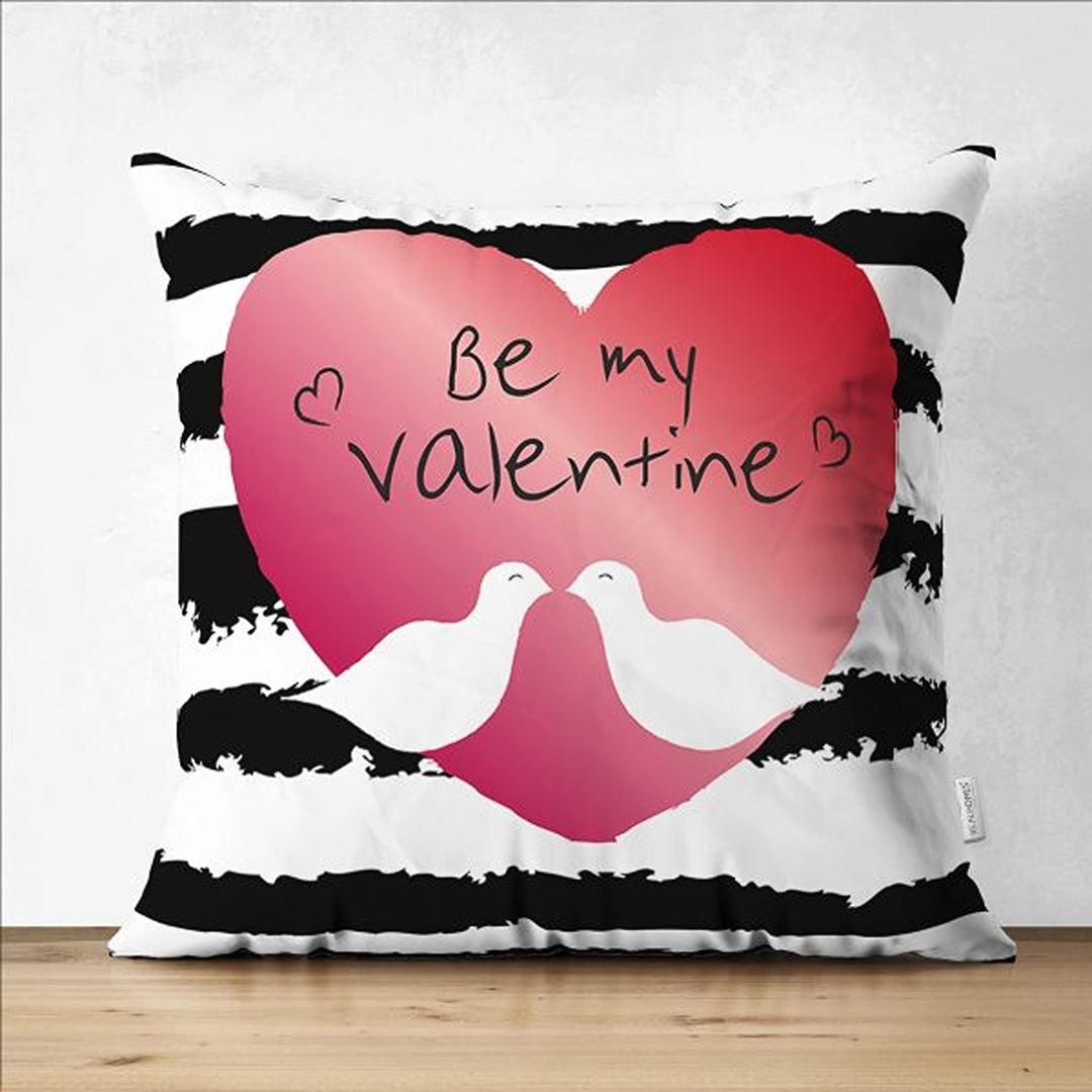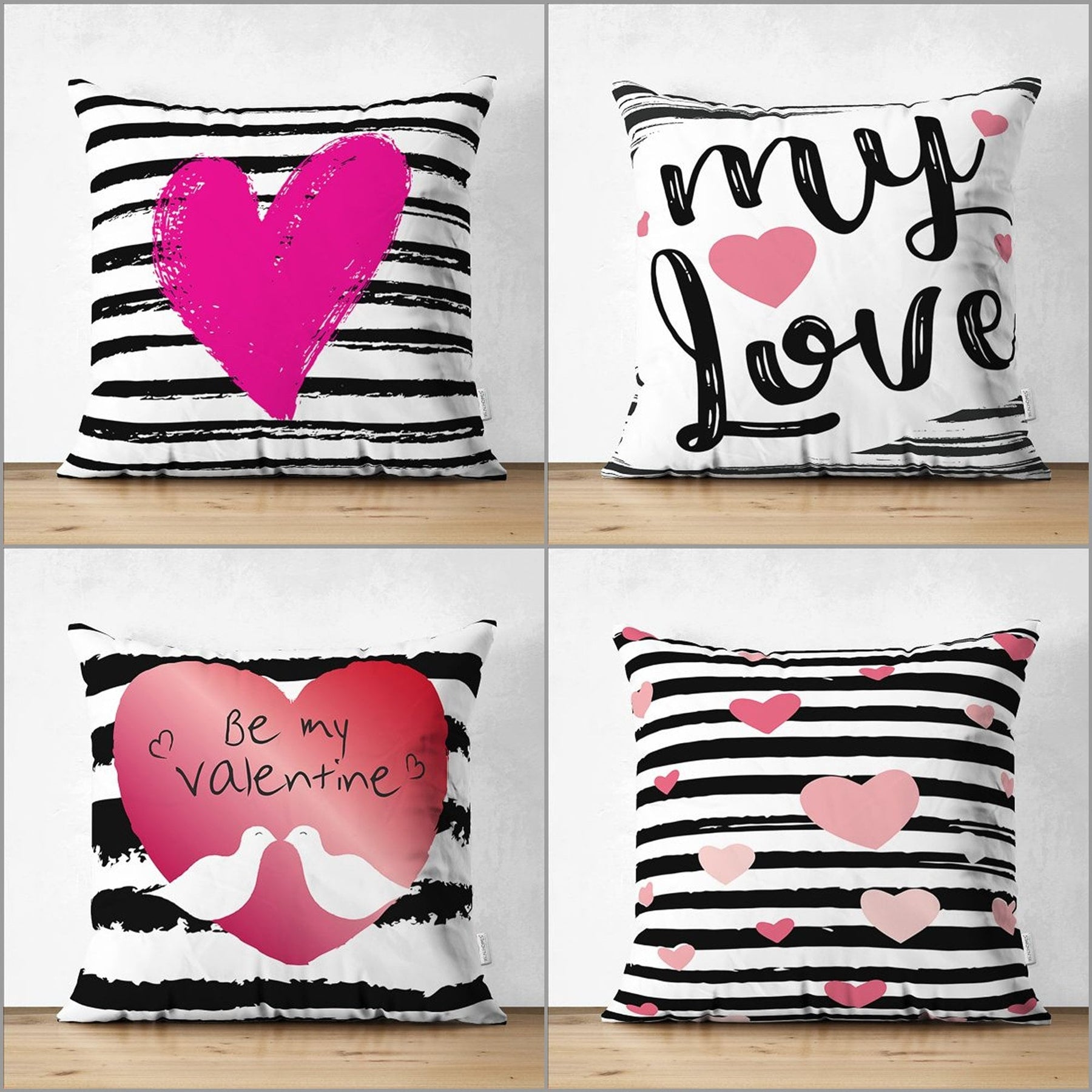 These elegant square decorative pillow covers with My Love, Heart, Be My Valentine's prints and stripes;