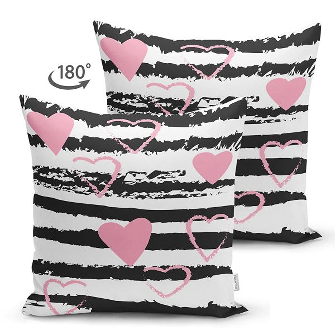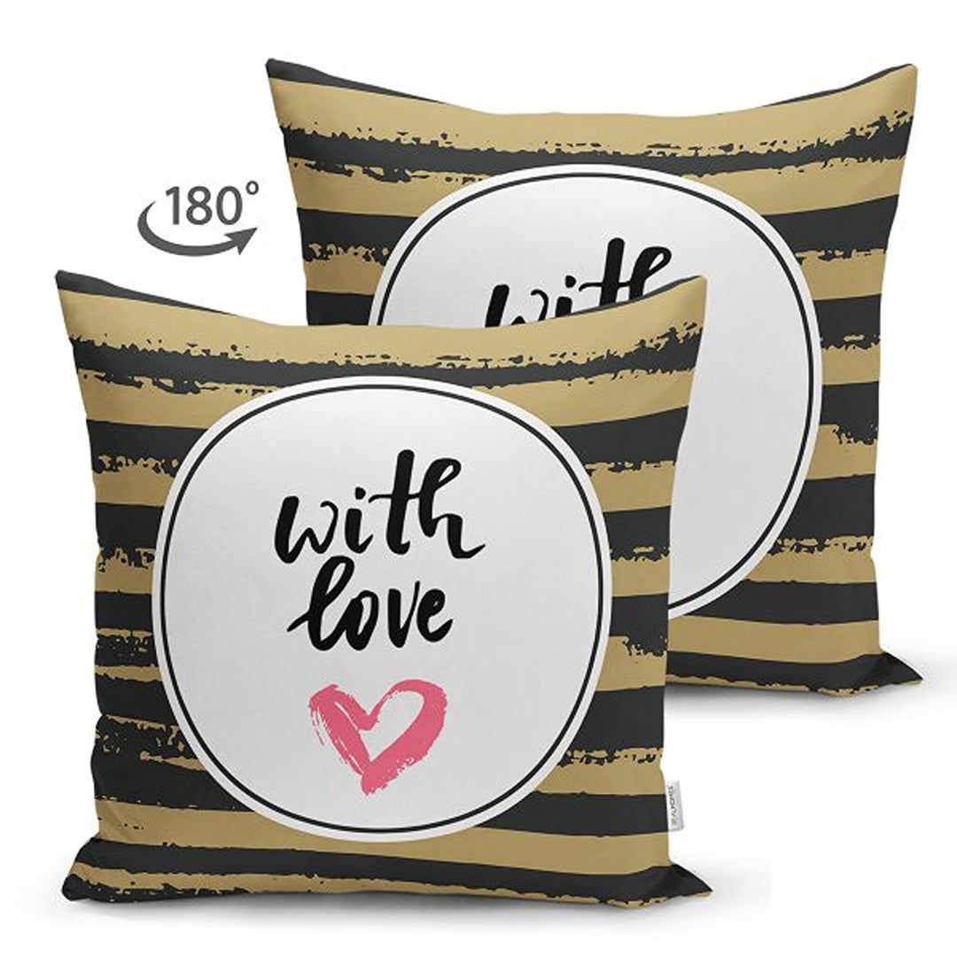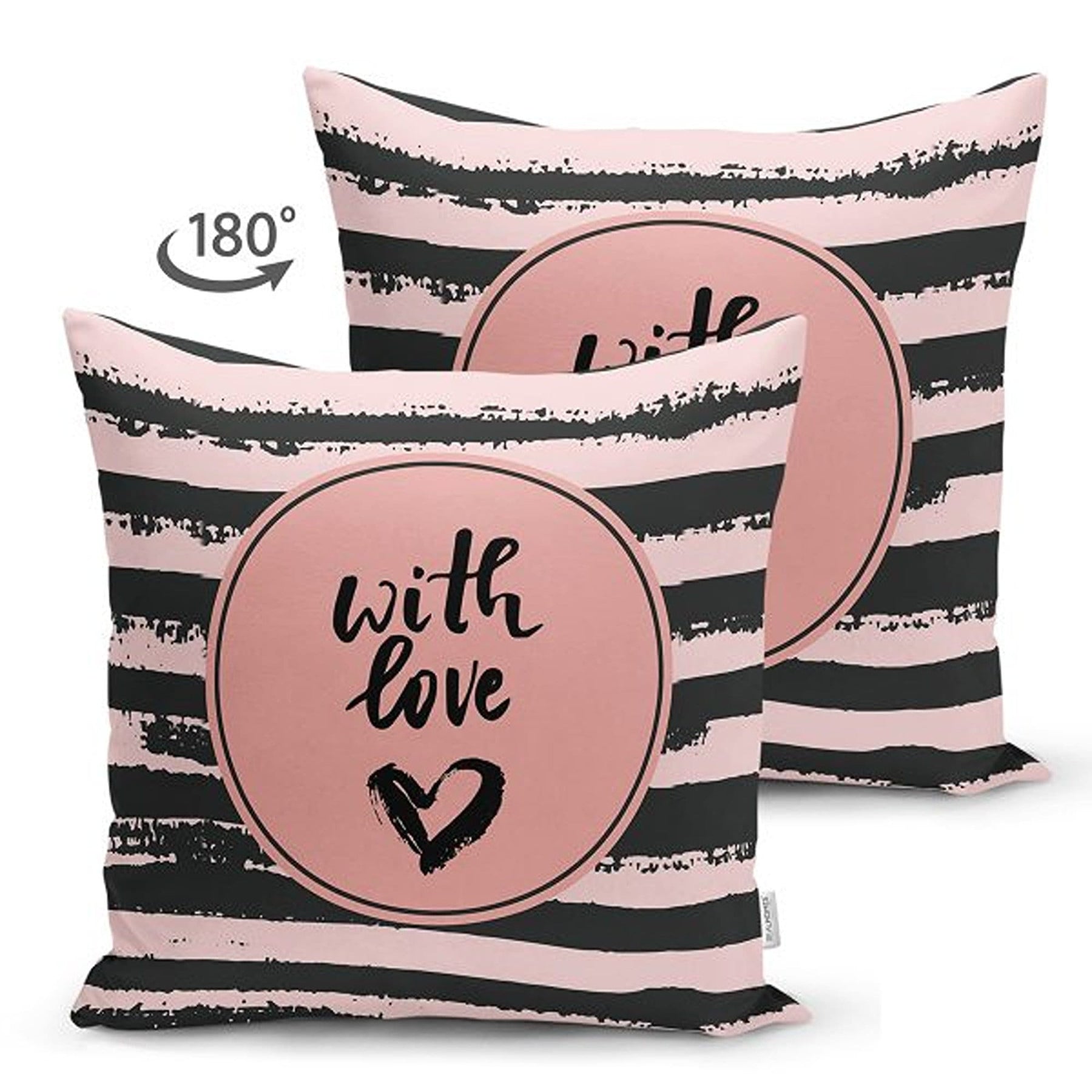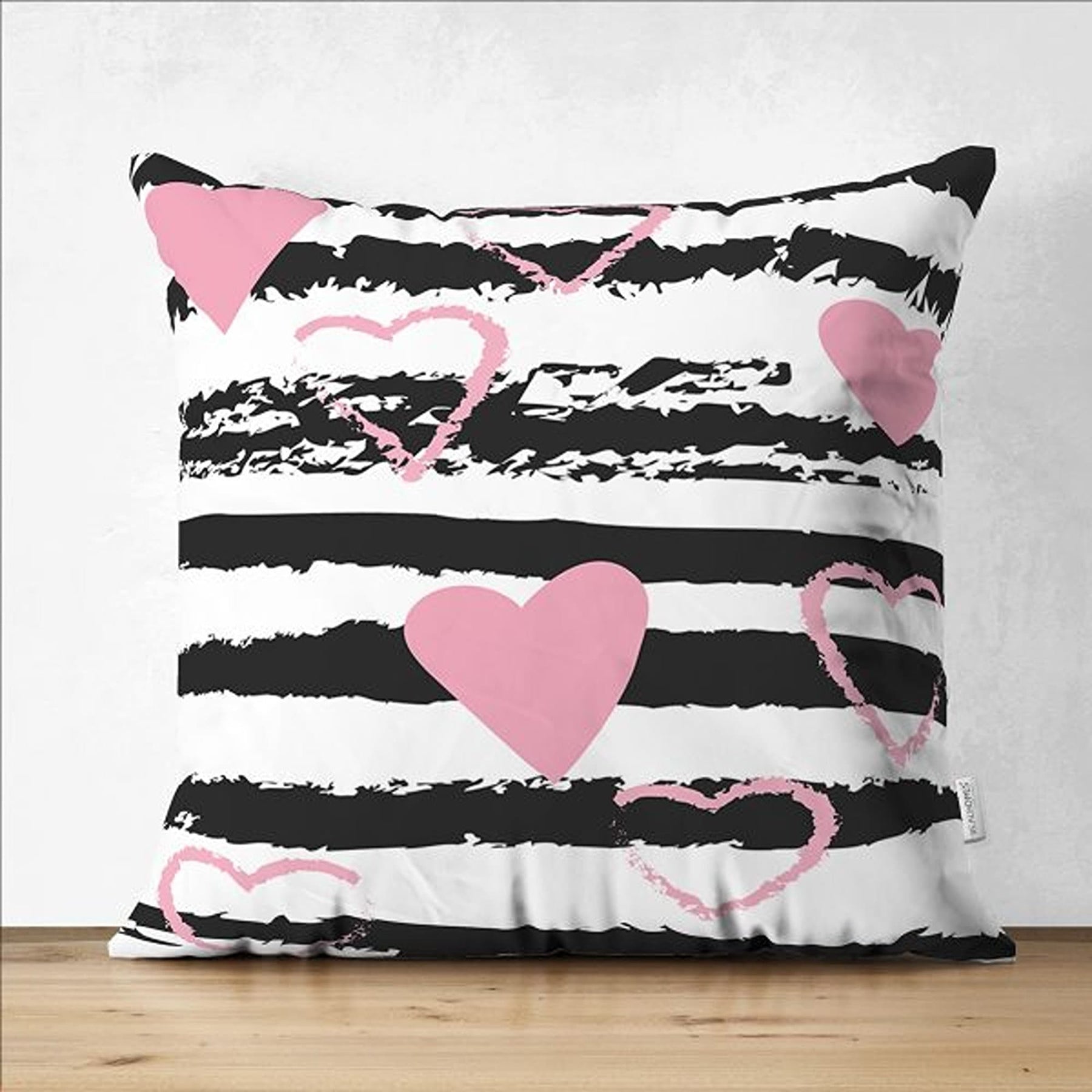 These elegant square decorative pillow covers with With Love, Love You and Heart prints with stripes;