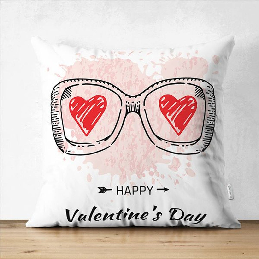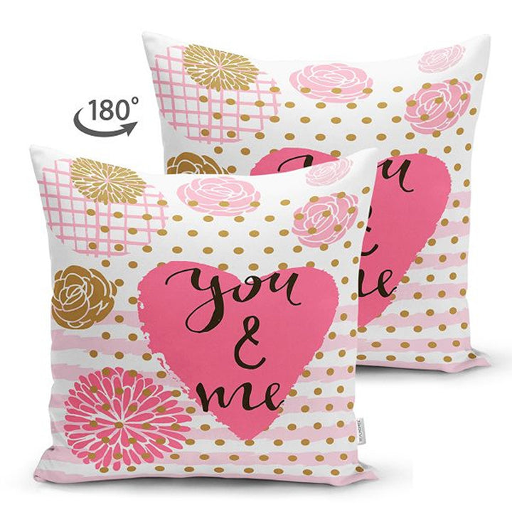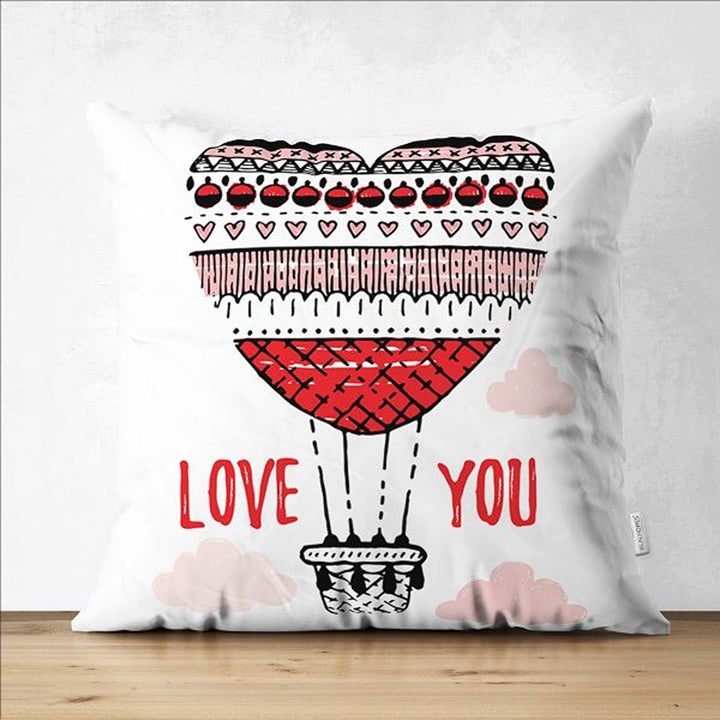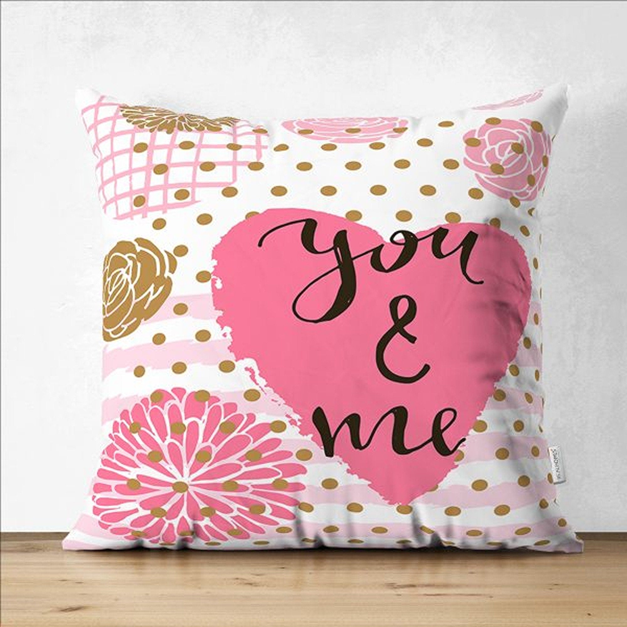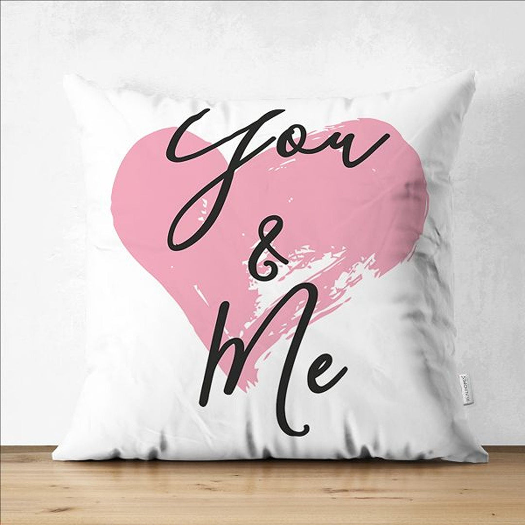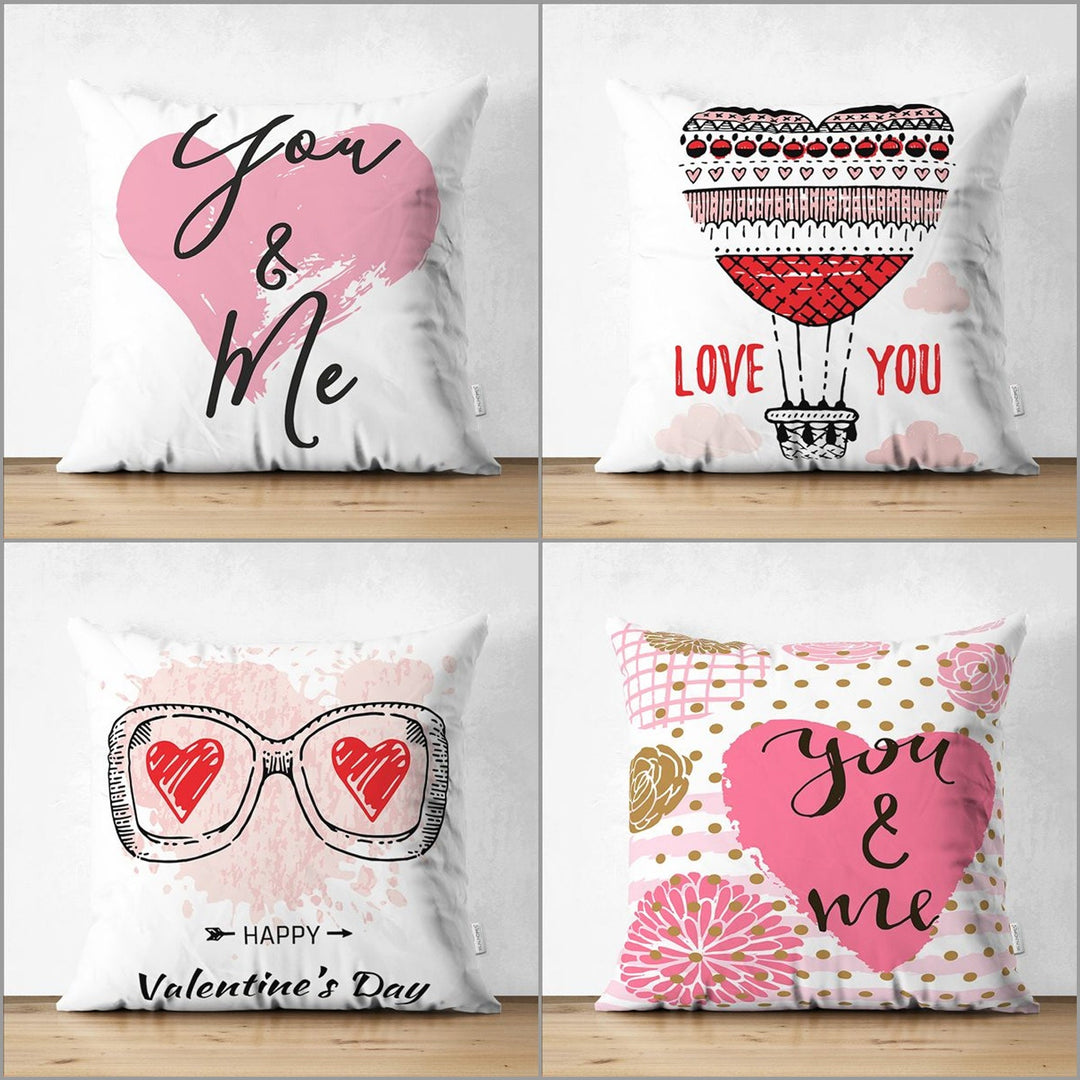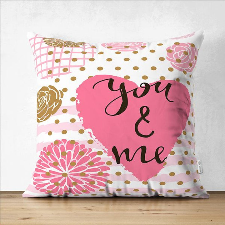 These elegant square decorative pillow covers with You and Me, Heart, Love You, Happy Valentine's Day, glass with heart prints;