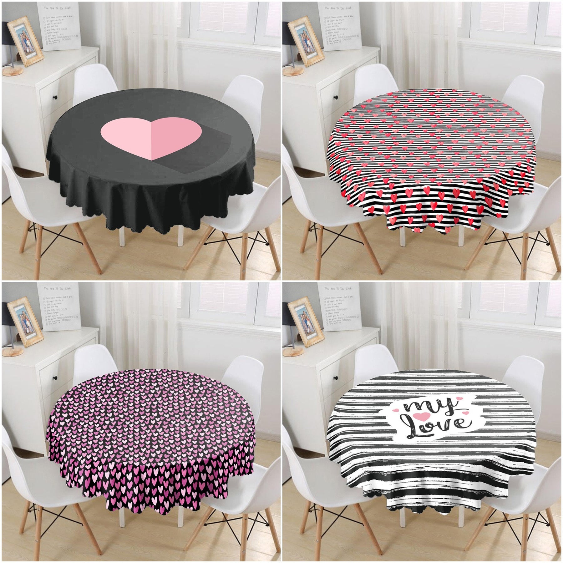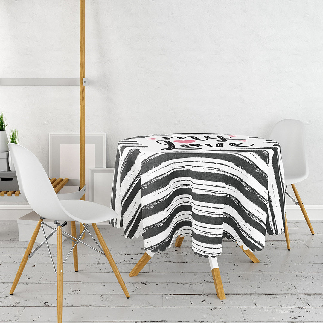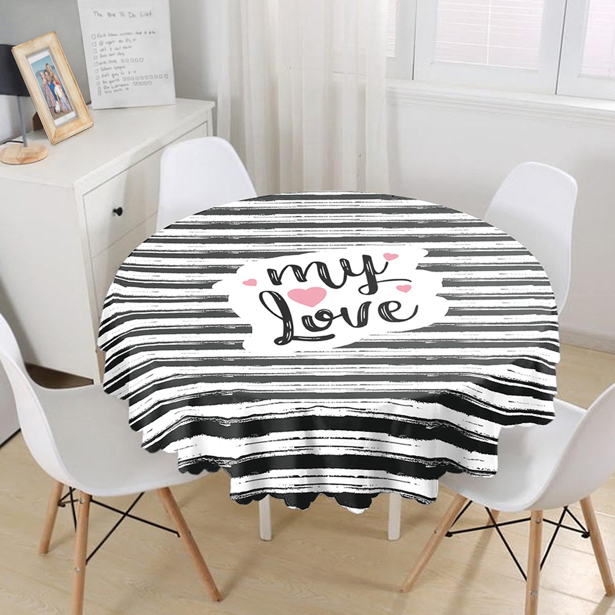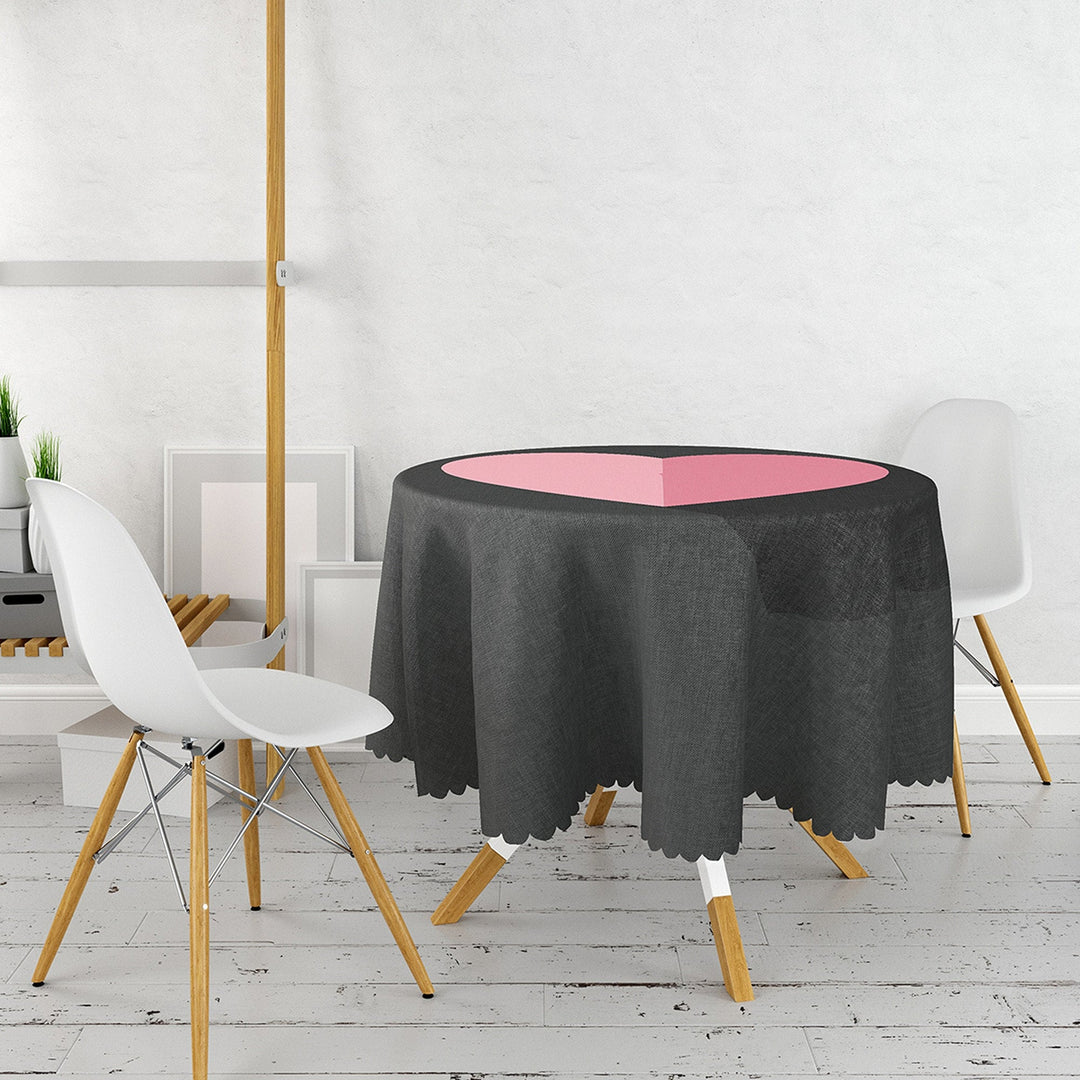 This high quality round tablecloth with heart and My Love print;