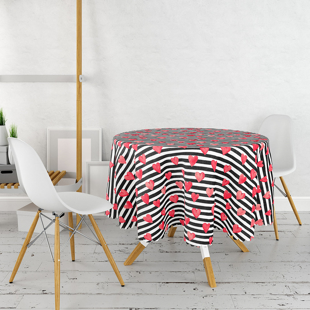 Heart Print Round Valentine Tablecloth