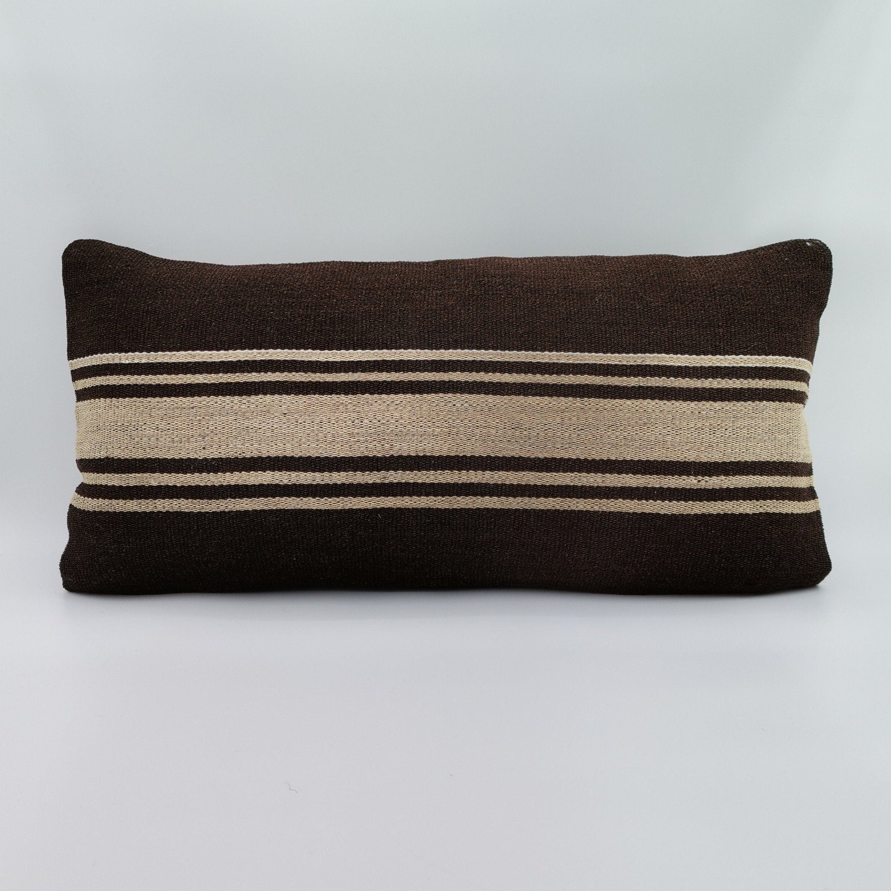 This handmade elegant rectangle Turkish kilim lumbar pillow cover;